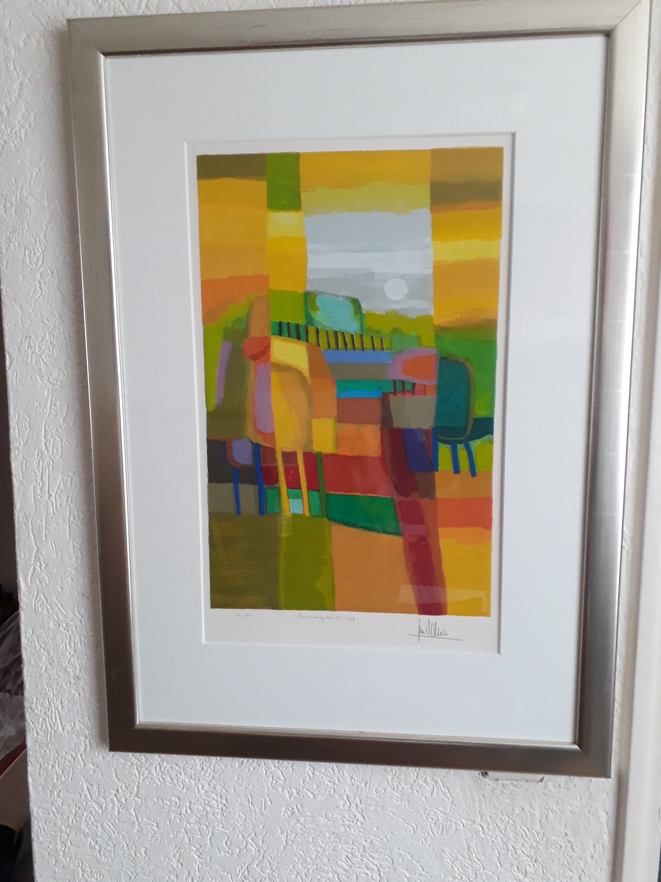 Zeer fraaie zeefdruk van ton schulten...zon overgoten 2. Fraai ingelijst in mooie zilver kleurige lijst