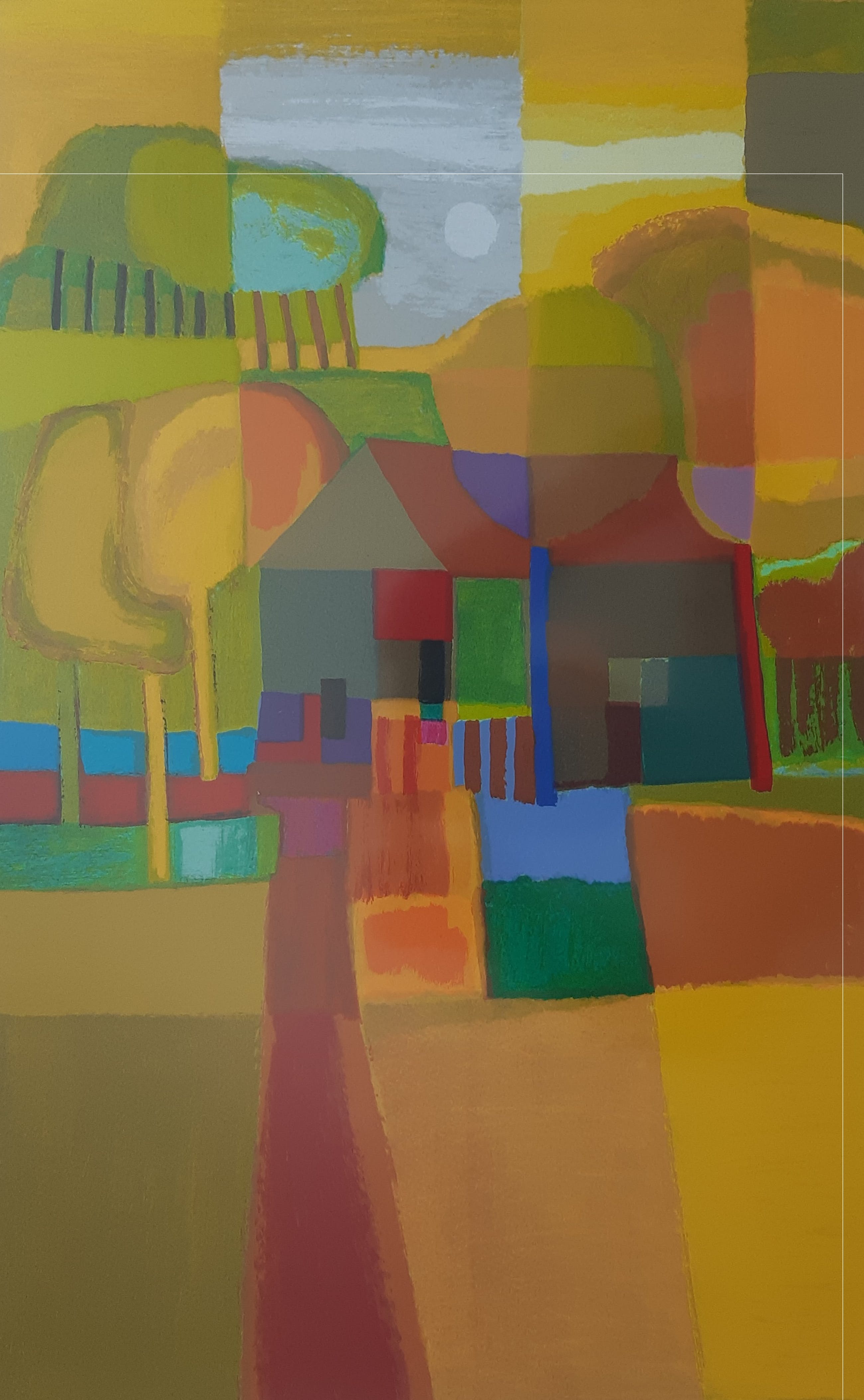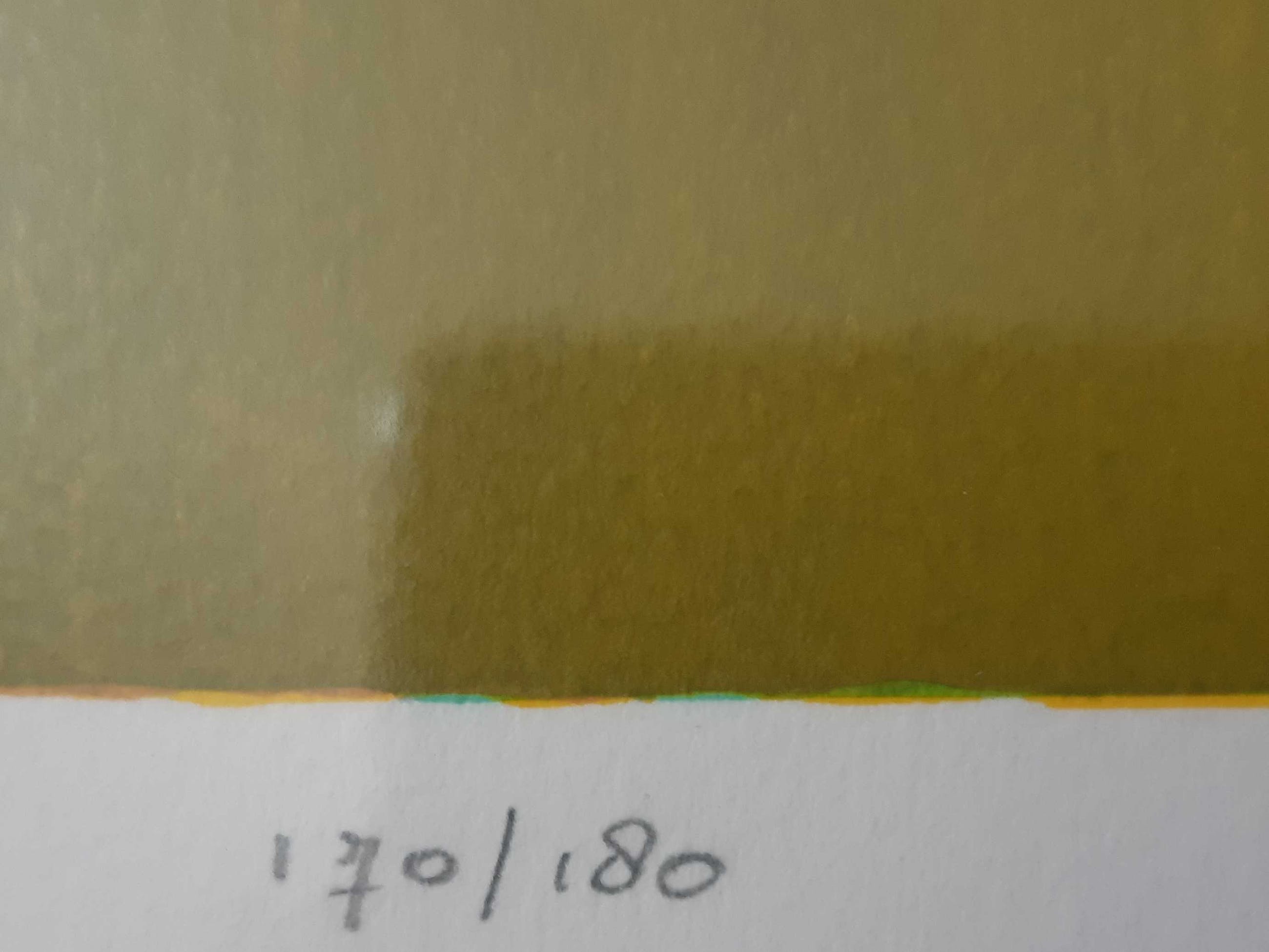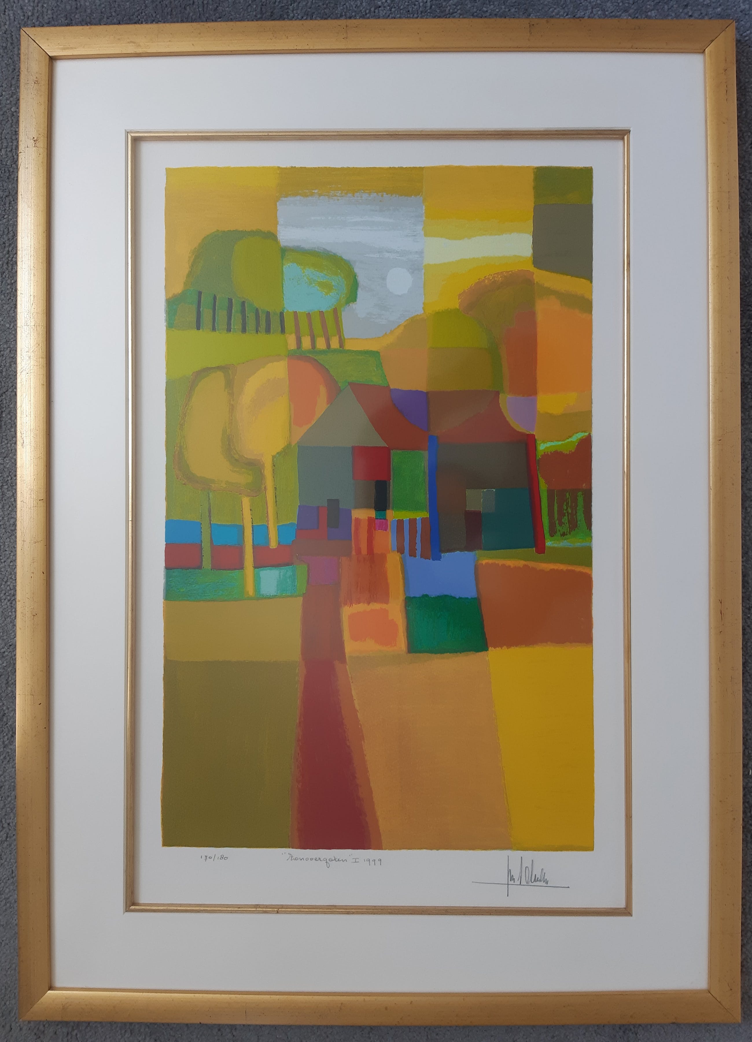 Fraaie zeefdruk van Ton Schulten, in bijpassende degelijke houten lijst. Het werk verkeert in een uitstekende conditie.