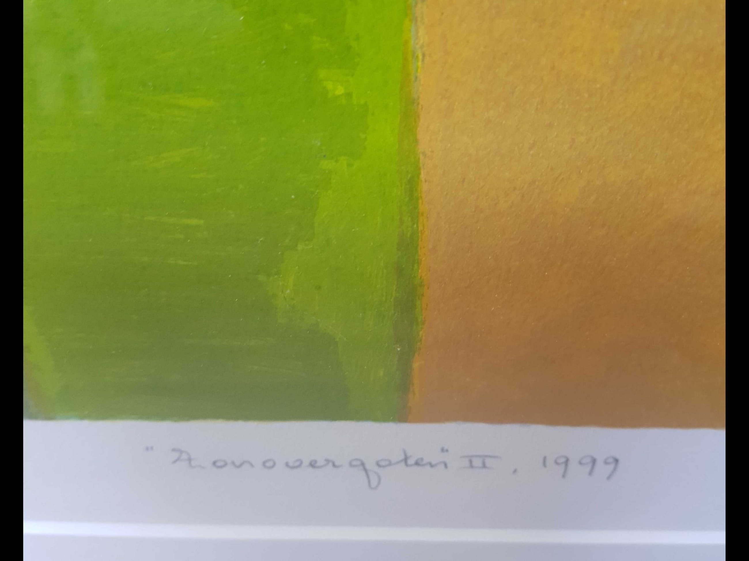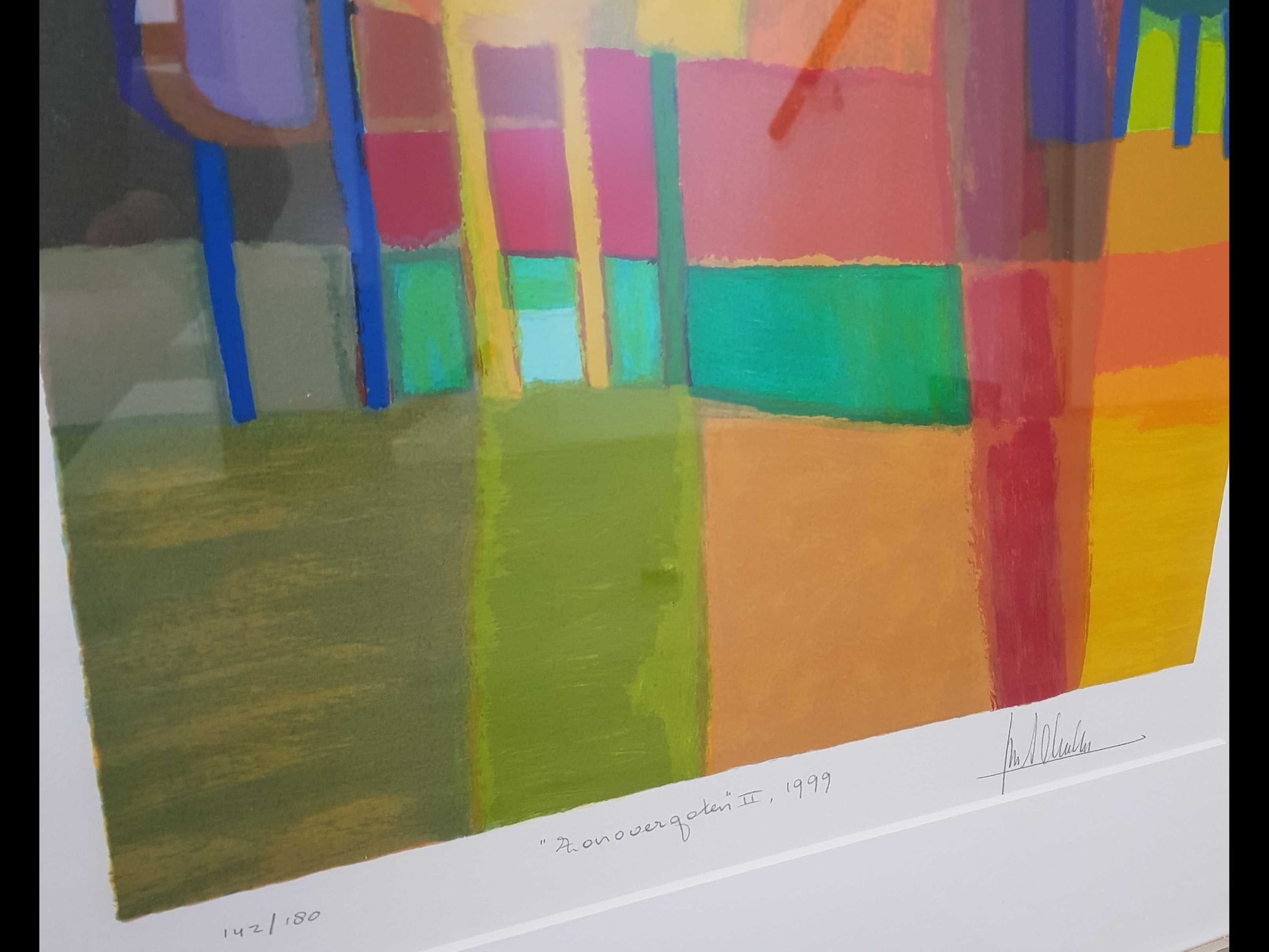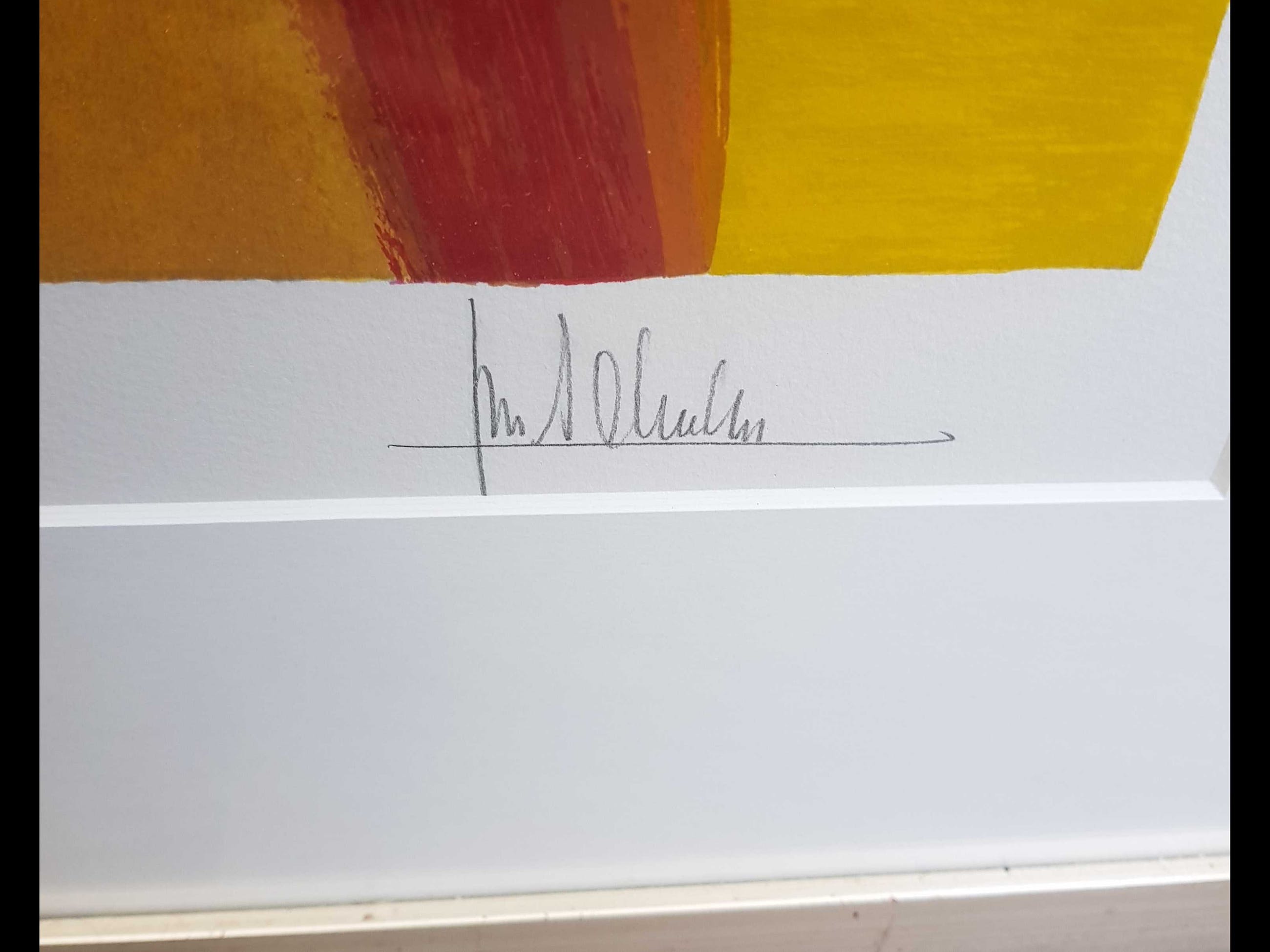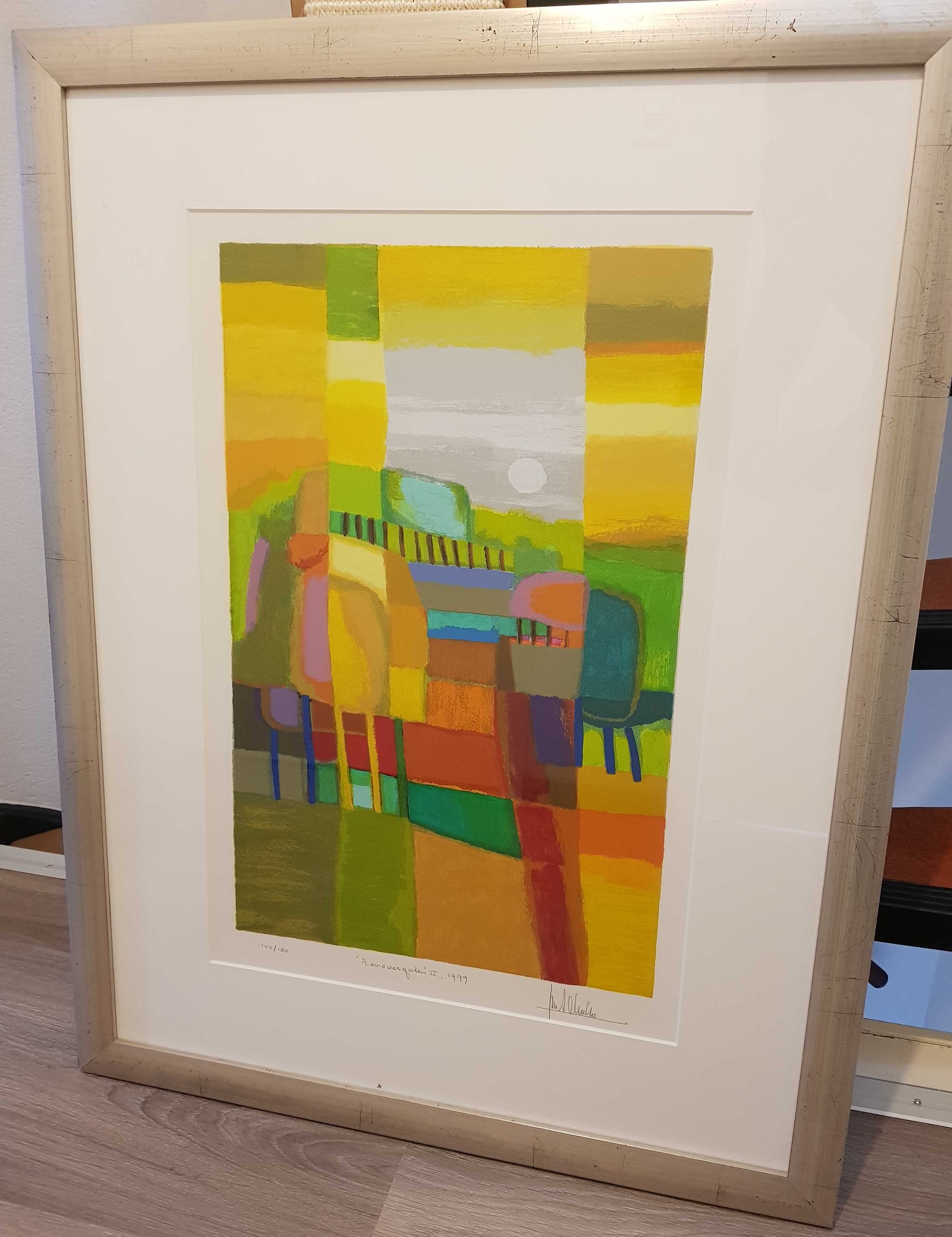 Handgesigneerde zeefdruk van Ton Schulten, in zilverkleurige houten lijst.