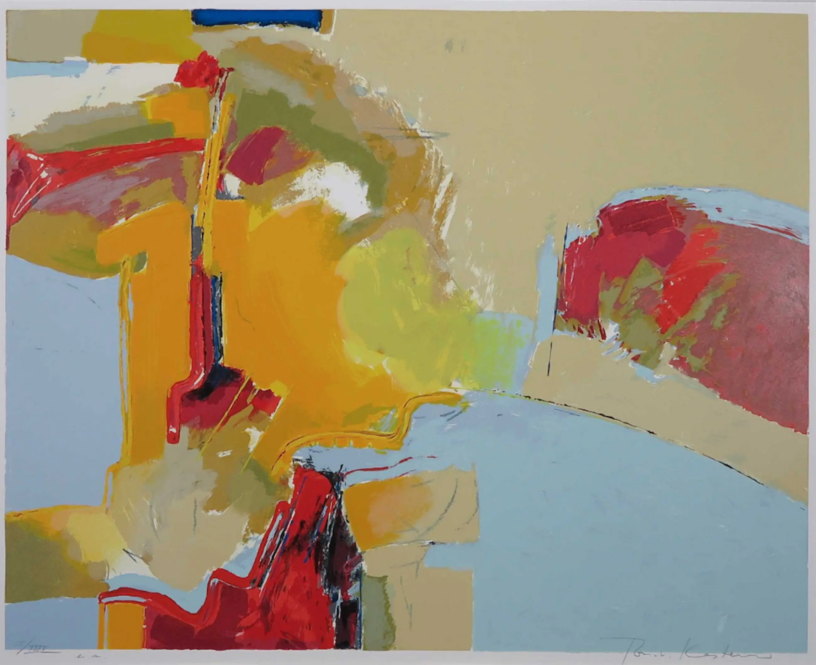 Deze mooie grote zeefdruk z.t. van de bekende kunstenaar Ton van Kesteren is handgesigneerd en genummerd: 2 van 35.