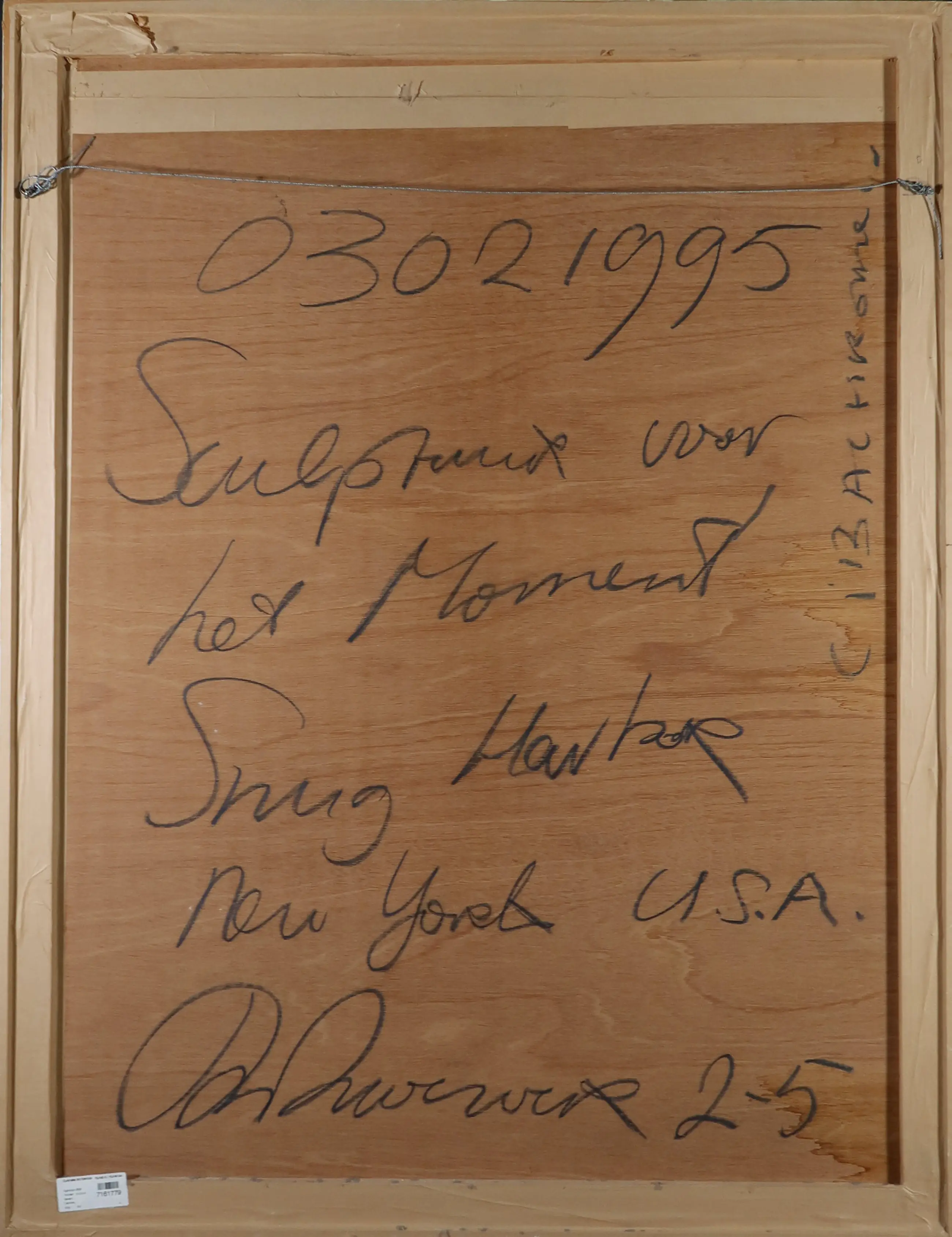 Handgesigneerde foto op aluminium plaat met titel "Sculptuur voor het Moment, Snug Harbour, New York U.S.A.". Zeer beperkte oplage.