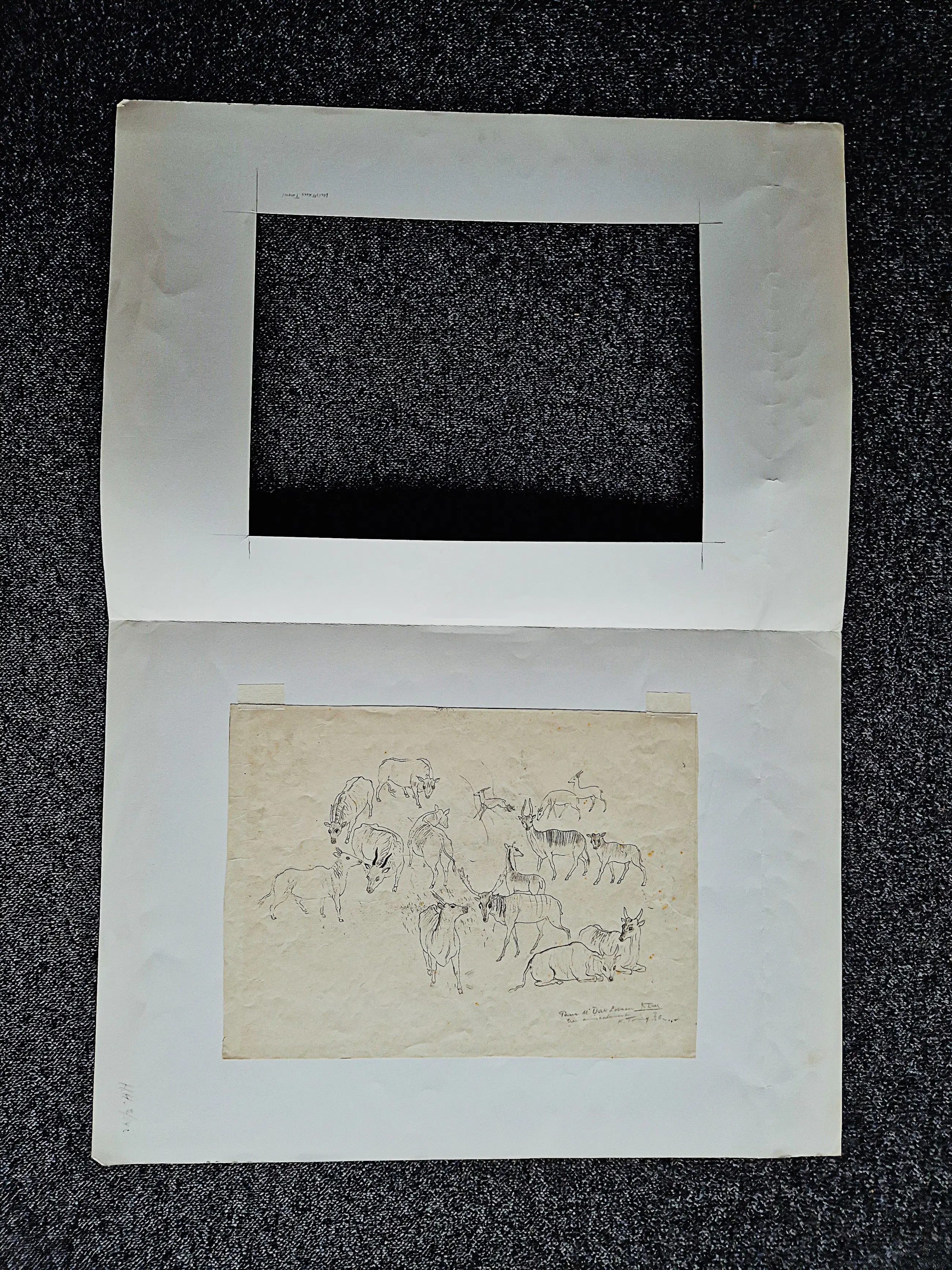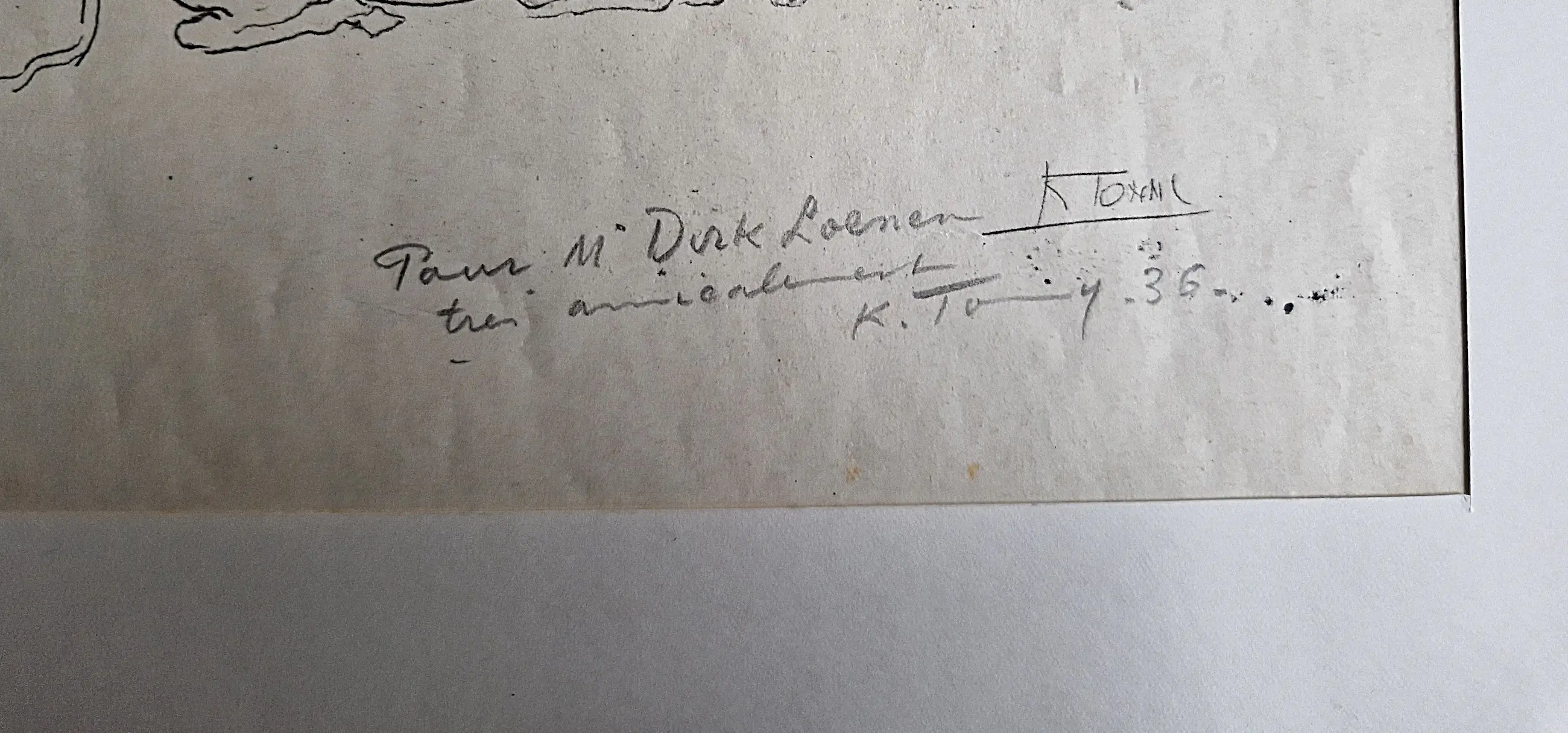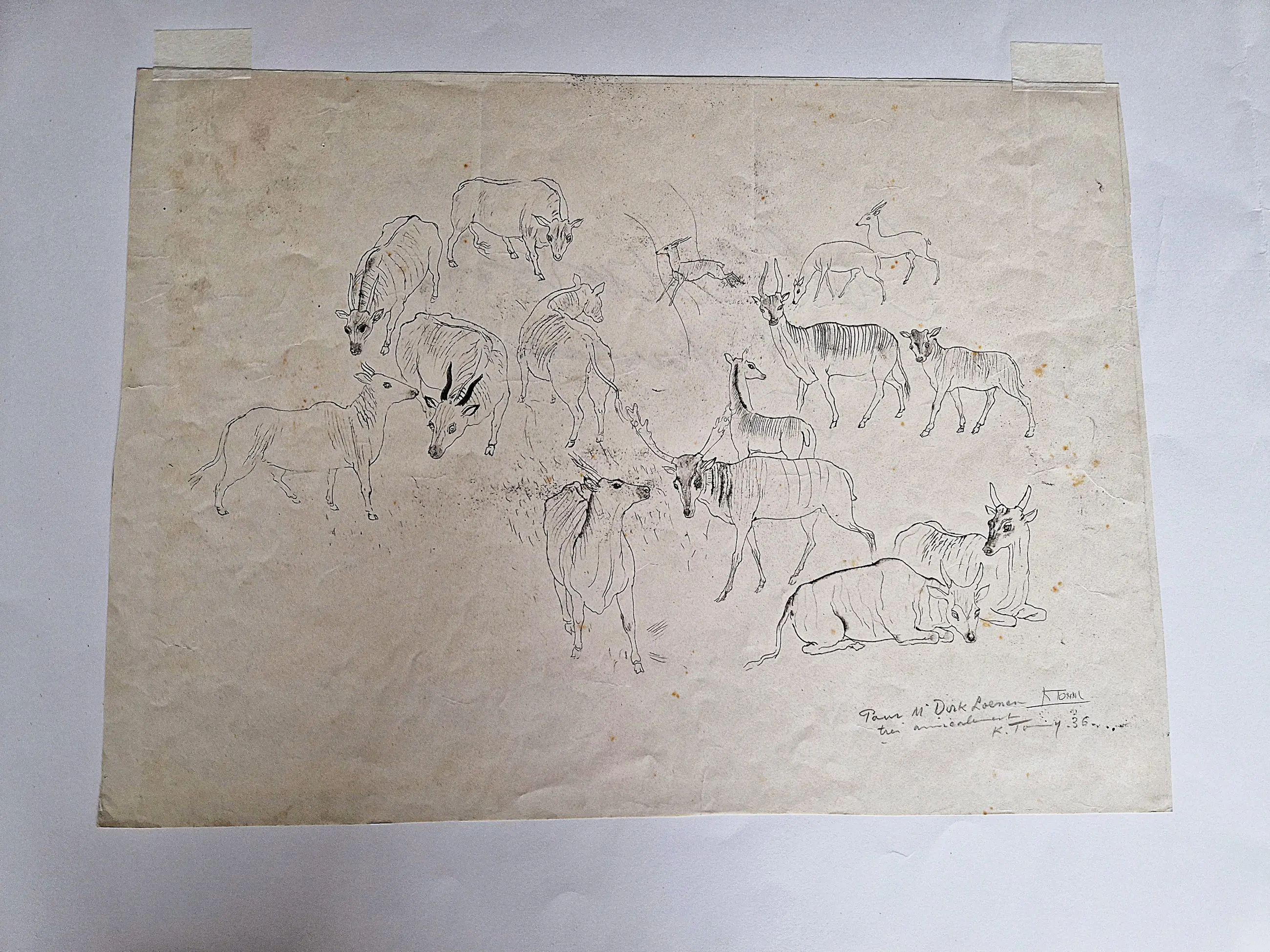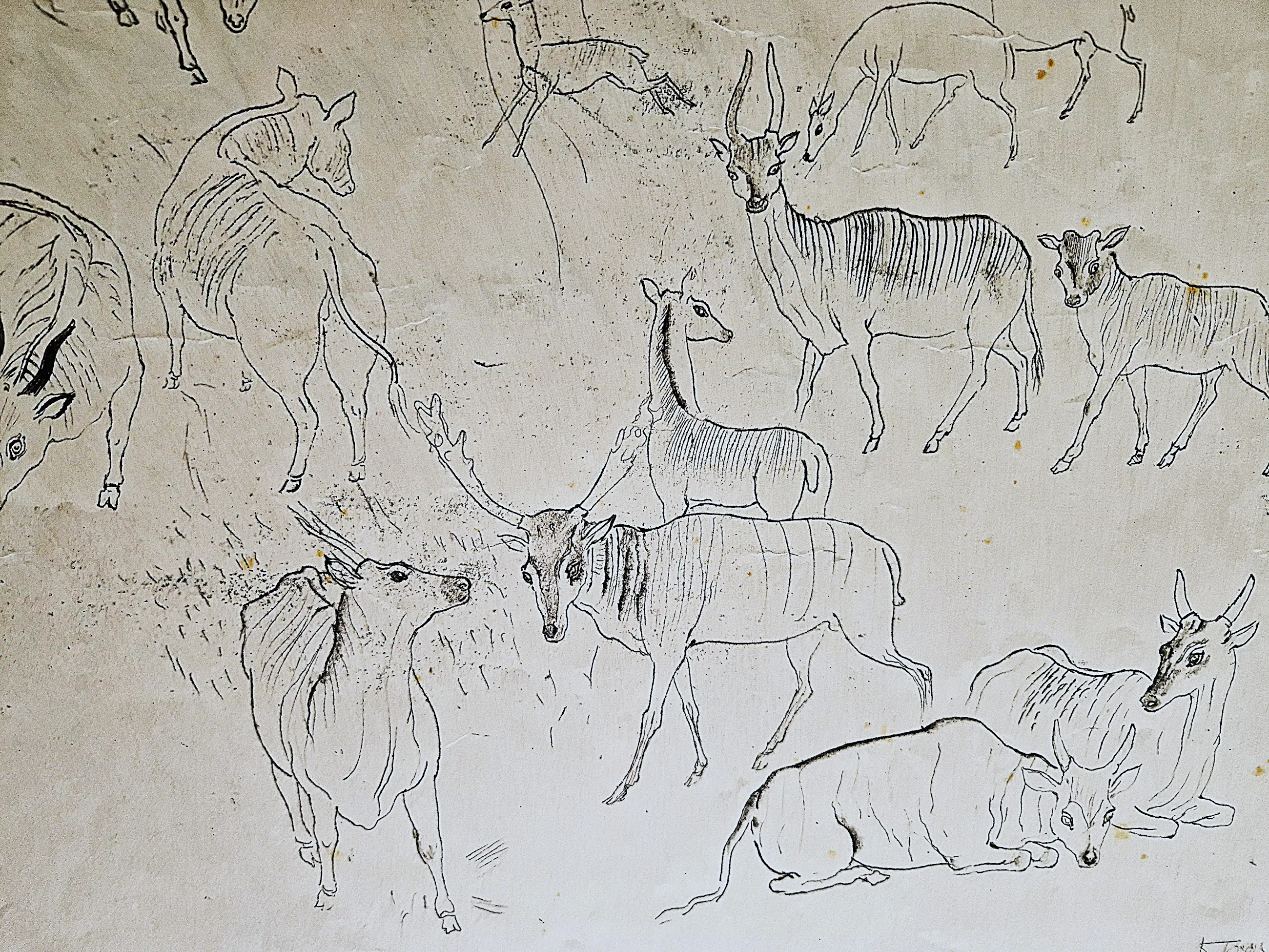 - Een erg zeldzame (want zeer vroege realistische / Parijse periode) Oostindische inkt op papier tekening "hert-achtigen". Het werk van Kristians Tonny stond in die periode onder invloed van james Ensor en jules Pascin. Groot formaat bladmaat 50x70cm. Rechtsonder gesigneerd met potlood. De tekening verkeert in goede, scherpe conditie, met wel wat vouwen, met name aan de zijden van het papier.