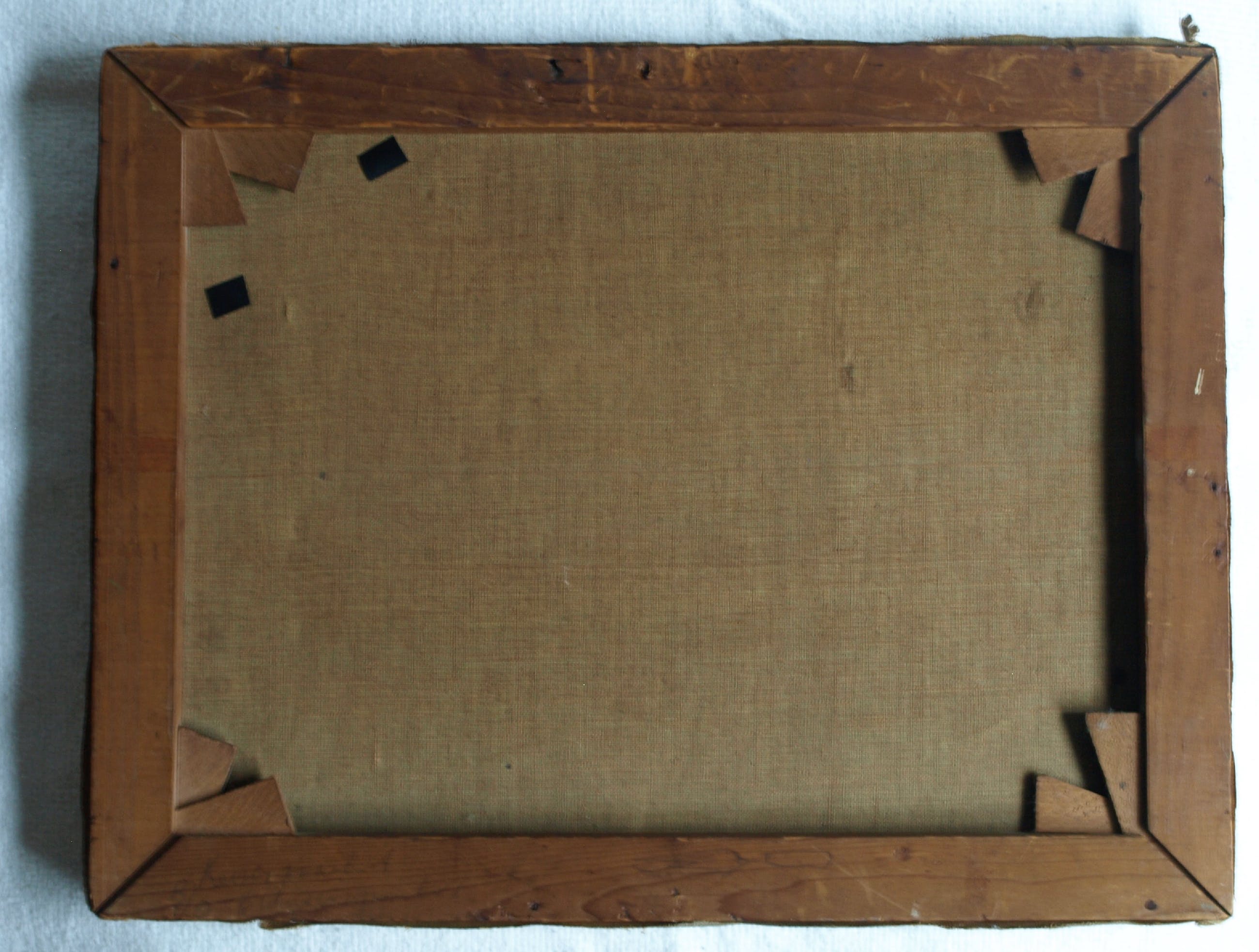 Het werk is in redelijk goede staat met 2 restauratie-plakkertjes op de achterkant van het doek.