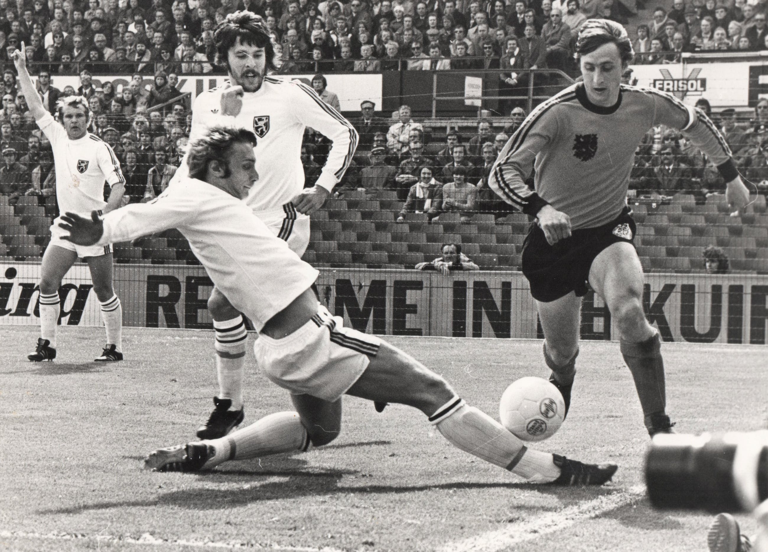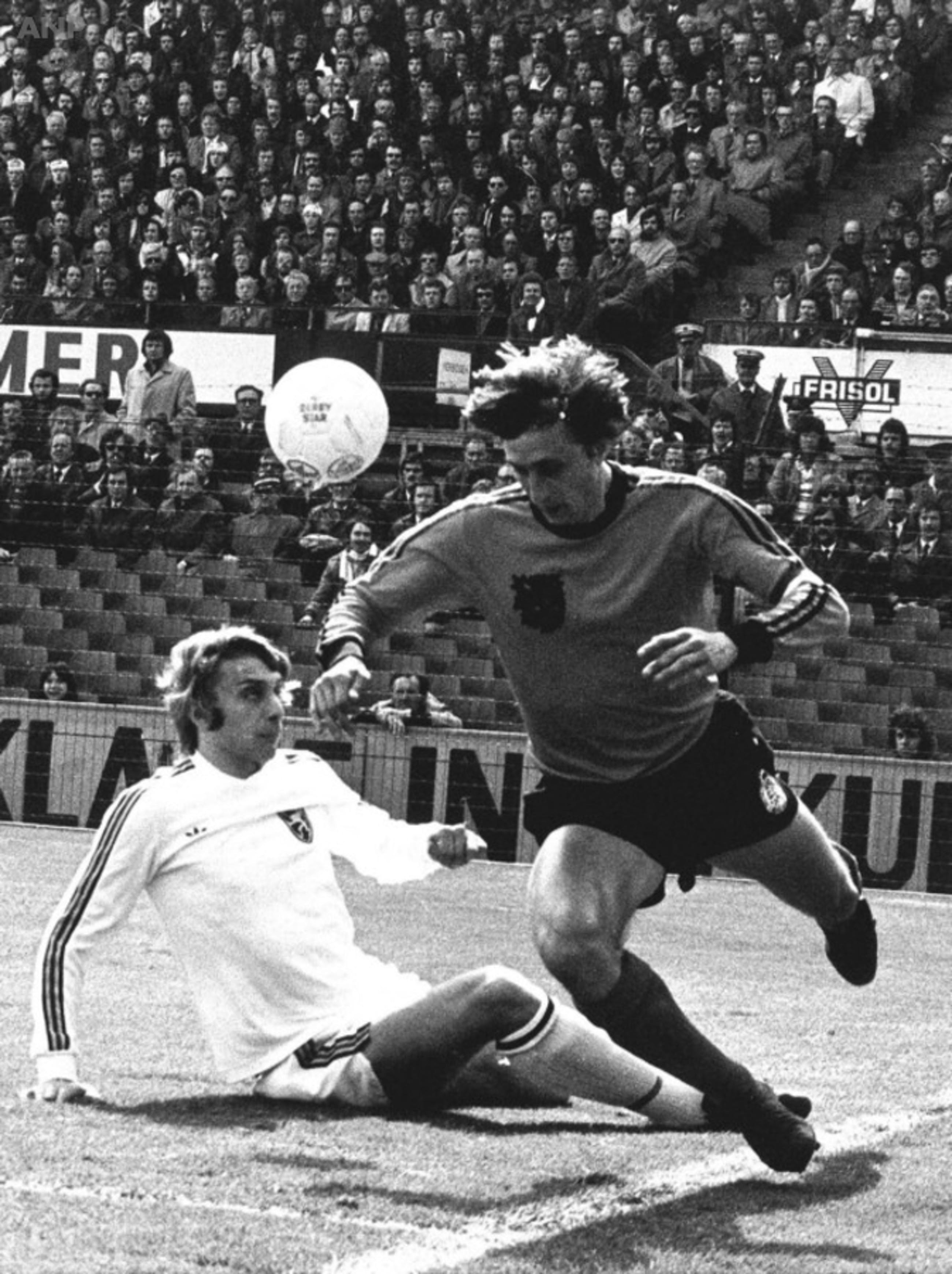Bij het ANP hebben ze een foto die het vervolg op de ingezette sliding laat zien (zie laatste foto). Niet helemaal duidelijk of Cruijff er voorbij kwam (clean sliding) of ten val kwam (overtreding). Ik heb de bewegende beelden nog niet gevonden.