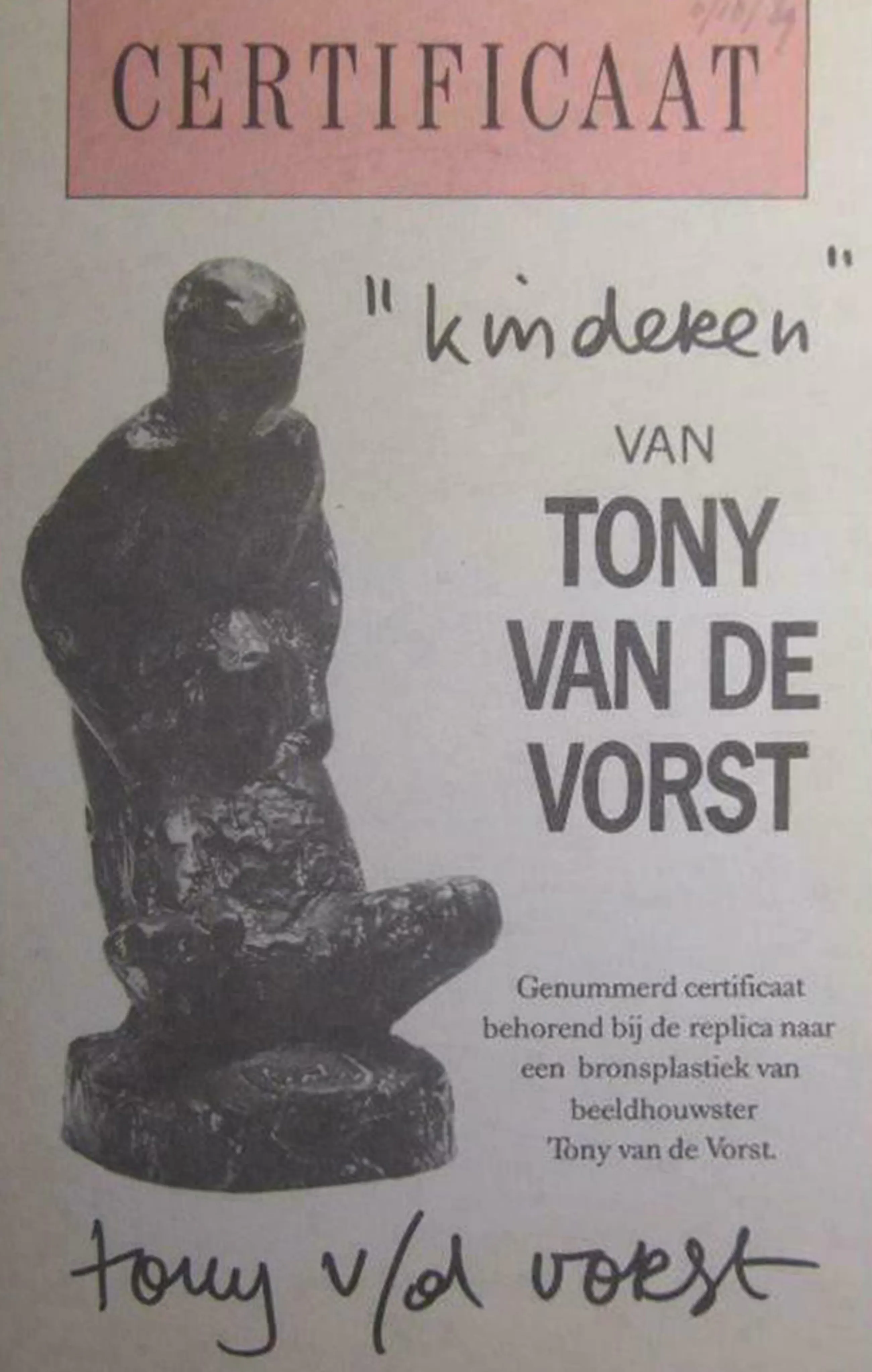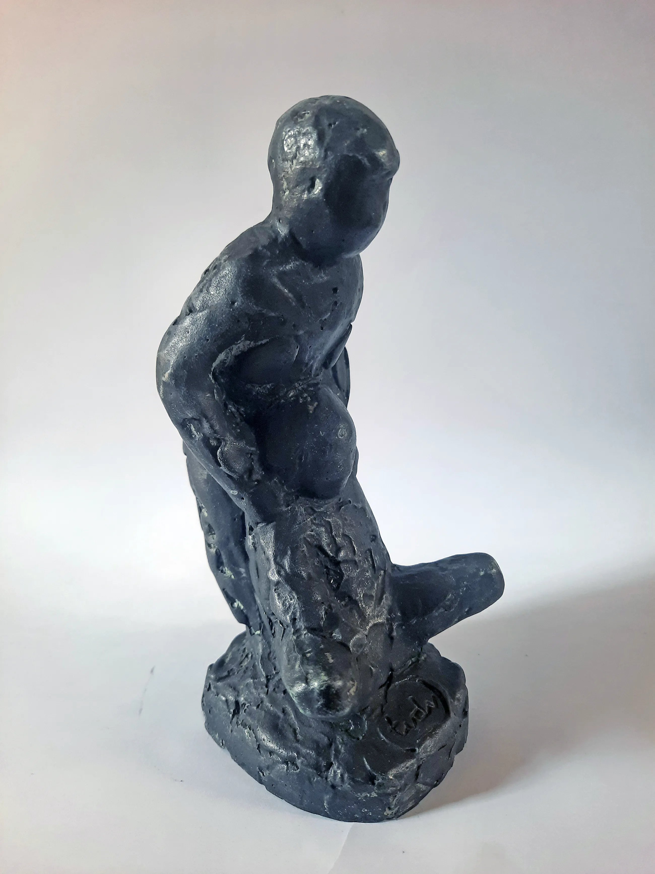 Dit composieten beeldje, gepatineerd met grijze kleuraccenten, is in 1989 in opdracht gemaakt aan de hand van haar schetsen, in een oplage van 1000. Het jaartal ’89 is met als haar monogram gegraveerd in het beeldje. Het certificaat is níet aanwezig.