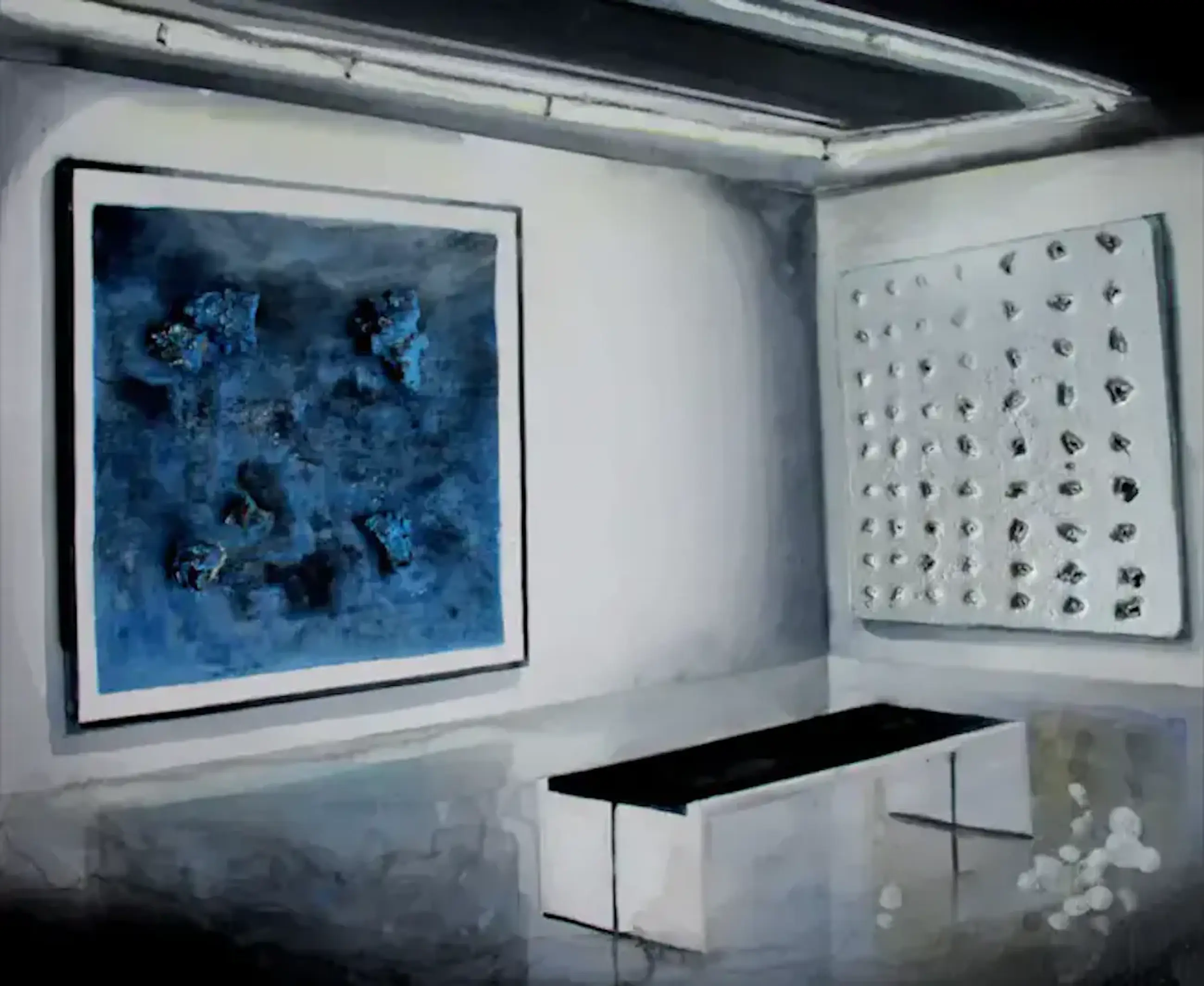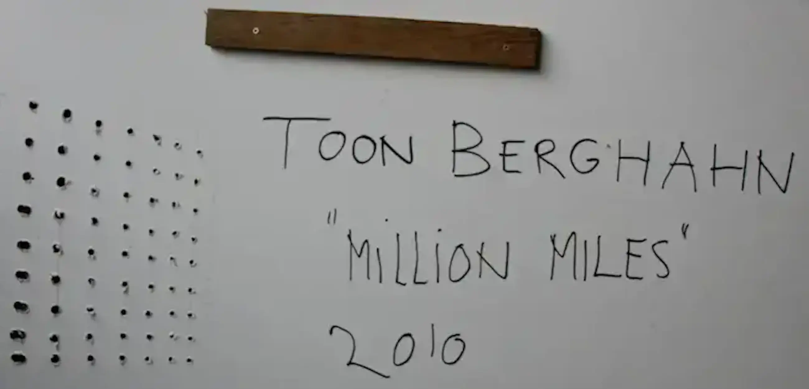Gemengde techniek van Toon Berghahn. Aquarel en gouache op gedeeltelijk geperforeerd karton, opgeplakte stukken kurk(?). Jaar: 2010. Titel: Million miles(Miljoen mijl). Afmetingen lijst: H67.5 x b80cm. Het werk is op de achterzijde gesigneerd (= titel) door de kunstenaar. De authenticiteit van het aangeboden werk wordt volledig gegarandeerd. Een certificaat van echtheid wordt, op aanvraag, gemaild.
