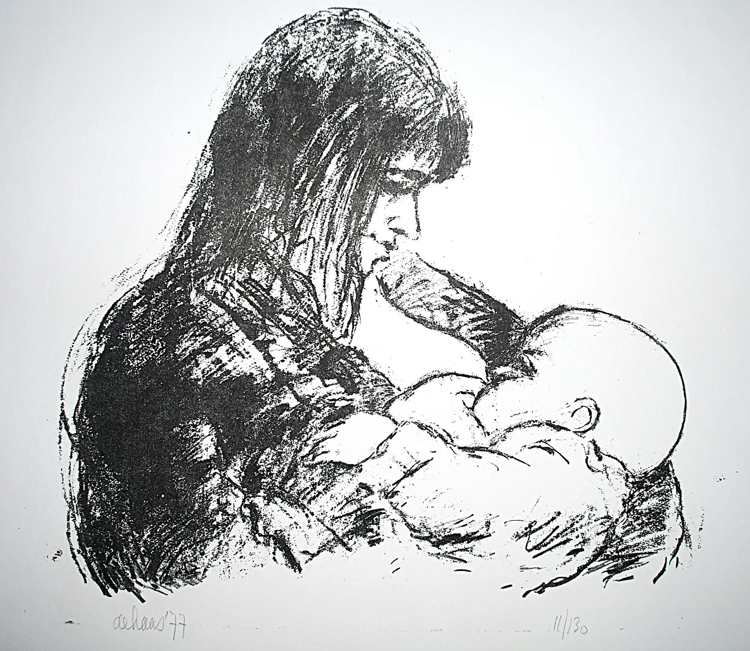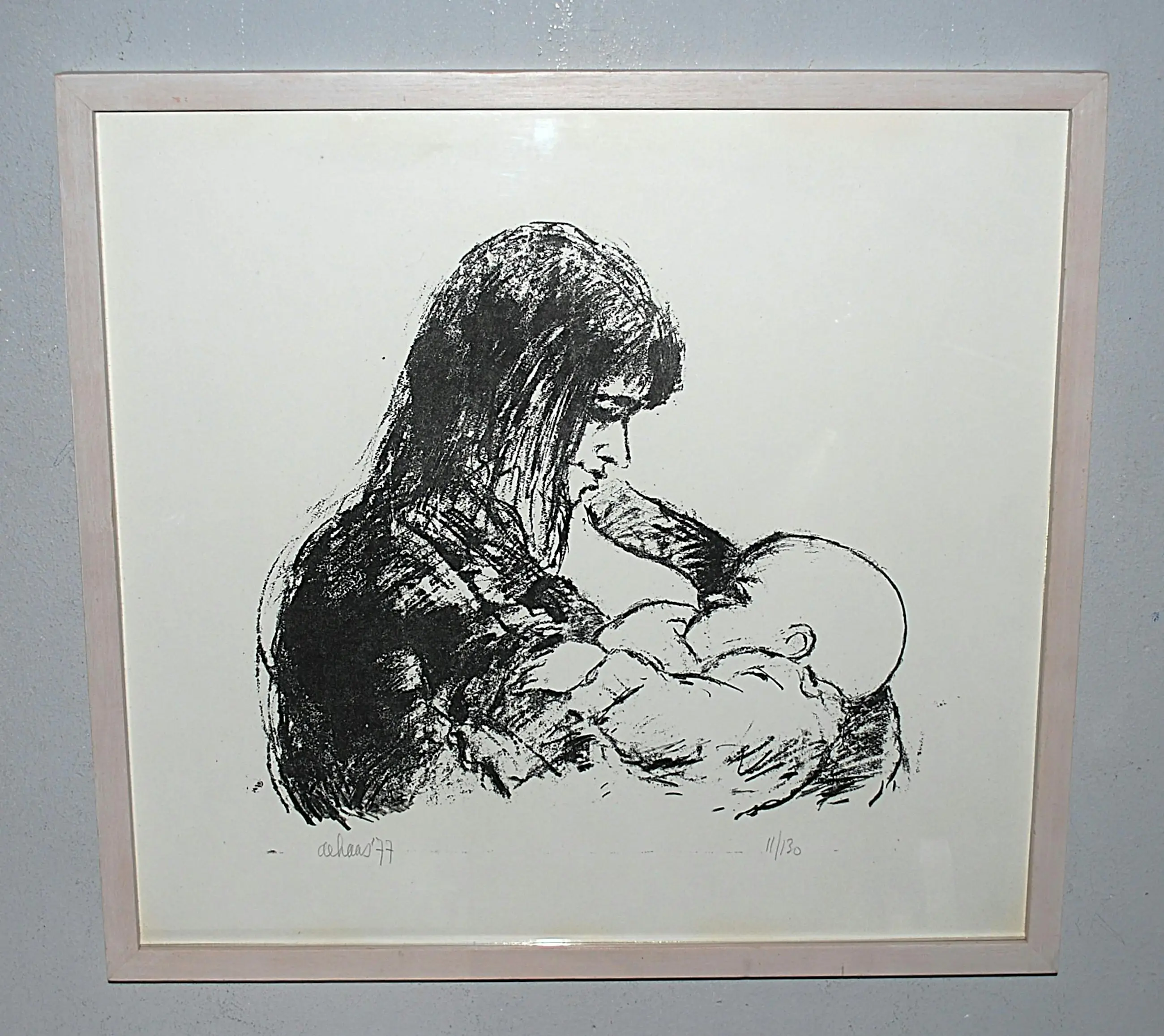 Toon de Haas - moeder met baby - litho - mooi ingelijst - inclusief boek