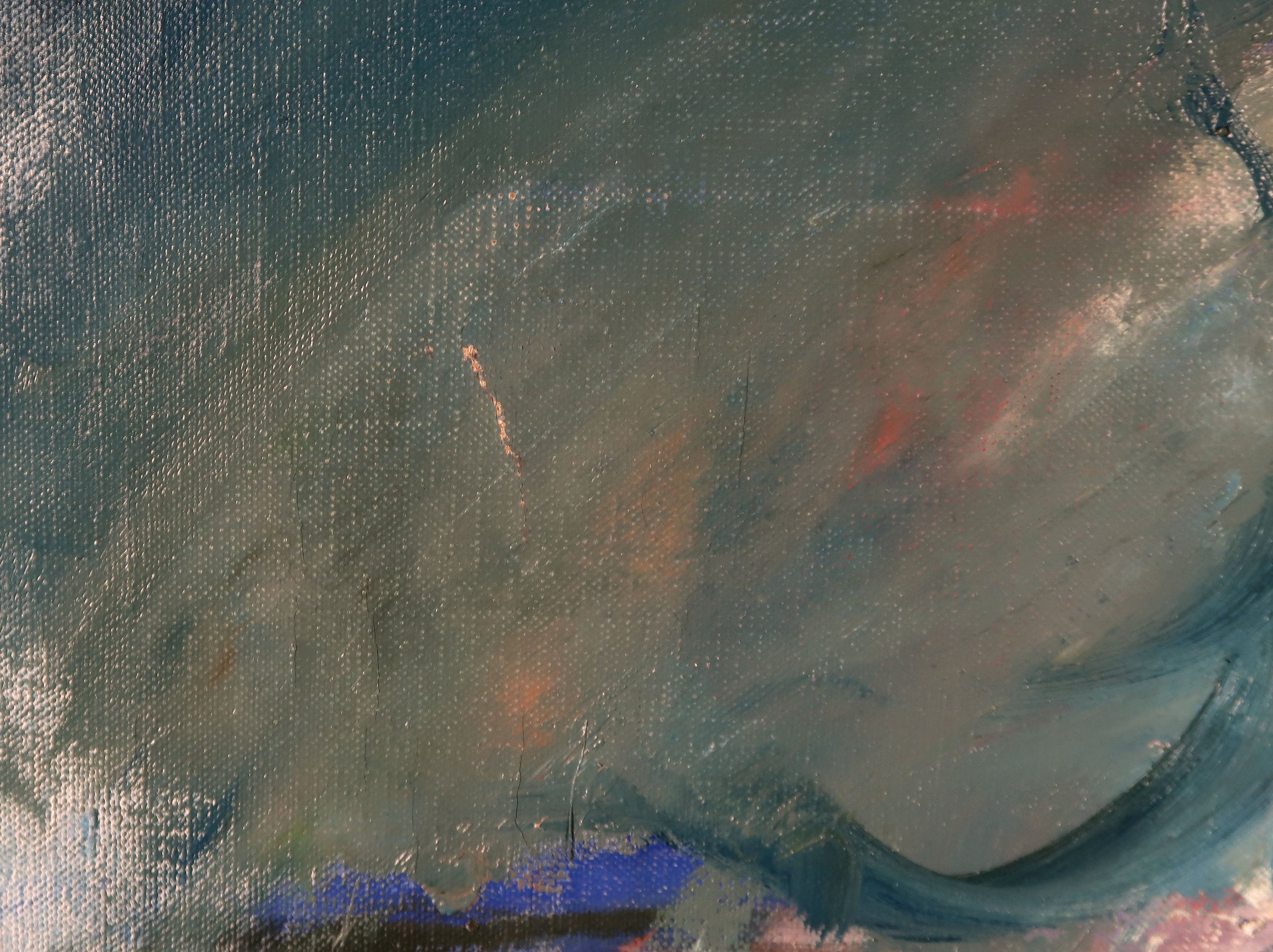 | De verflaag heeft wat lichte craquelé zonder verfverlies. In de hoek linksboven zit een lichte beschadiging in het canvas (zie foto). | |