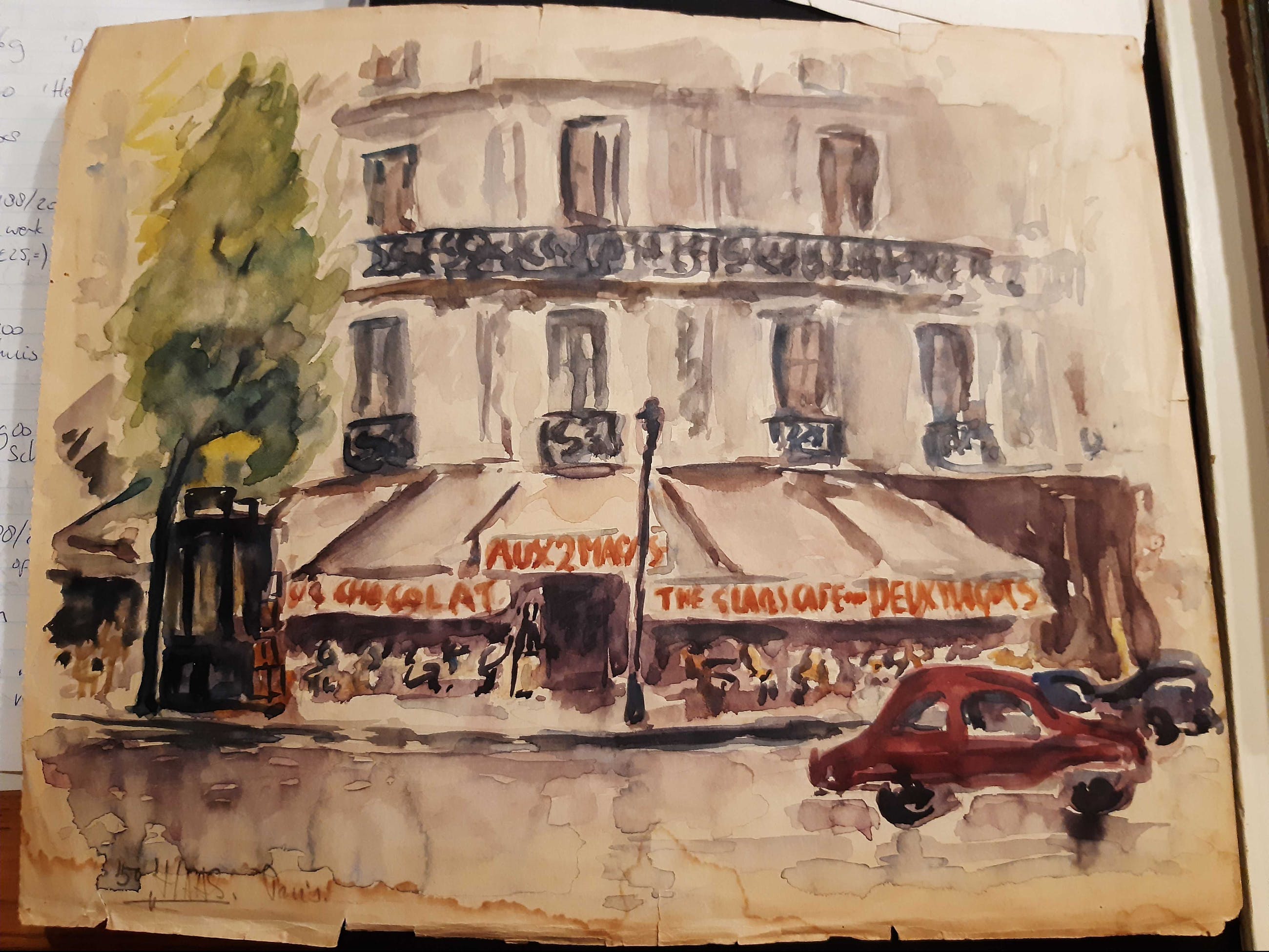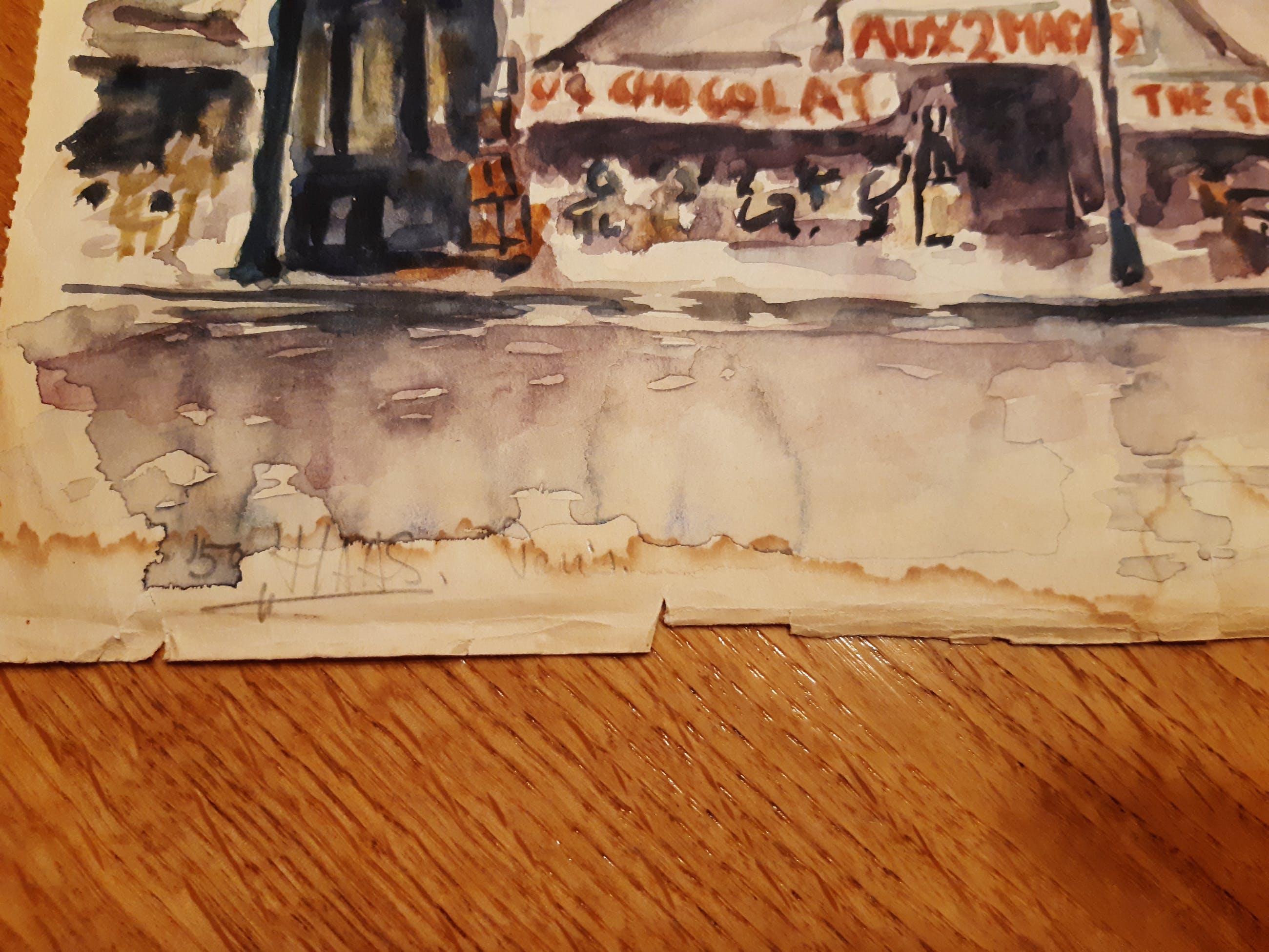 Toon de Haas is geboren in 1929 op het eiland Texel. Hij woonde en werkte sinds 1955 in Amstelveen. Een waterverftekening van een jonge Toon de Haas. Herkenbaar Parijs.