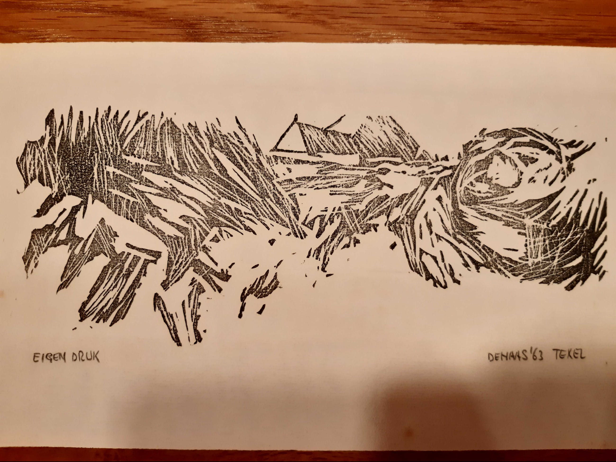 een zwart-wit ets van eigen druk Toon de Haas 1963 Met potlood gesigneerd en getiteld.