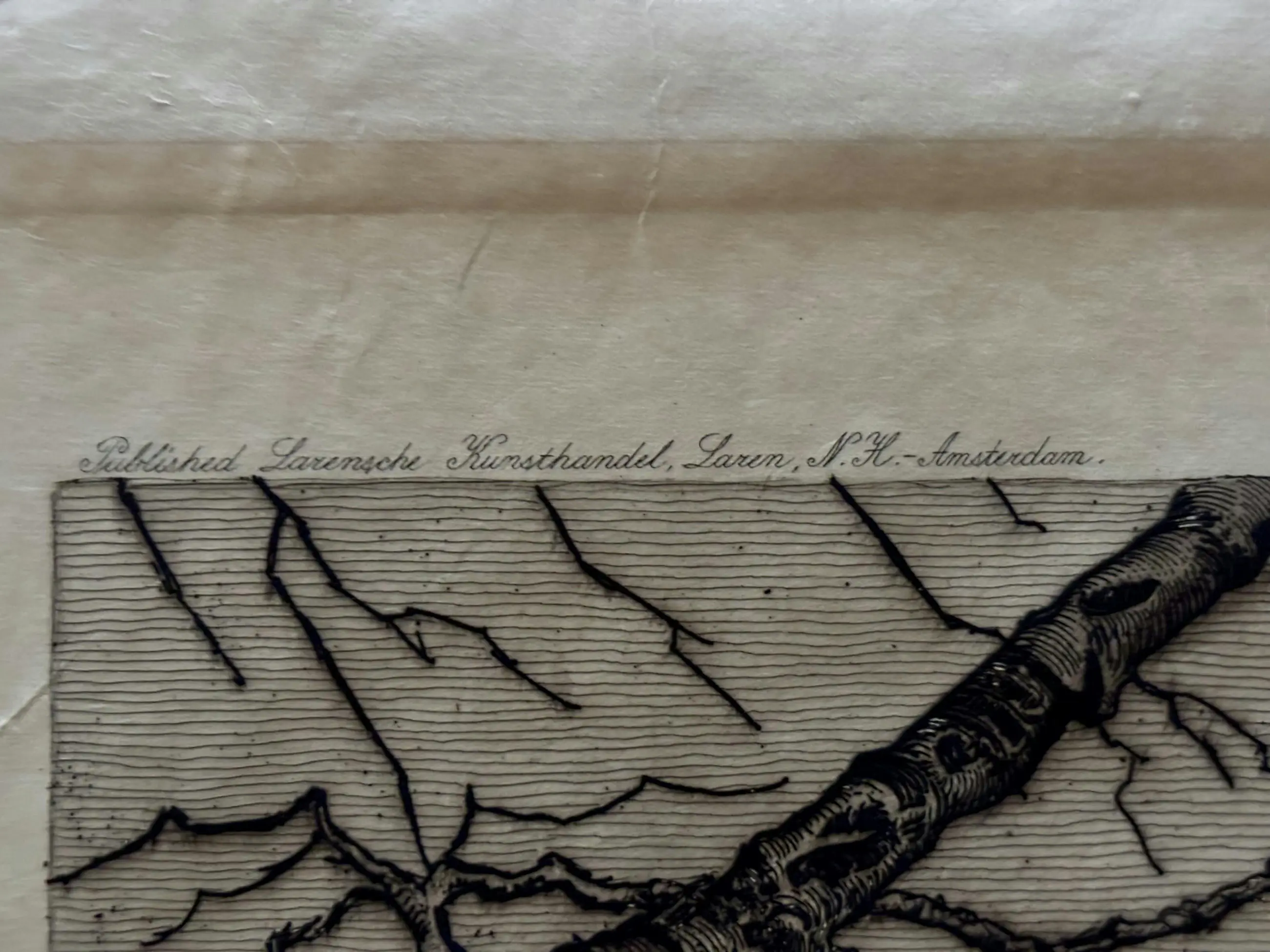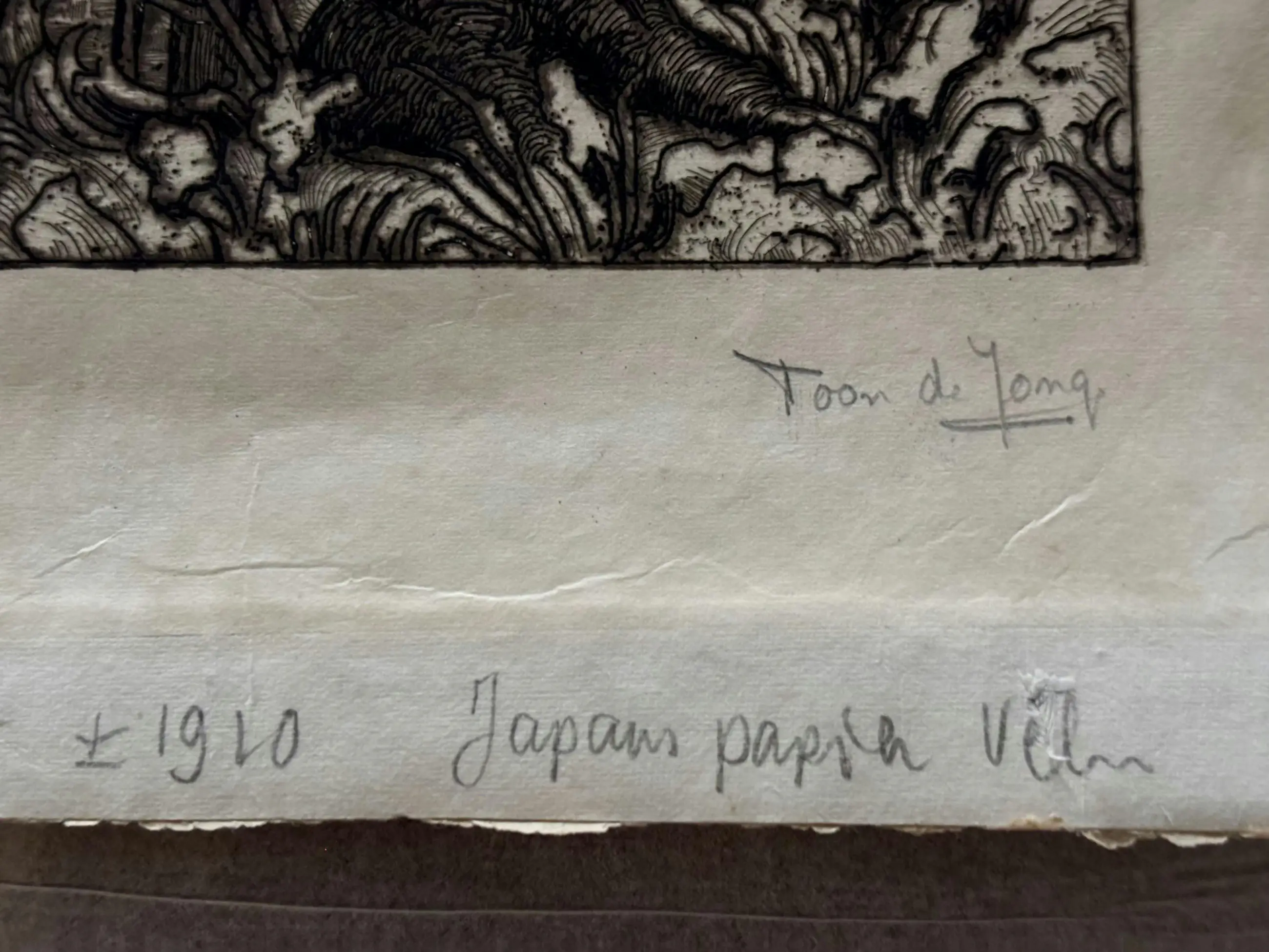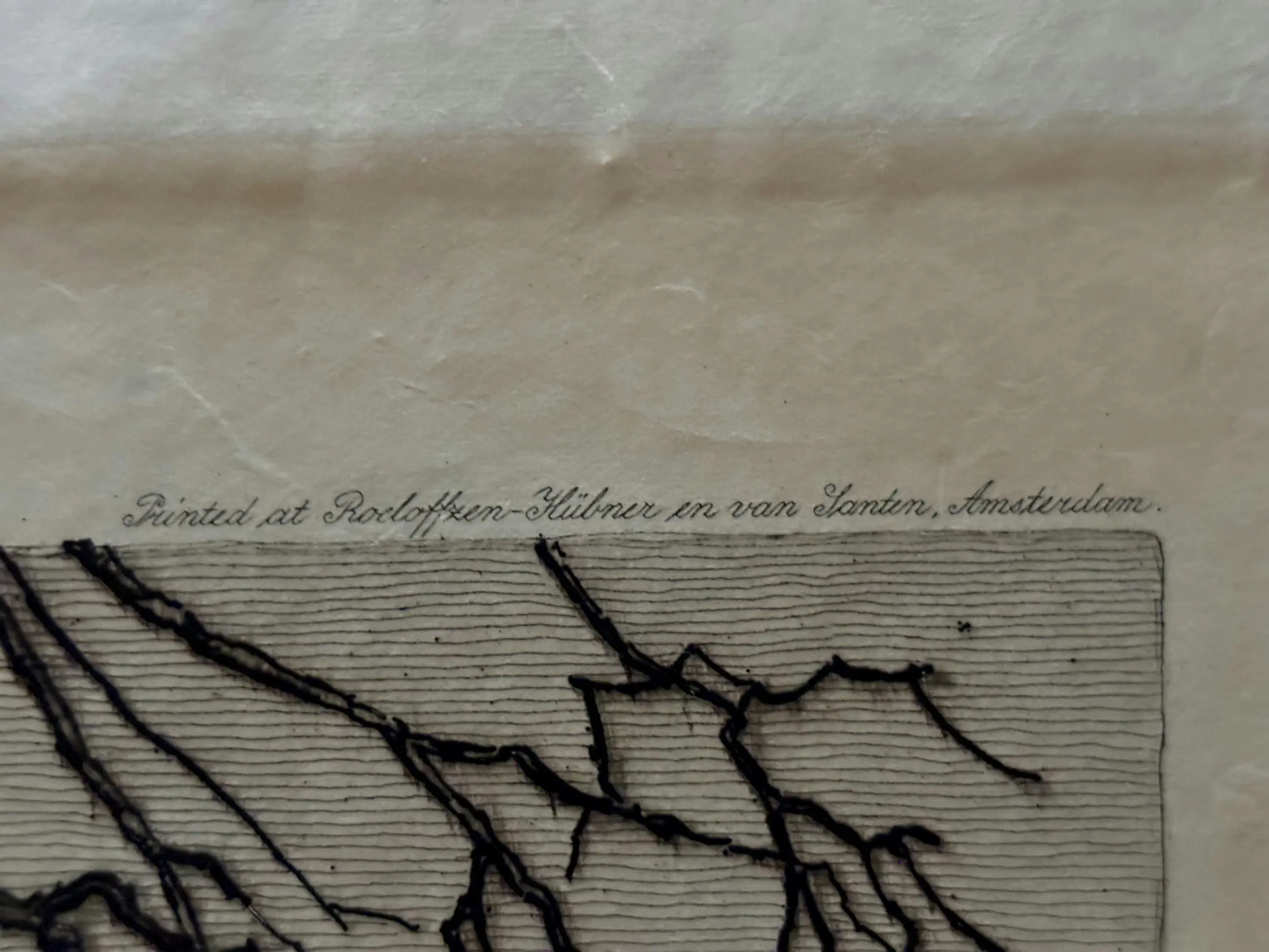 Gedrukt in 1910 op Japans papier. De lijnen zijn voelbaar op het papier, reliëfdruk?