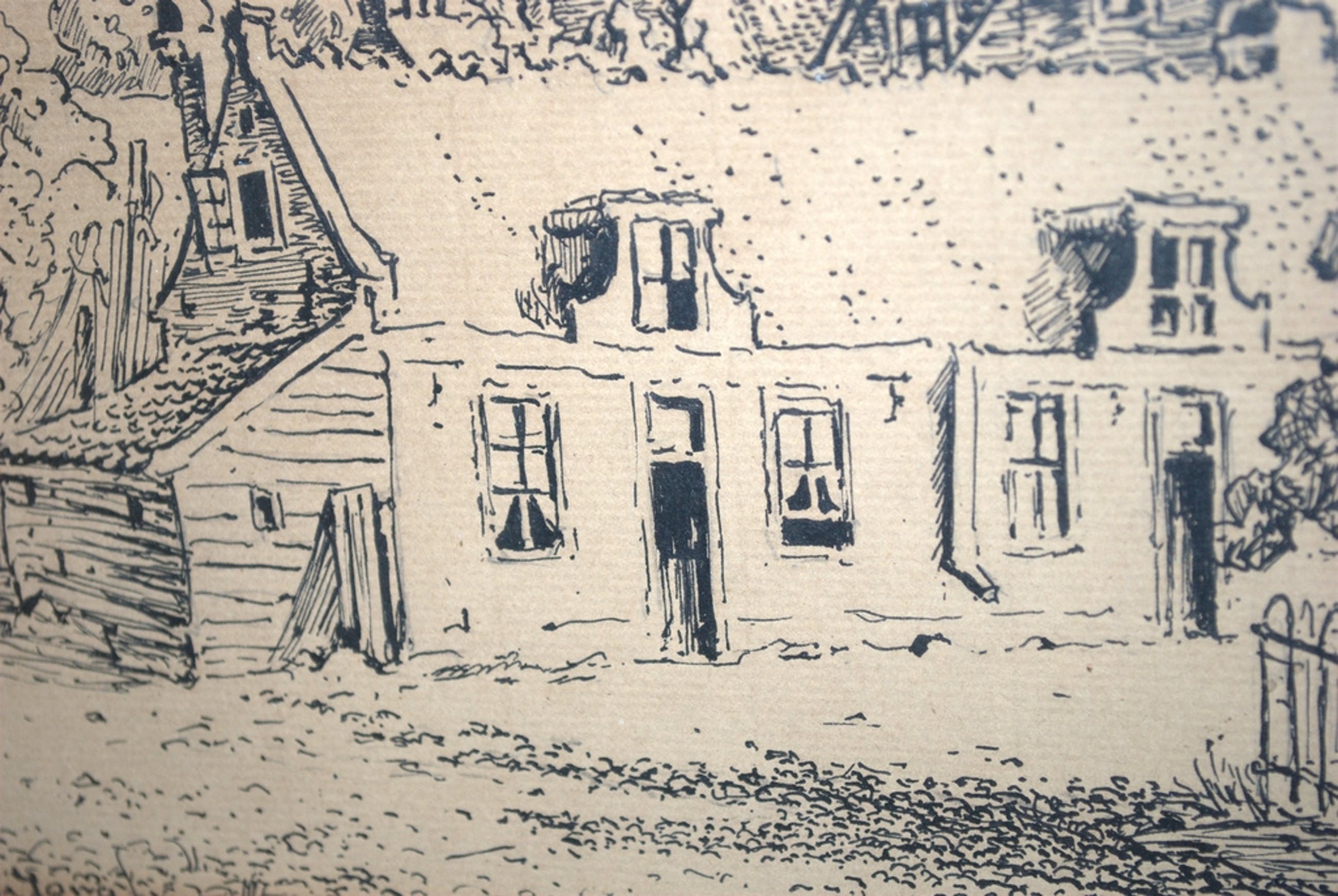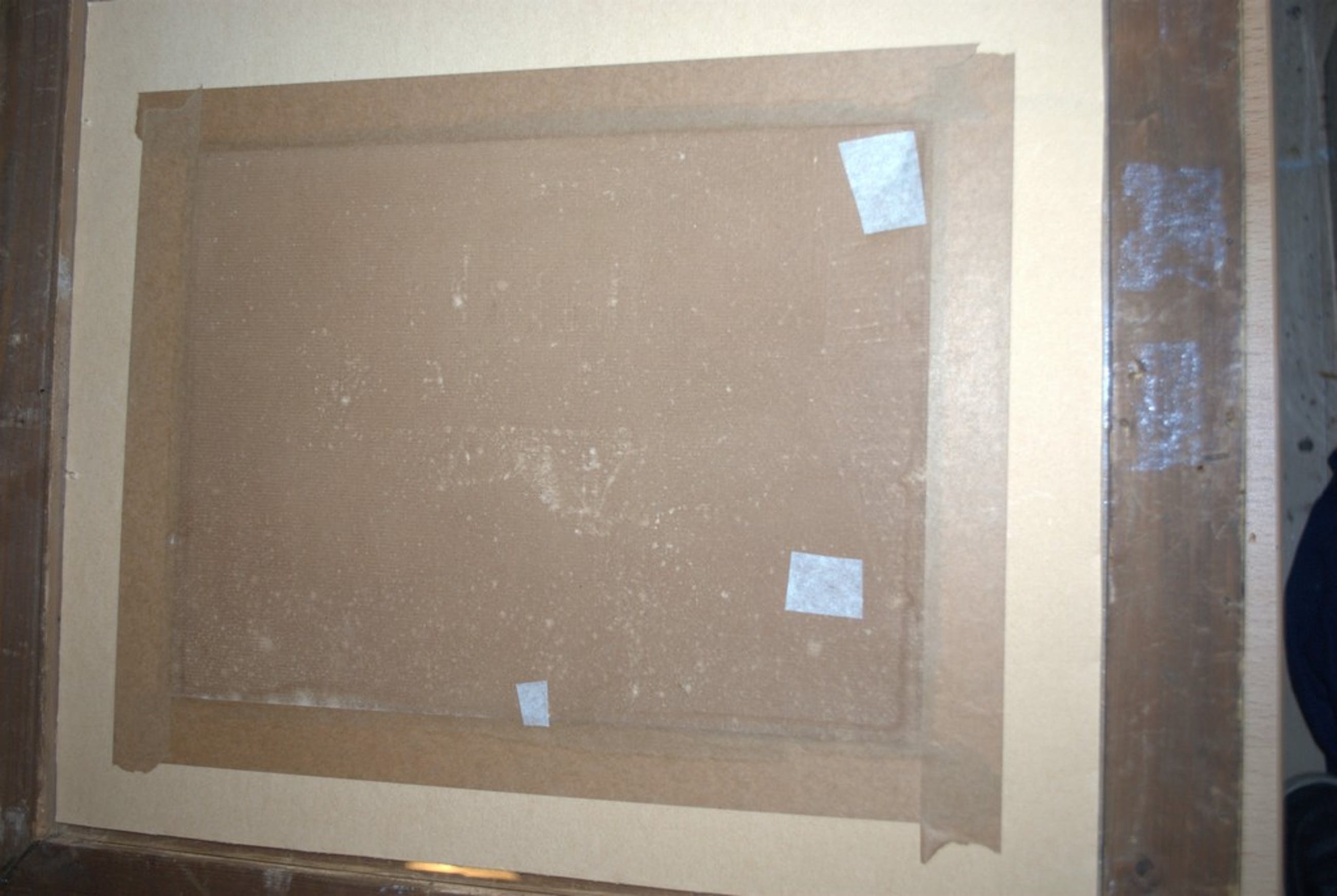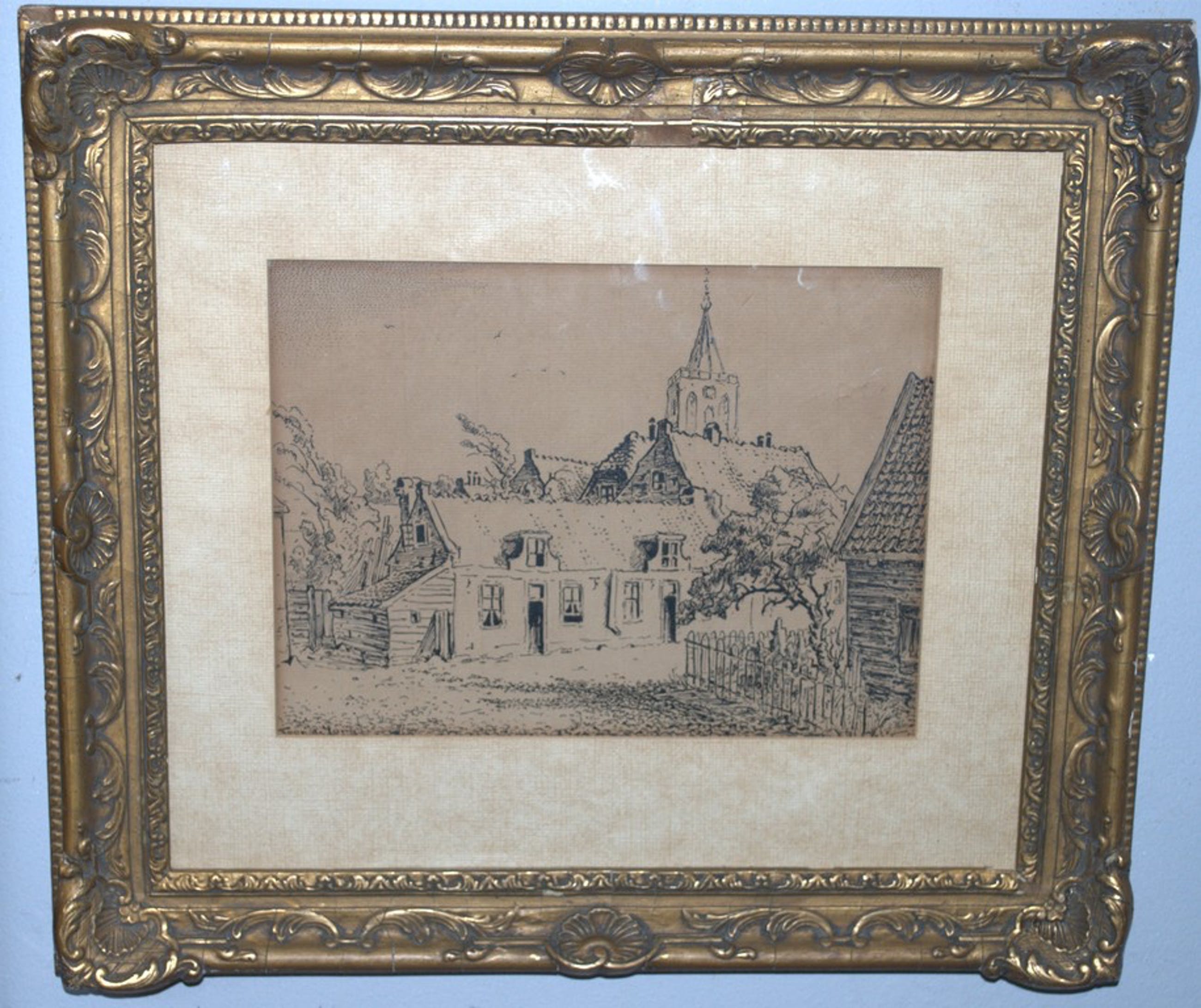 Achter glas en passepartout, in een fraaie gipsen lijst, met enige schade/cracquelé, 39x44 cm.