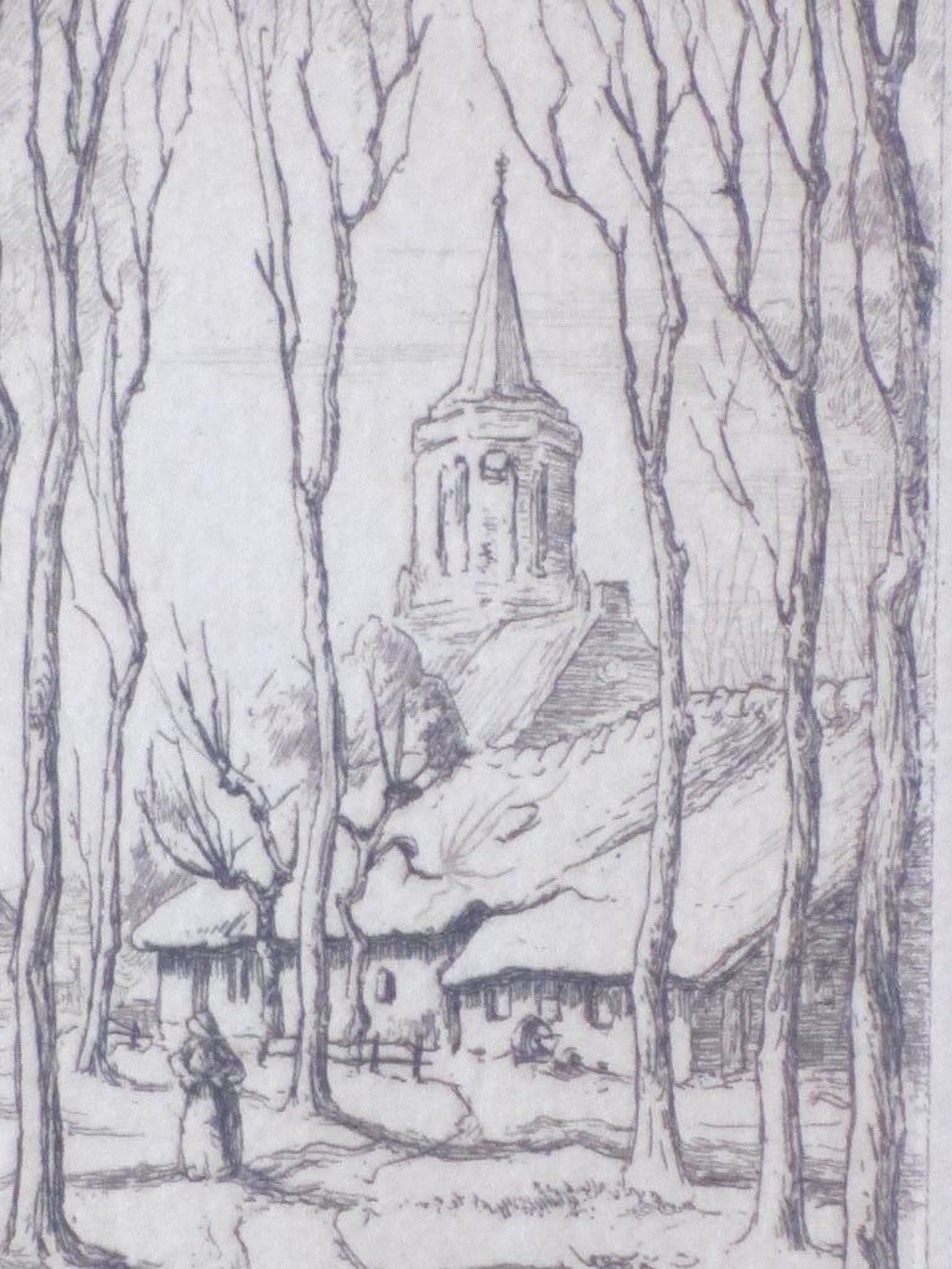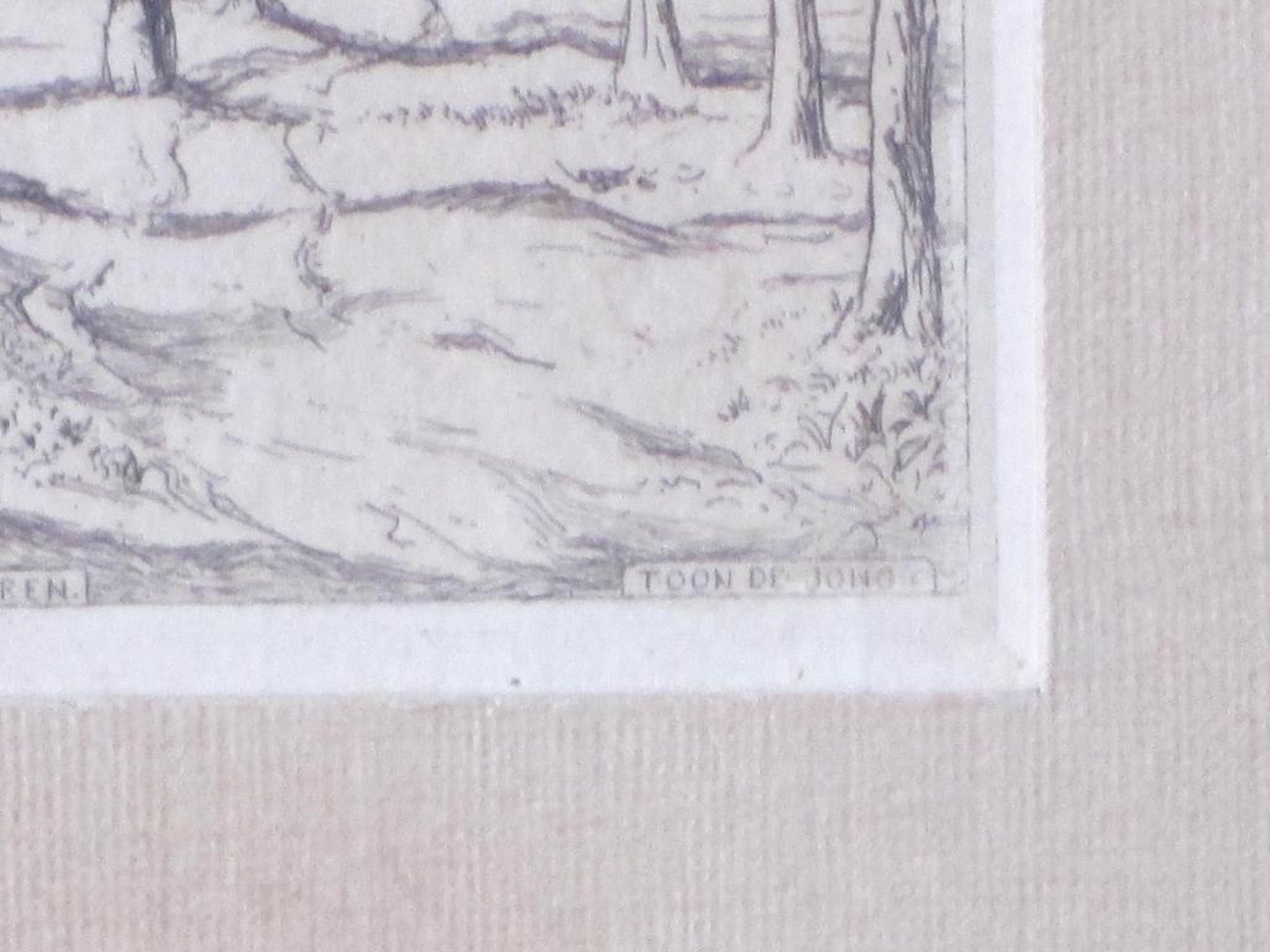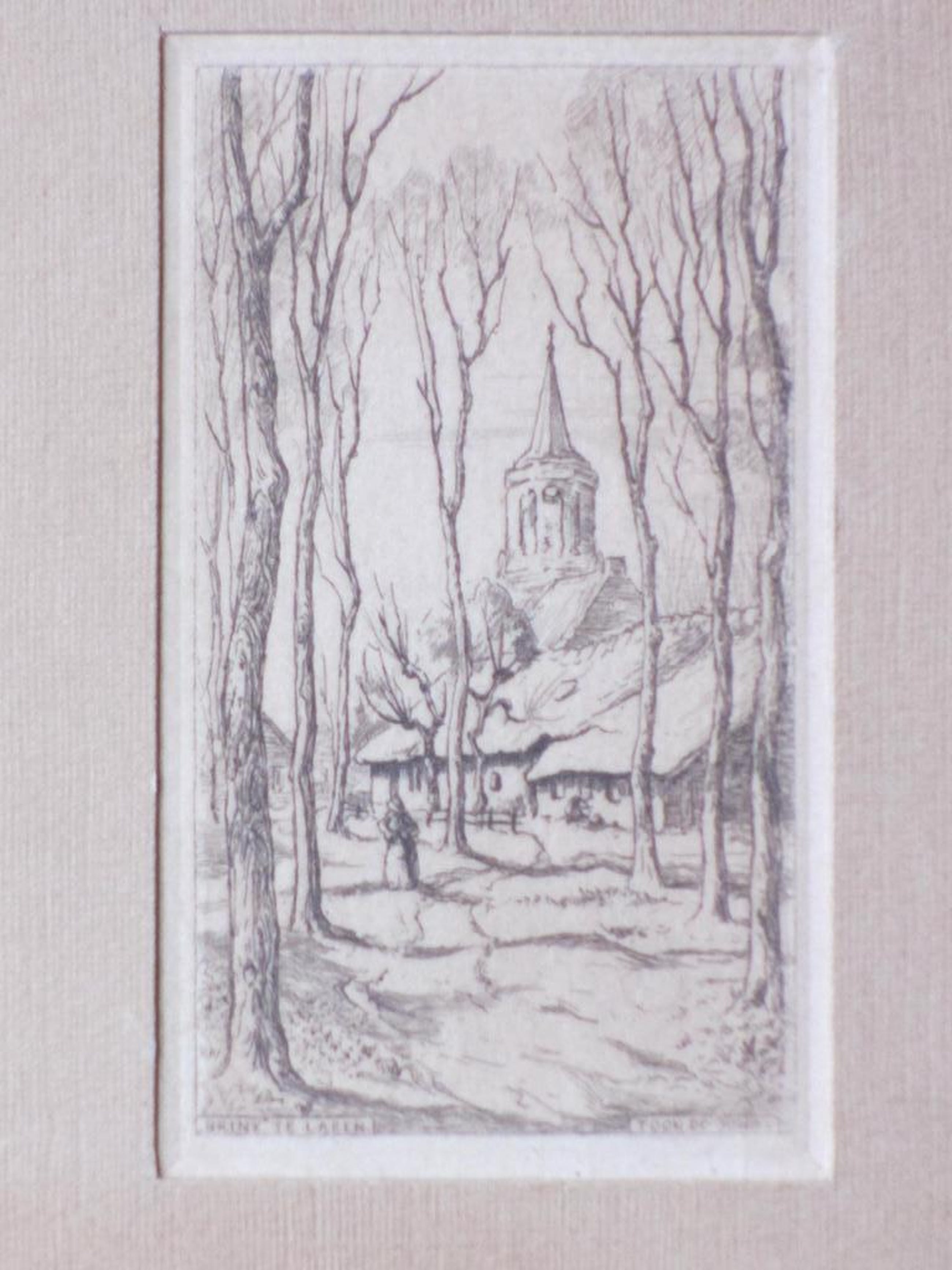 Ets onder passepartout, beeldmaat 11x6,5, p.p.-maat 18,5x13,5