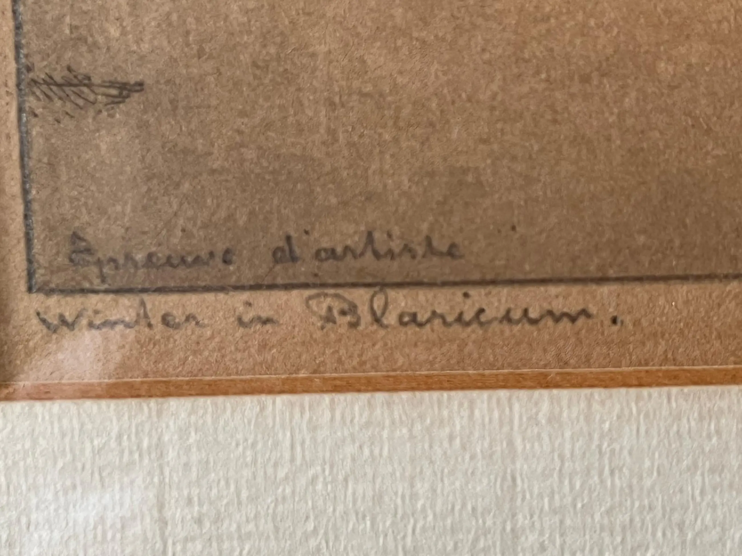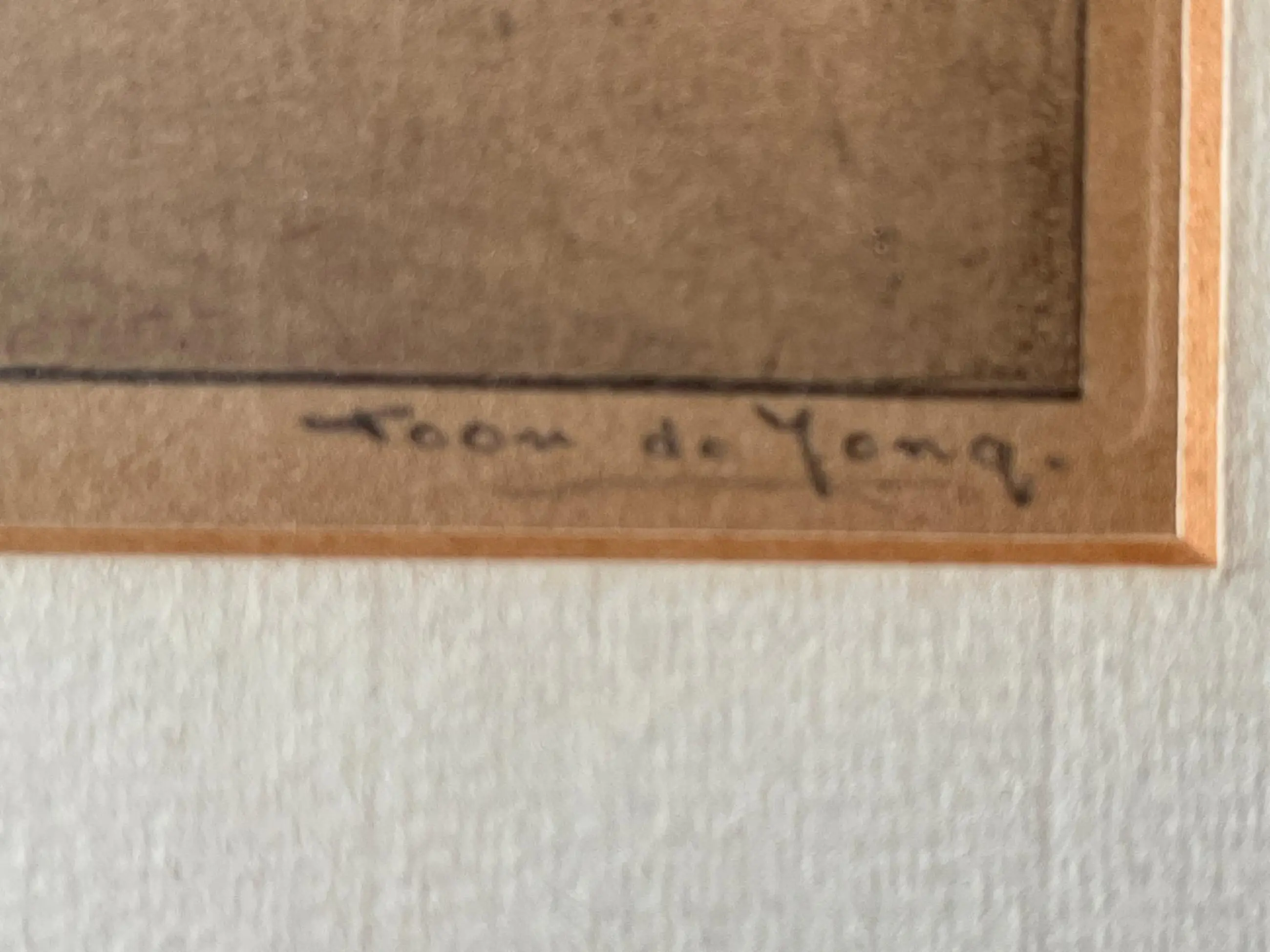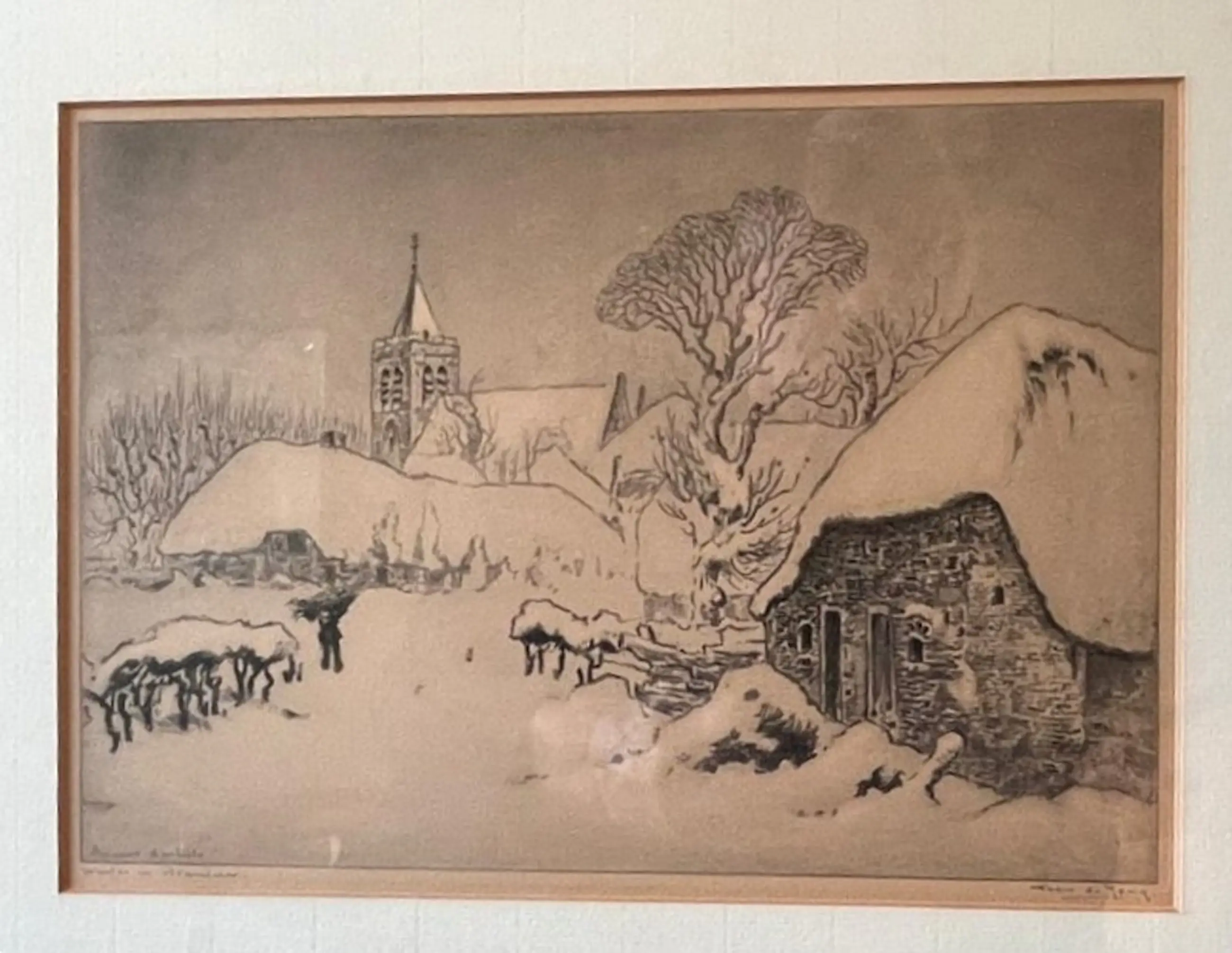Originele, gesigneerde ets van Toon de Jong getiteld “Winter in Blaricum". De ets zit achter een passe-partout in een oude houten lijst. In de plaat gesigneerd l.o.: Epreuve d'artist Rechtsonder in potlood: Toon de Jong Linksonder in potlood getiteld: Winter in Blaricum