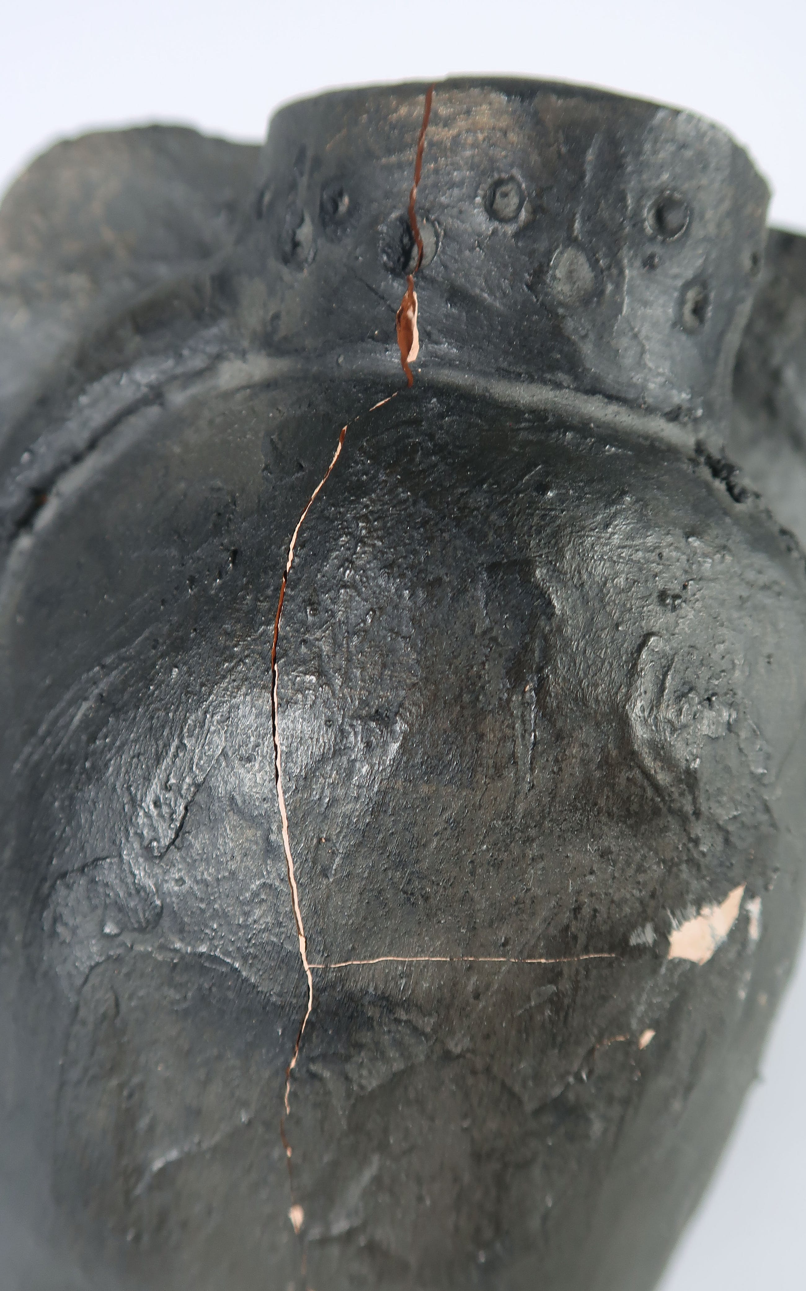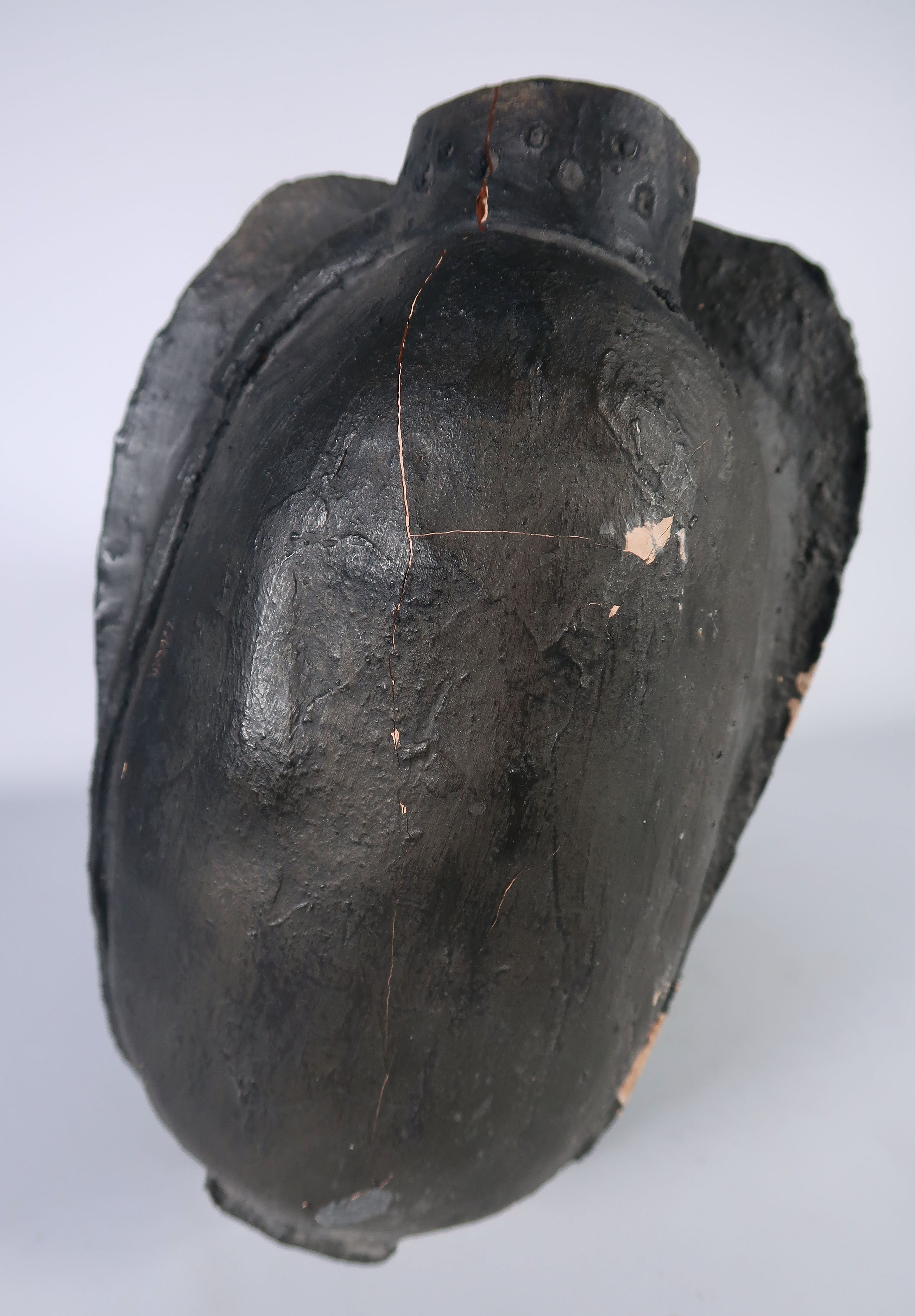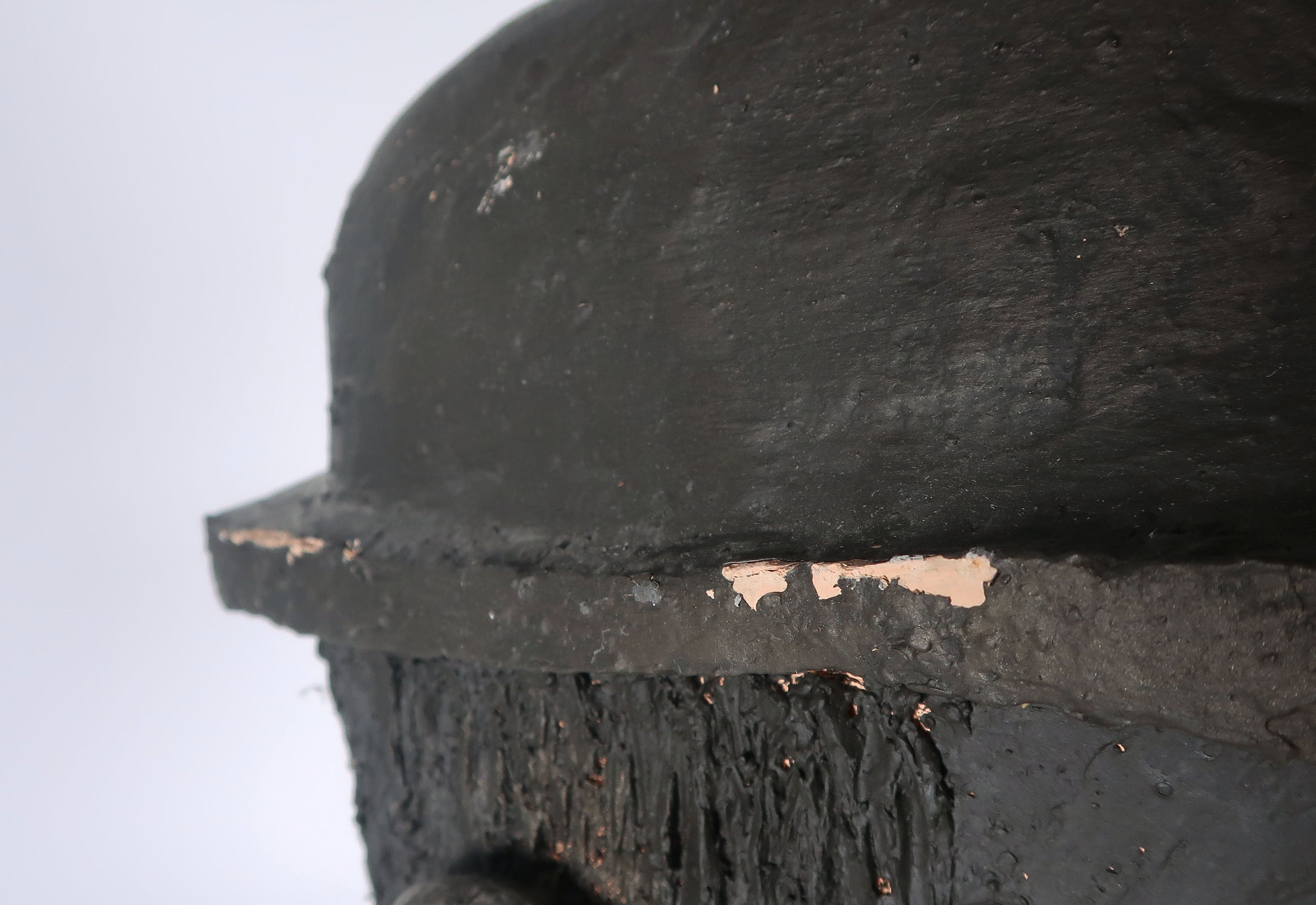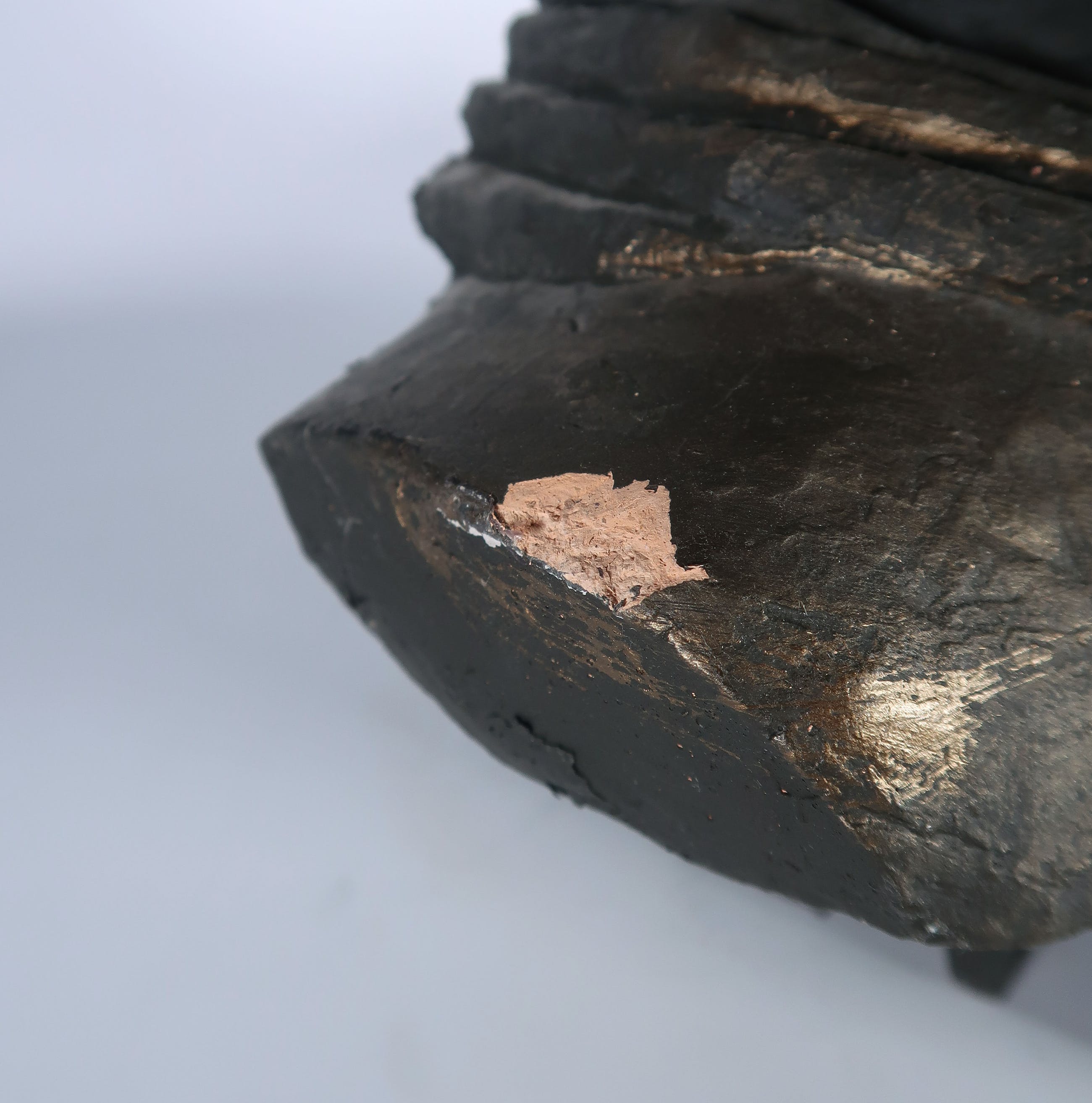 | Het beeld heeft enkele beschadigingen in de verflaag. Tevens loopt er een barst over het hoofd van het beeld. Zie de foto's voor detail. | |