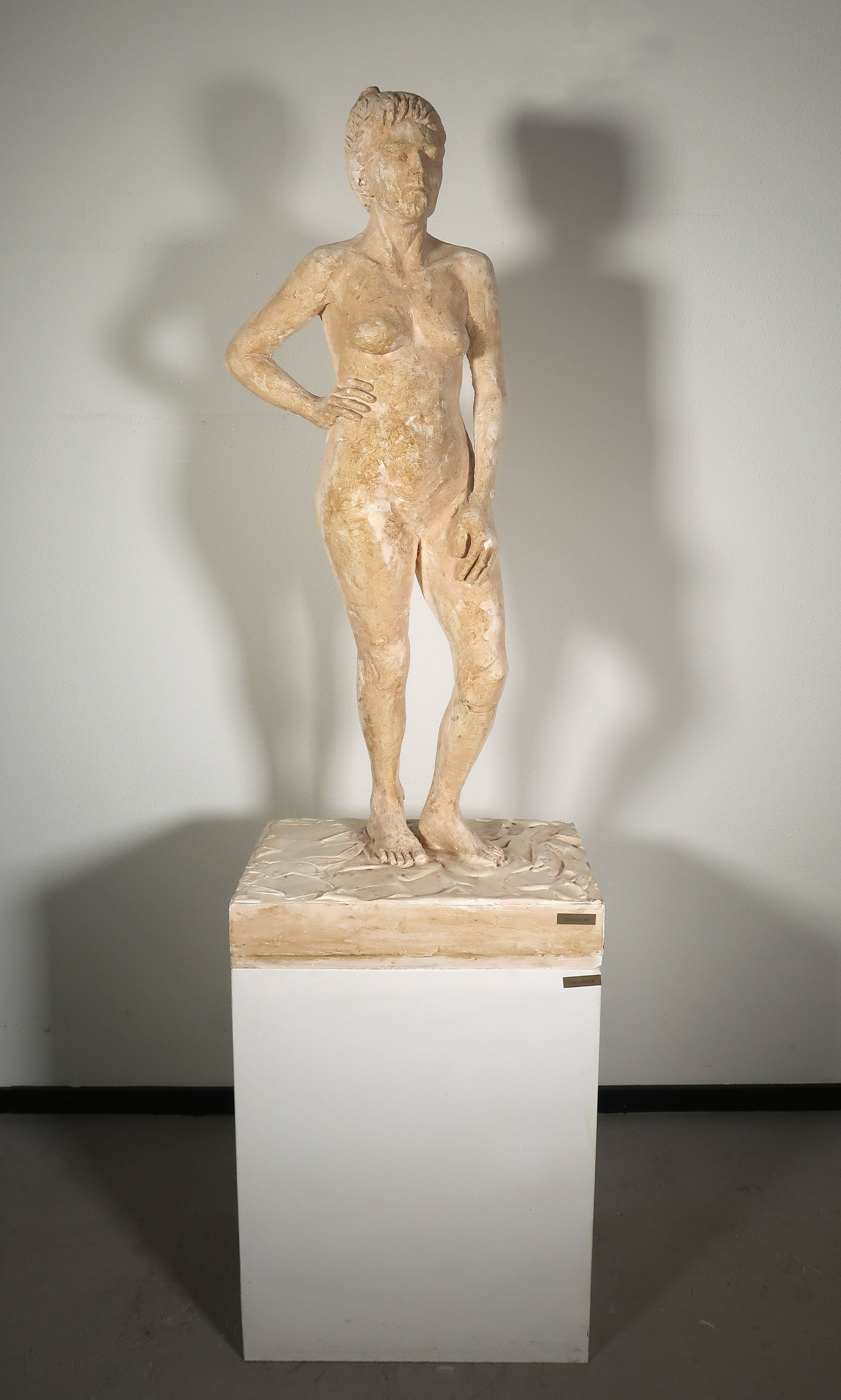 Het beeld en de sokkel zijn los van elkaar. De afmetingen zijn: