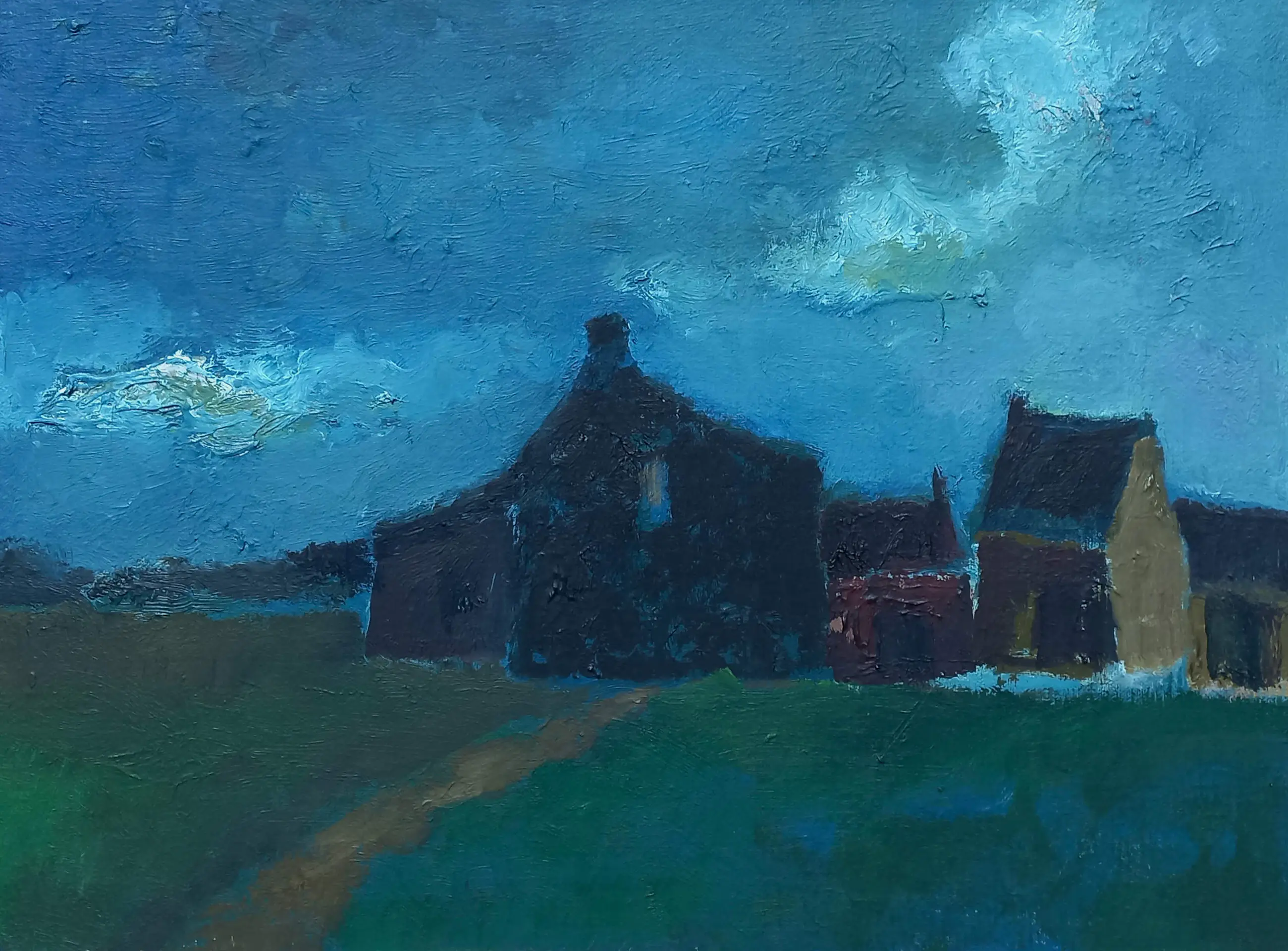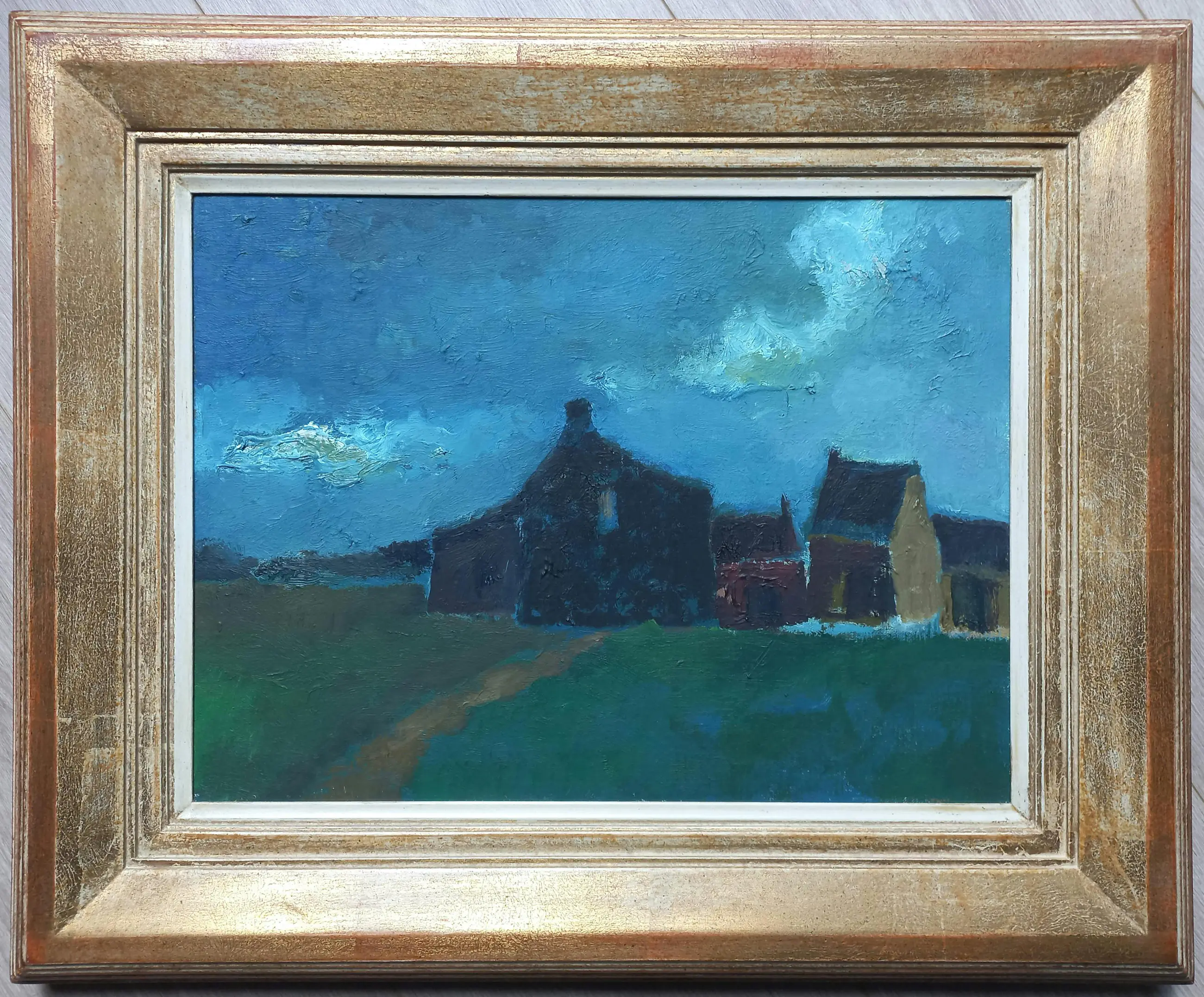 Prachtig, nachtelijk Limburgs landschap van Toon Hermans. Niet alleen was hij één van de Grote Drie Cabaretiers van de vorige eeuw, en misschien de enige die tijdloos is, maar hij was bovendien een begenadigd schilder.