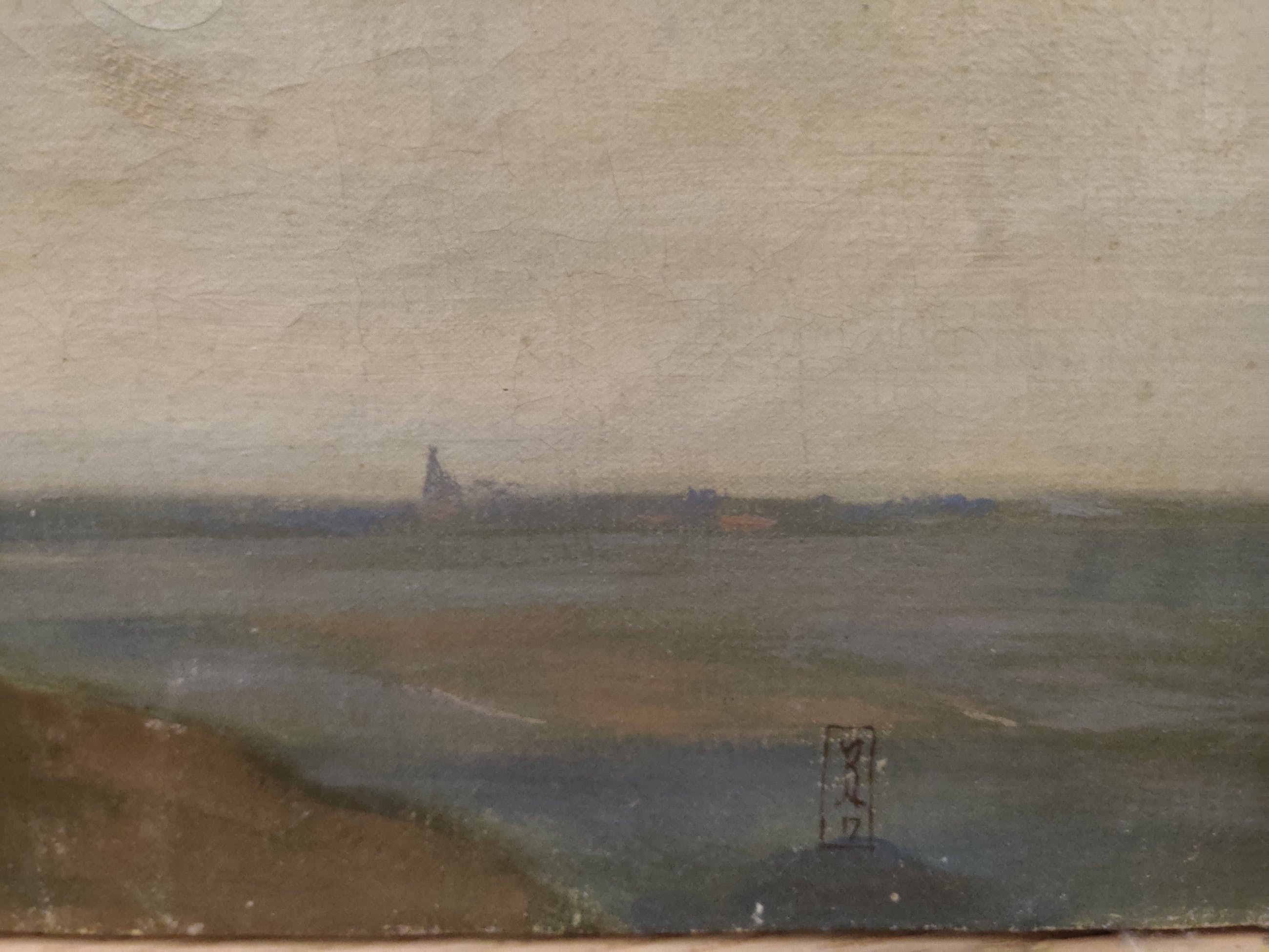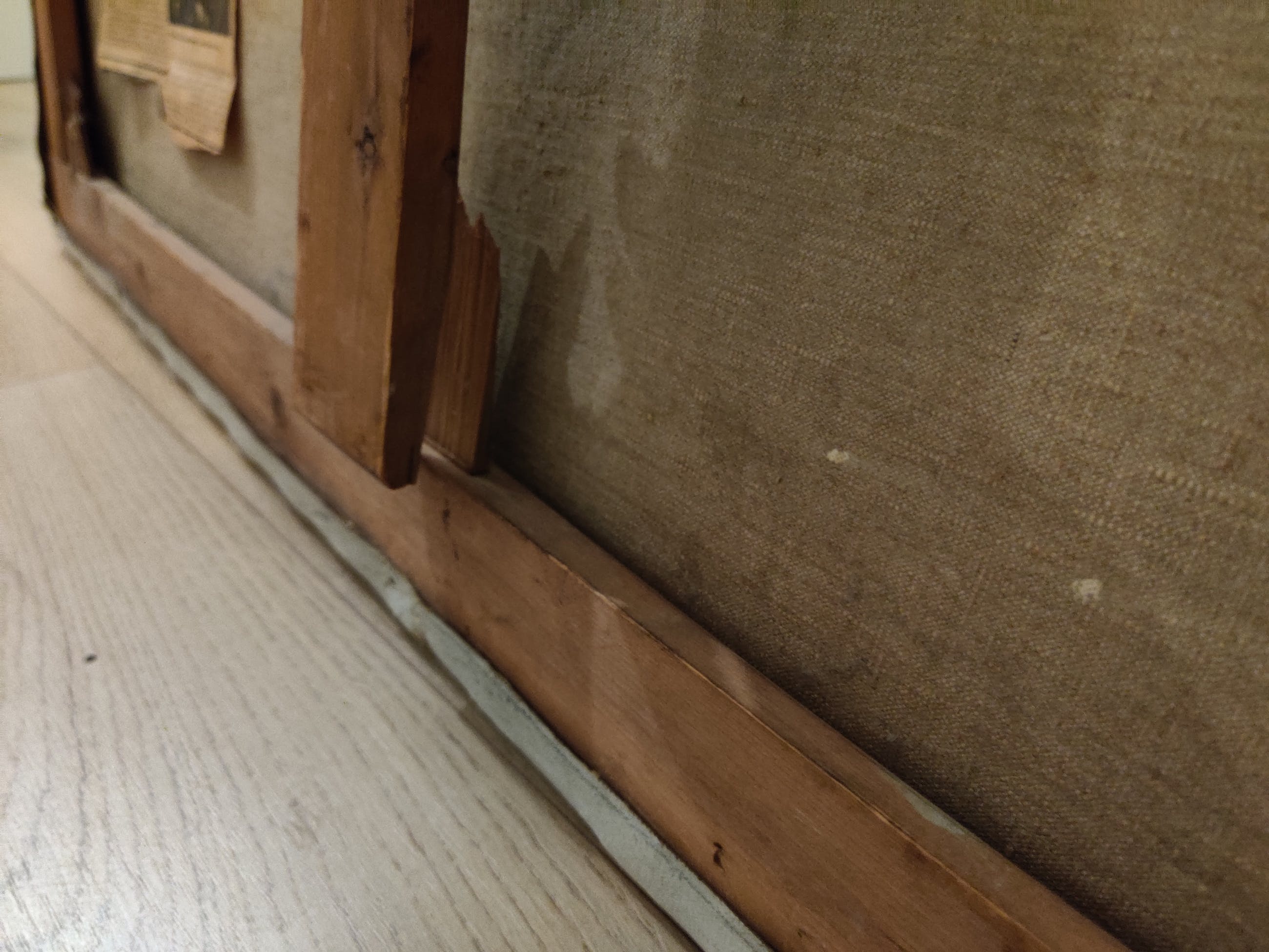 Het doek moet worden schoongemaakt. Op één plekje is het schilderij beschadigd en het frame is beschadigd (zie foto's).