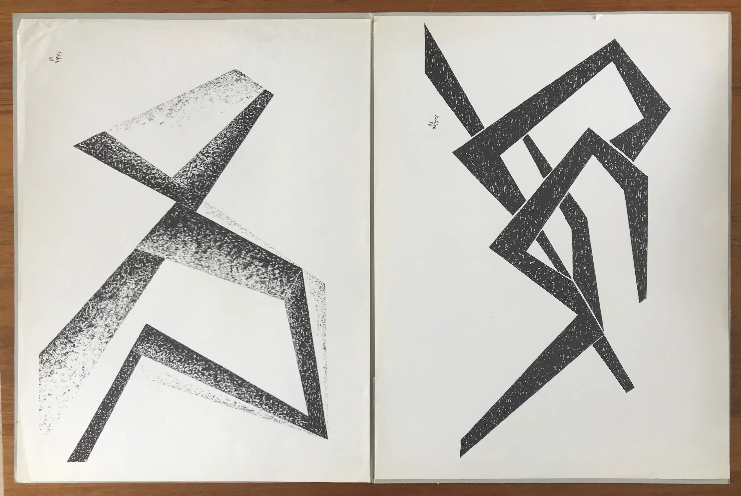 Lot van 2 litho's van Toon Kelder. Abstracte voorstellingen uit 1965. 'Museum Het Prinsenhof - Tentoonstelling onder auspiciën van de Kring' Gesigneerd en gedateerd in de druk. Afmetingen blad: 61 x 46.5cm. Steeds bewaard in (niet) meegeleverde map - nooit ingelijst. Zullen in veilige verpakking en met T&T verzonden worden.