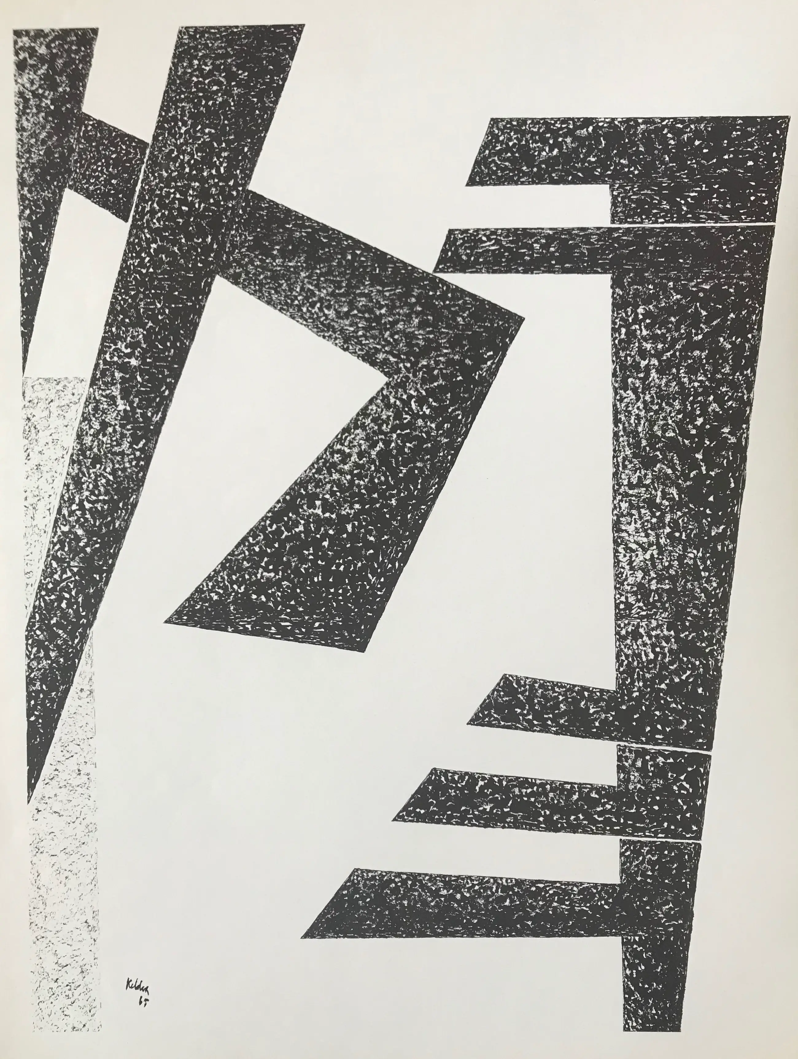 Lot van 2 litho's van Toon Kelder. Abstracte voorstellingen uit 1965. 'Museum Het Prinsenhof - Tentoonstelling onder auspiciën van de Kring' Gesigneerd en gedateerd in de druk. Afmetingen blad: 61 x 46.5cm. Steeds bewaard in meegeleverde map - nooit ingelijst. Zullen in veilige verpakking en met T&T verzonden worden.