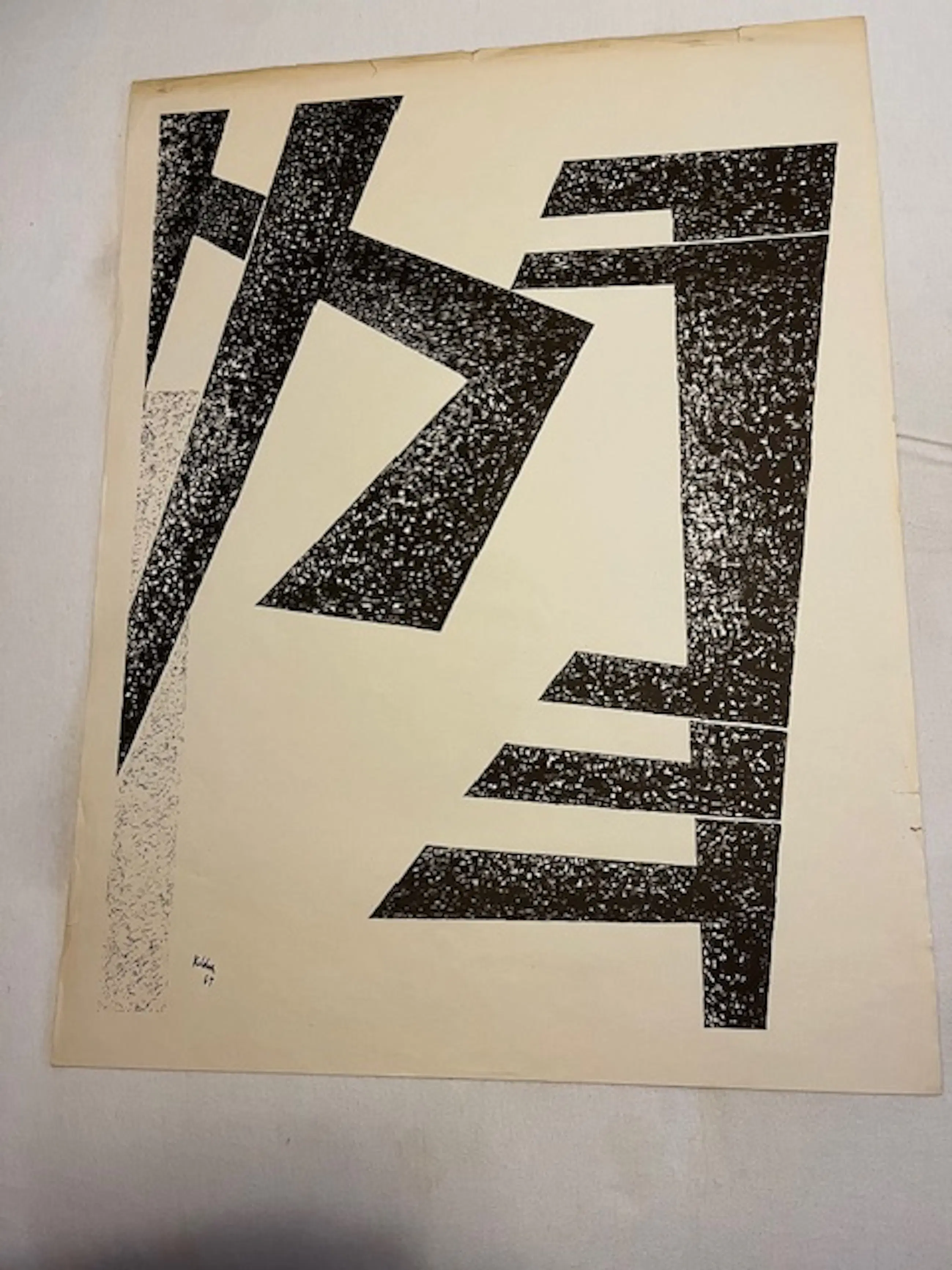 Map met 6 platen met geometrische vormen. Penseeltekeningen in monochrome gouache.