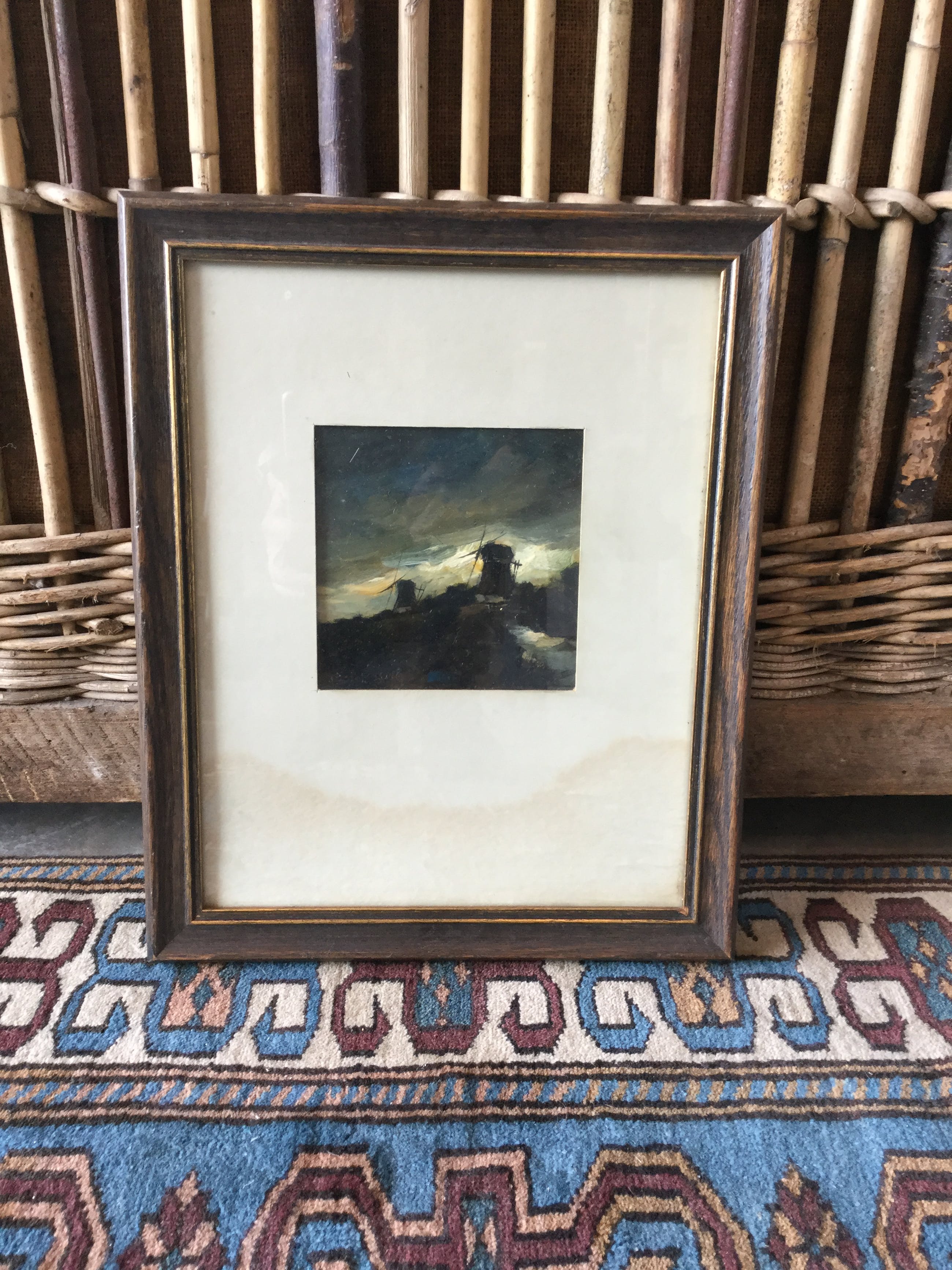 | Passepartout bevat vochtvlek, het werk zelf is niet aangetast, de lijst bevat oppervlaktevuil en slijtschade door de tijd. | |