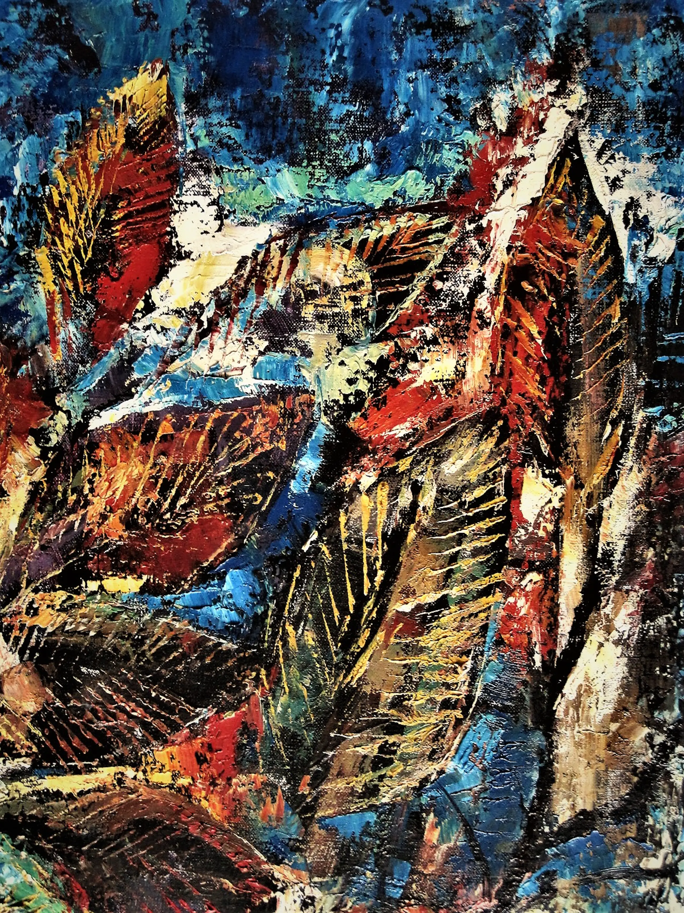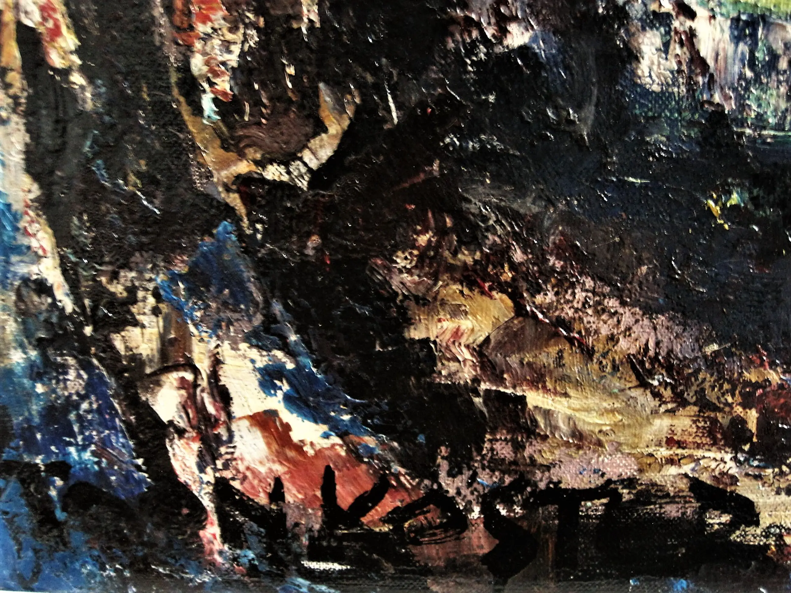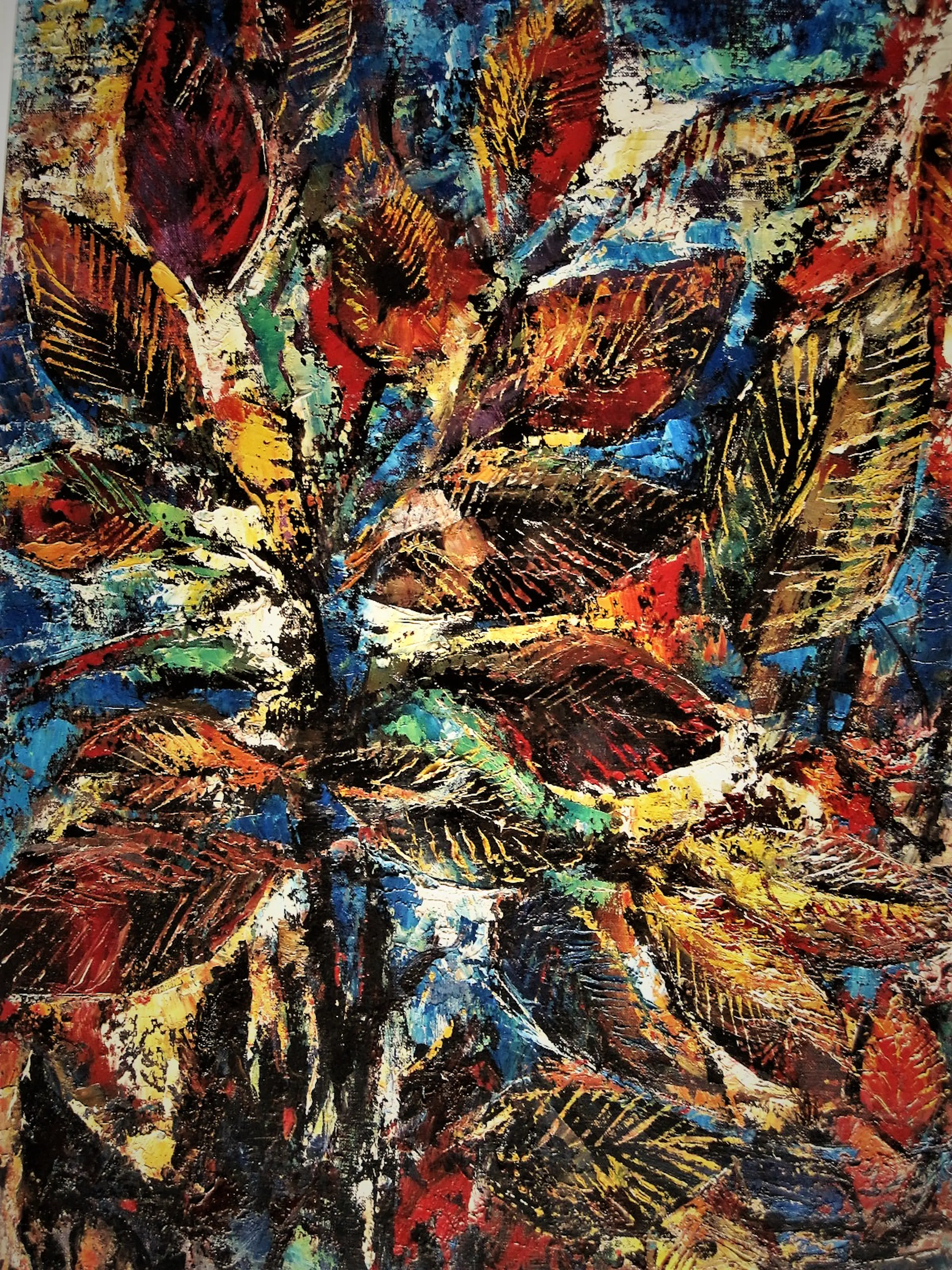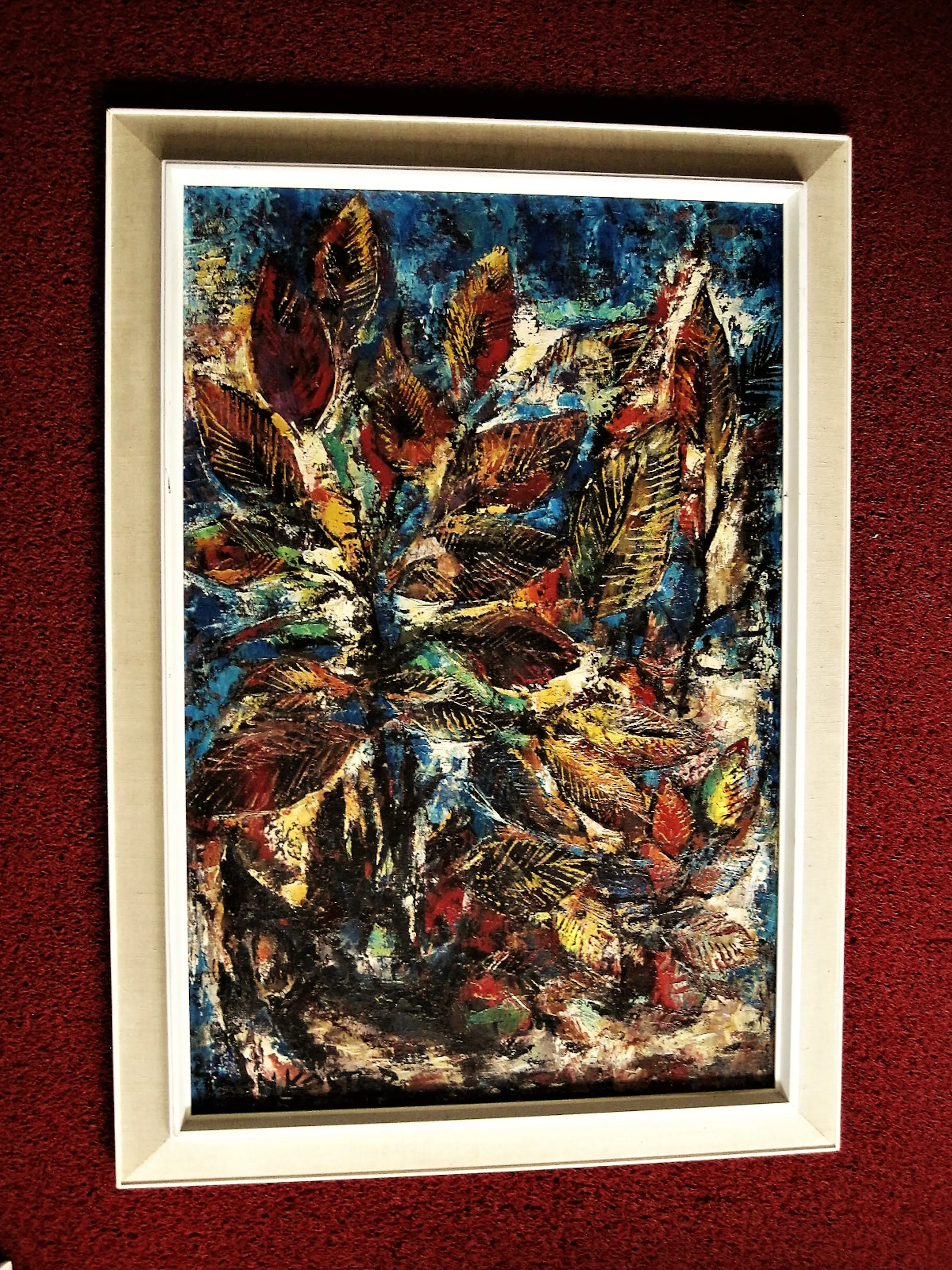 Fraai expressionistisch en pasteus geschilderd olieverf op doek schilderij "Herfsttakken". Groot formaat schilderij (80 x 110cm incl.lijst!) en in zeer goede conditie. Linksonder gesigneerd.