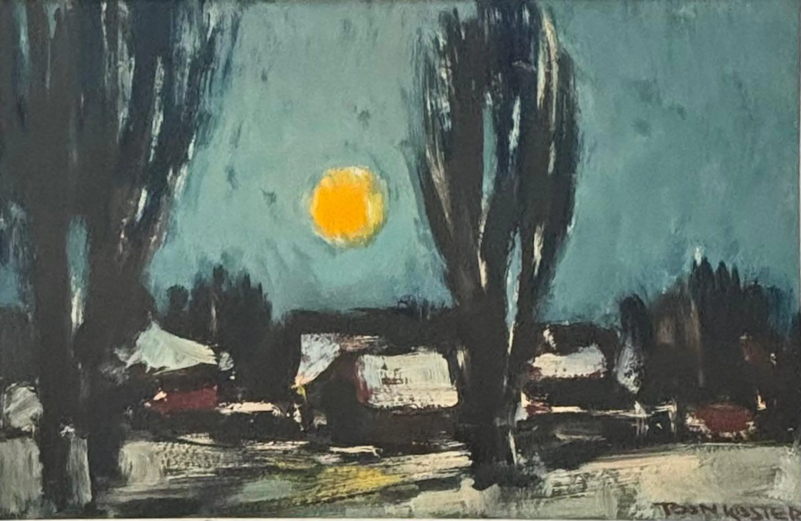 Afmetingen zijn van het schilderij zelf, niet frame. Klaar om ingelijst te worden. Een lijst nodig van 62 bij 47.3 Er zit een kleine beschadiging (goed te restaureren - op de boom)