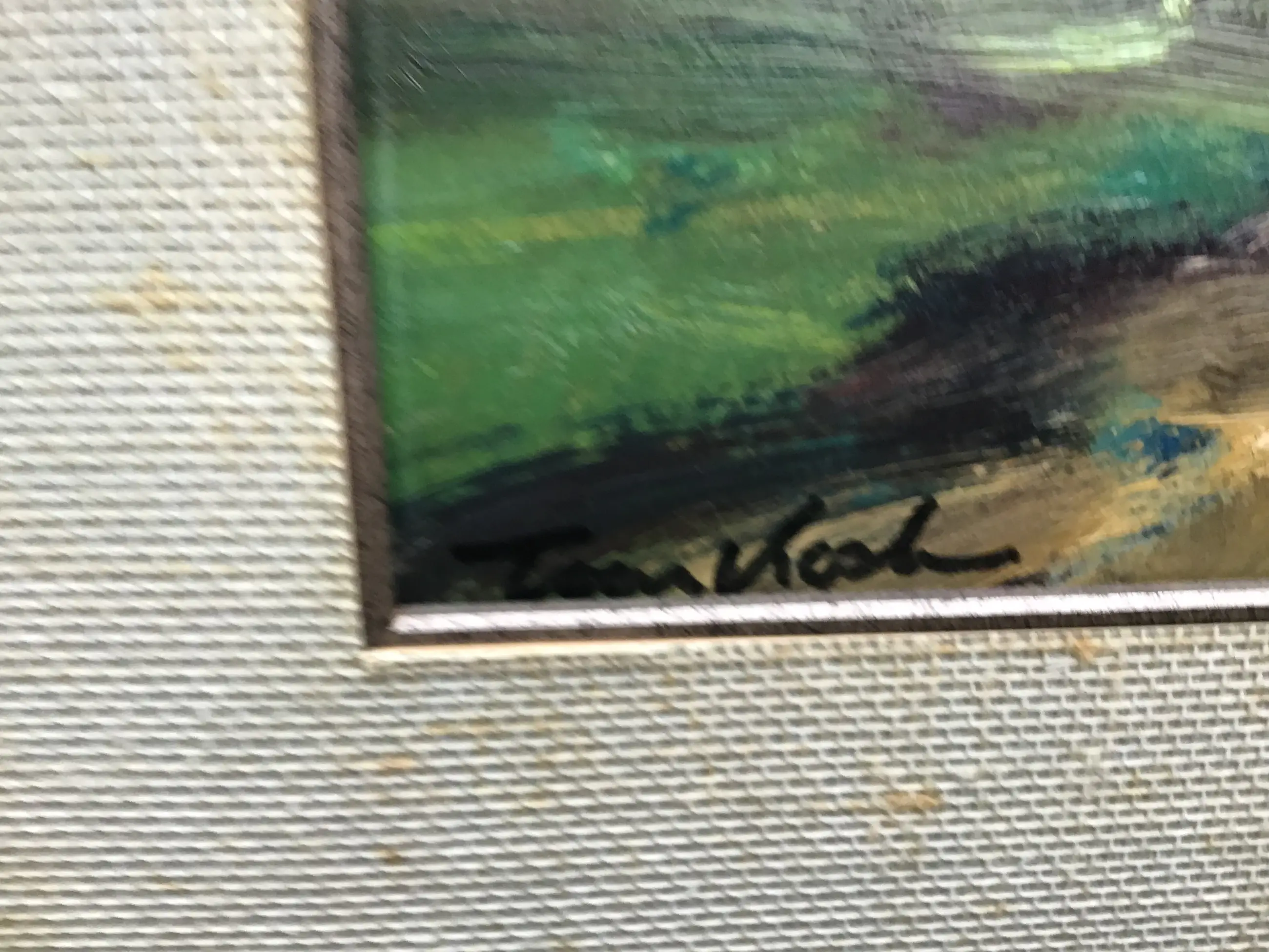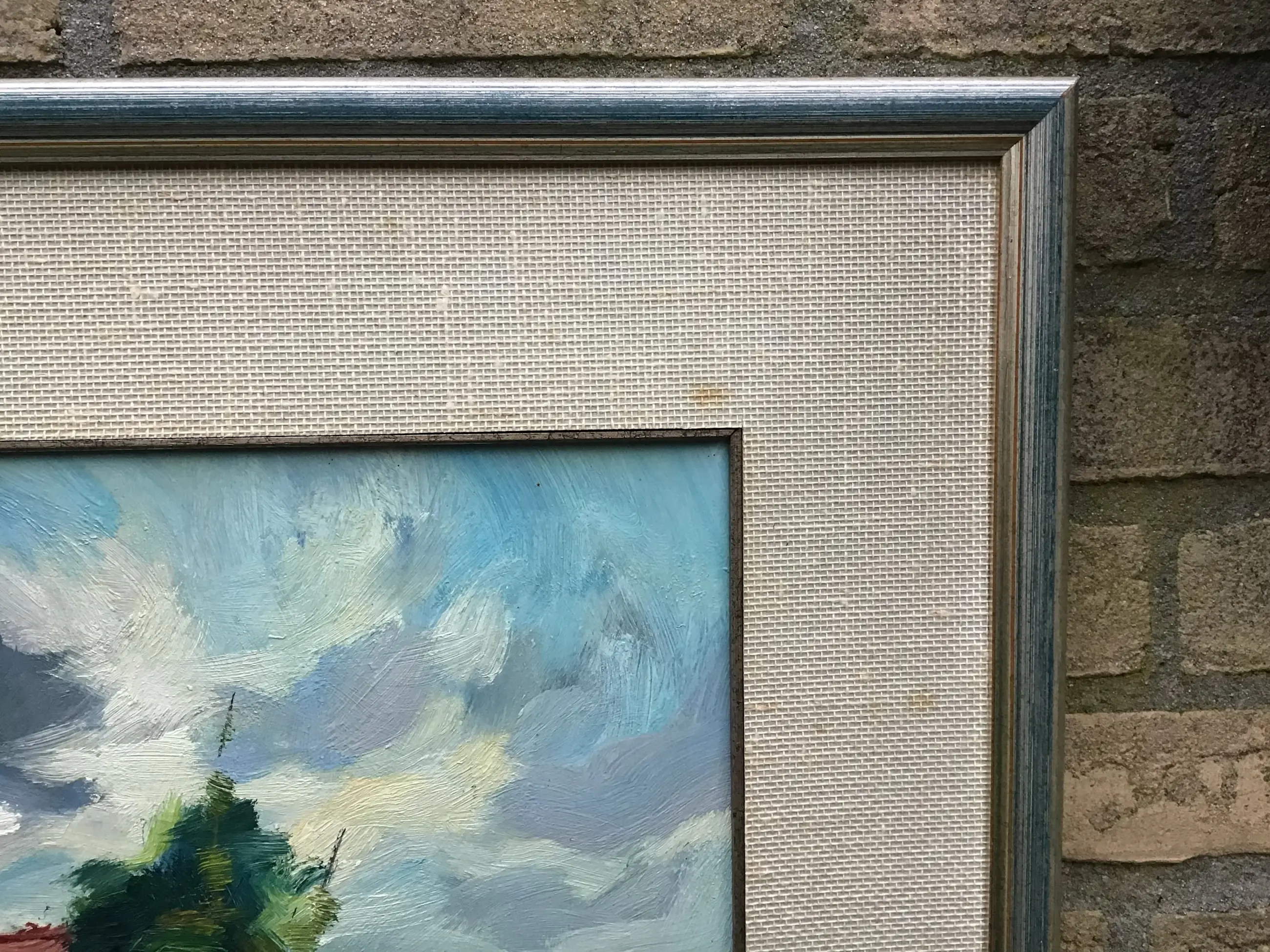 Olieverf op karton in perfecte conditie. Het originele passe-partout heeft wel lichte verkleuring.