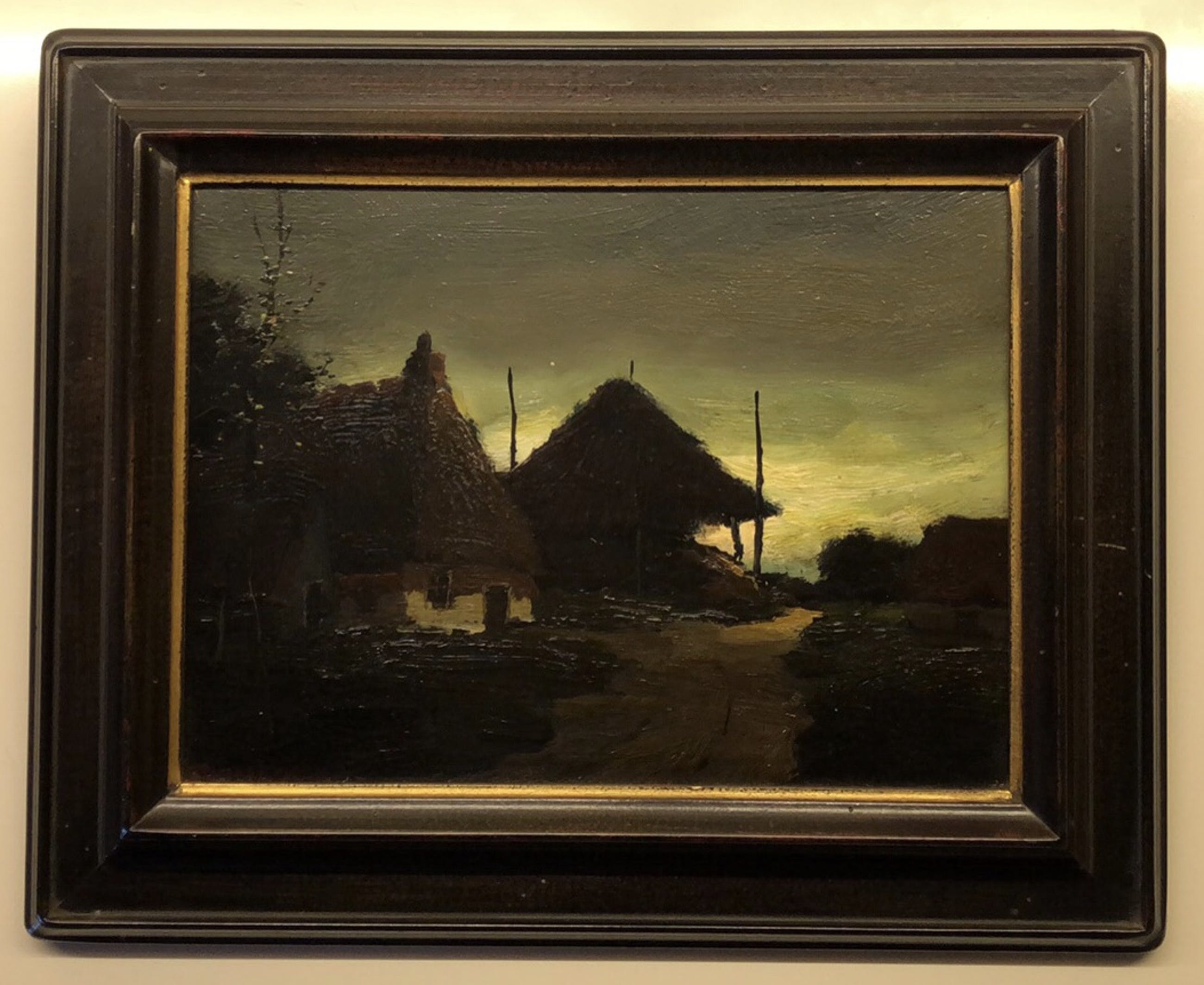 Landschap in avondlicht, olieverf op paneel, typische Toon Koster stijl, in zeer goede staat.