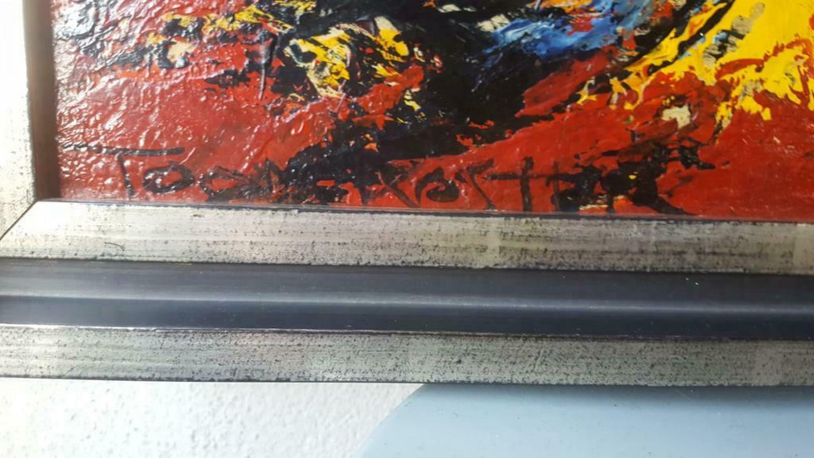 Prachtig abstract schilderij van schilder Toon Koster. Mooi gelijst in klassieke lijst.