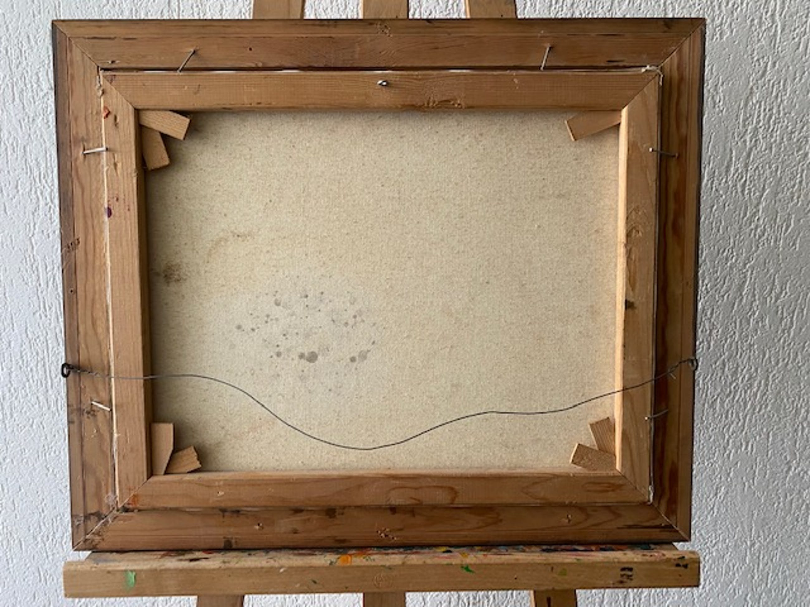 het werk zit in de originele houten lijst welke enigszins is beschadigd