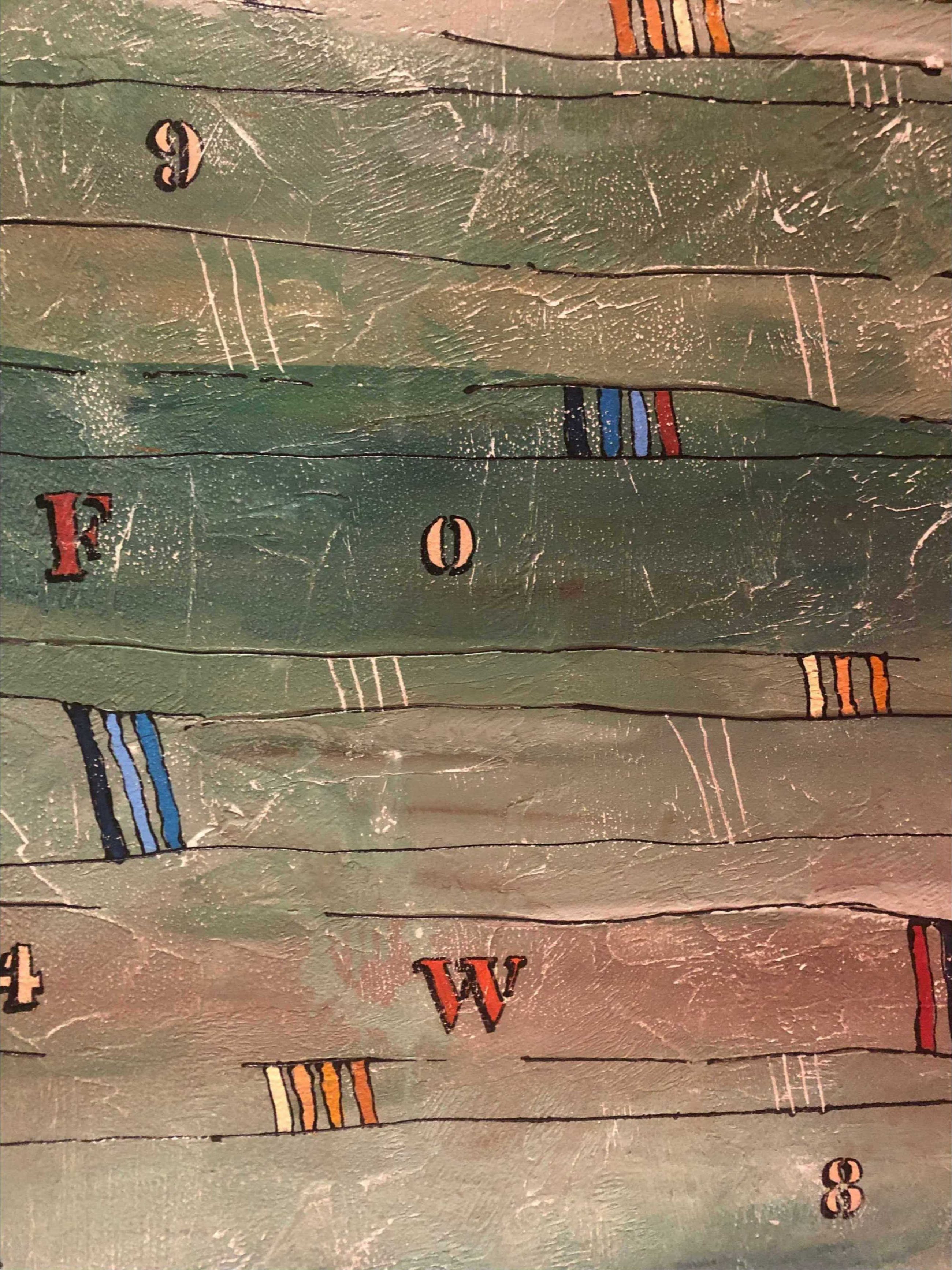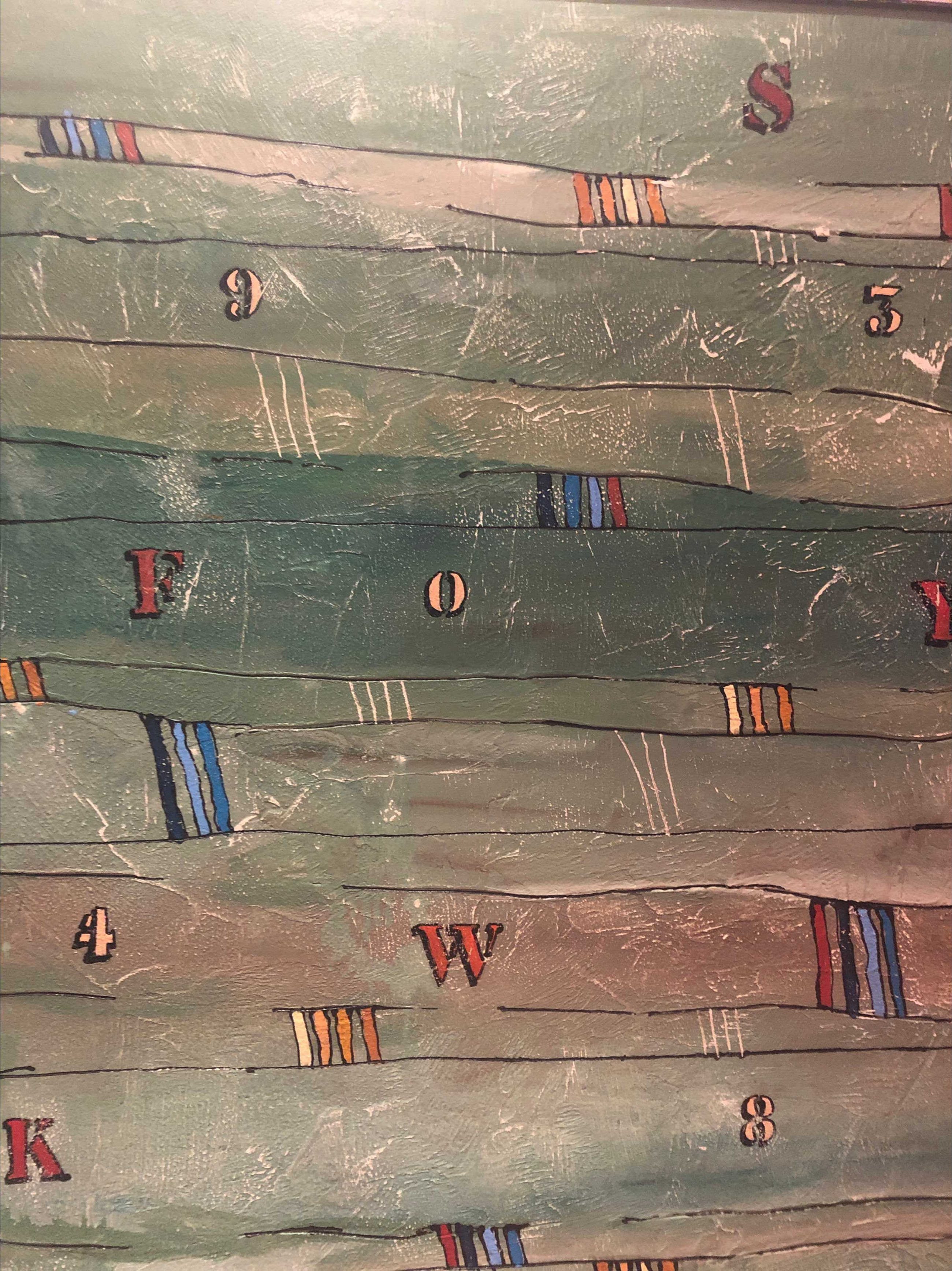 Dit is een origineel werk van de Nederlandse schilder Toon Kuijpers (1954, Heeze, Nederland) uit zijn Ritme serie (Ritme 3). Dit abstracte werk is ontstaan in de periode 1996 / 1997. Het is geschilderd op een paneel welke is opgebouwd uit plaster waarin de schilder lijnen heeft getrokken als basis voor het schilderij en tevens reliëf heeft toegevoegd. Deze methode geeft het schilderij een dynamische werking waardoor het lijkt alsof het daadwerkelijk muziek maakt. Het schilderij is ingelijst middels een handgemaakte houten zwart-zilveren lijst. Dit werk is origineel geleverd door Business Art Services in Raamsdonkveer.