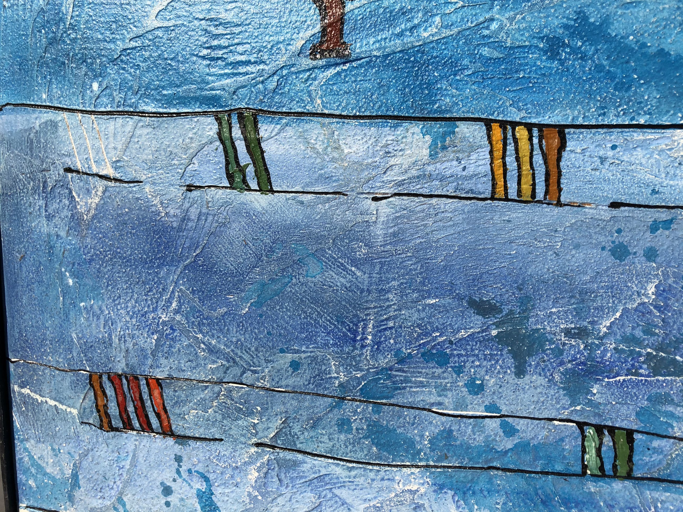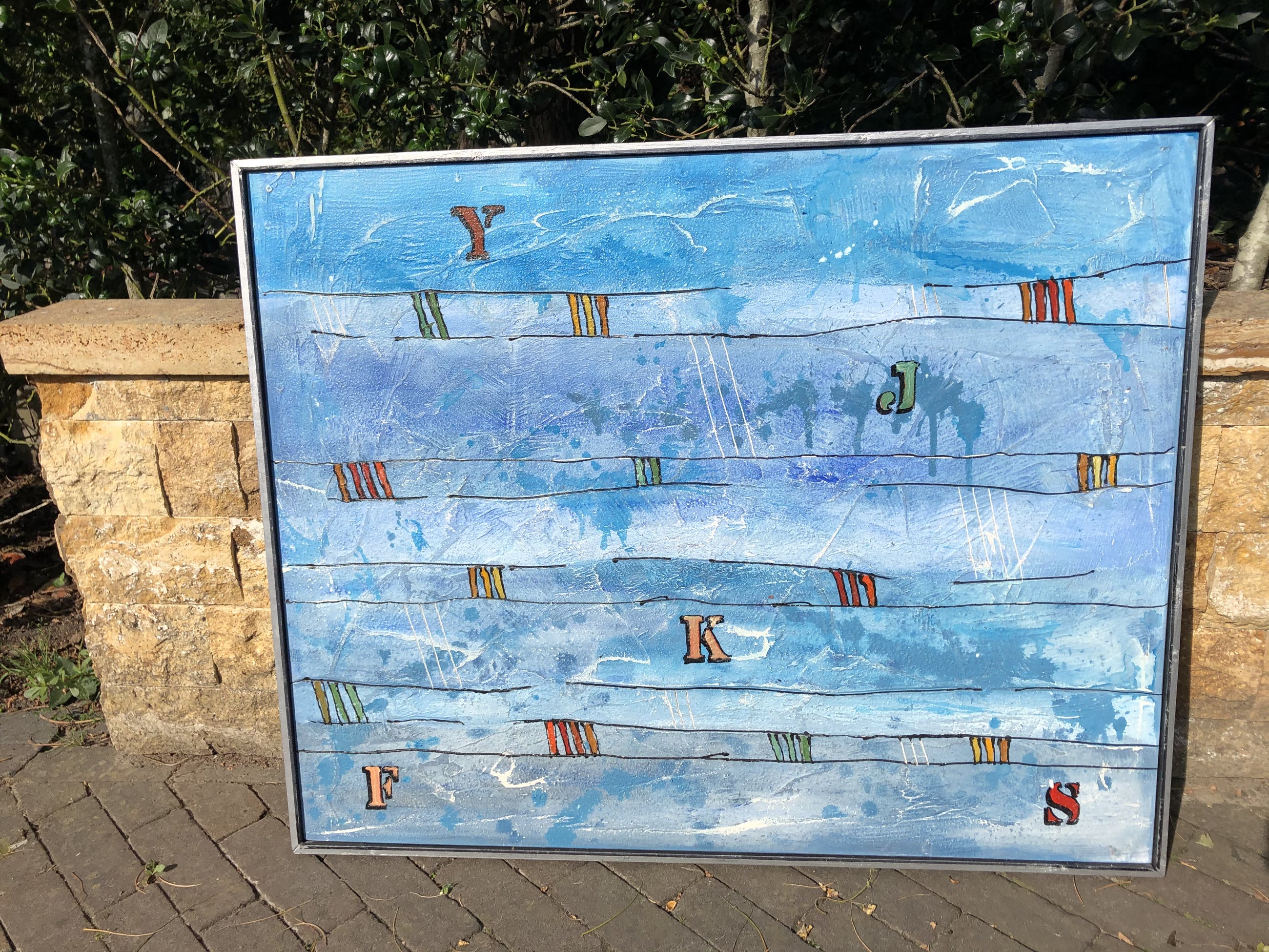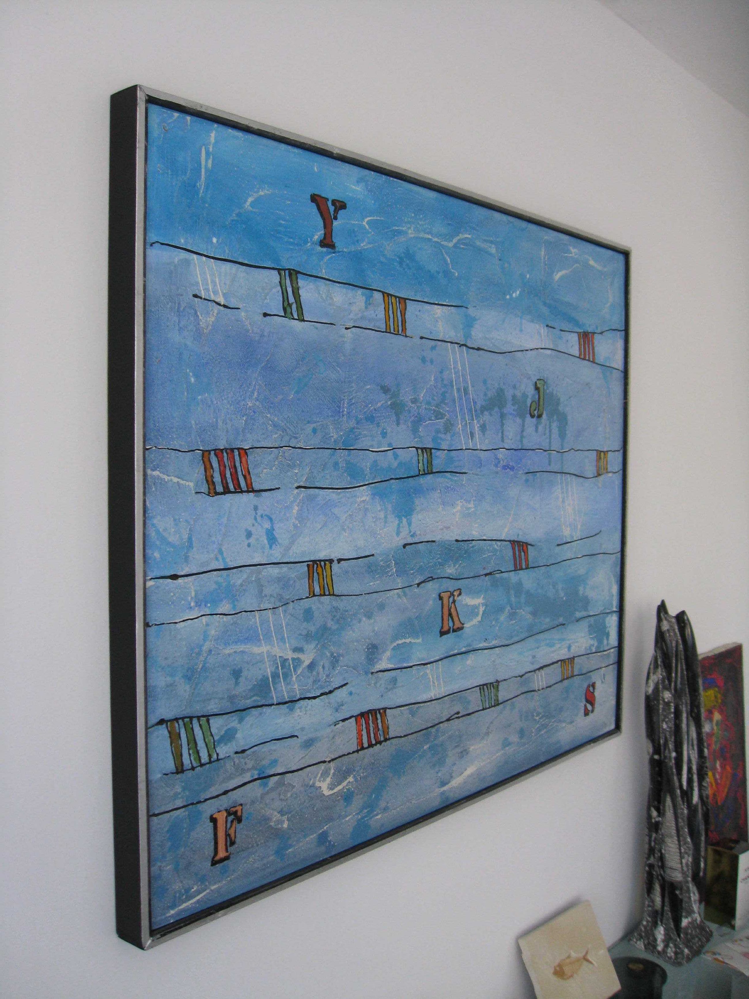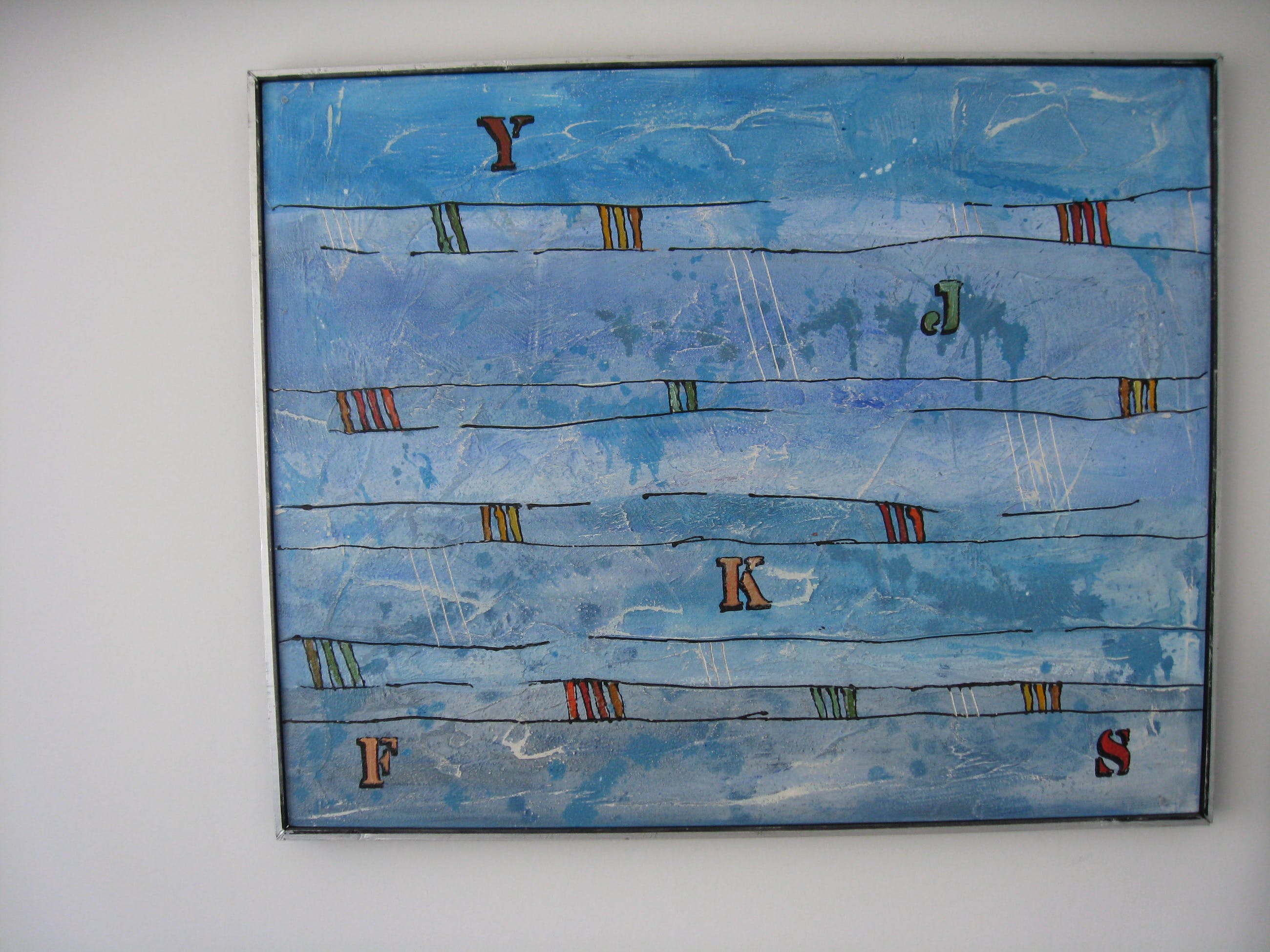 Dit is een origineel werk van de Nederlandse schilder Toon Kuijpers (1954, Heeze, Nederland) uit zijn Ritme serie (Ritme 5). Dit abstracte werk is ontstaan in de periode 1996 / 1997. Het is geschilderd op een paneel welke is opgebouwd uit plaster waarin de schilder lijnen heeft getrokken als basis voor het schilderij en tevens reliëf heeft toegevoegd. Deze methode geeft het schilderij een dynamische werking waardoor het lijkt alsof het daadwerkelijk muziek maakt. Het schilderij is ingelijst middels een handgemaakte houten zwart-zilveren lijst. Dit werk is origineel geleverd door Business Art Services in Raamsdonkveer.