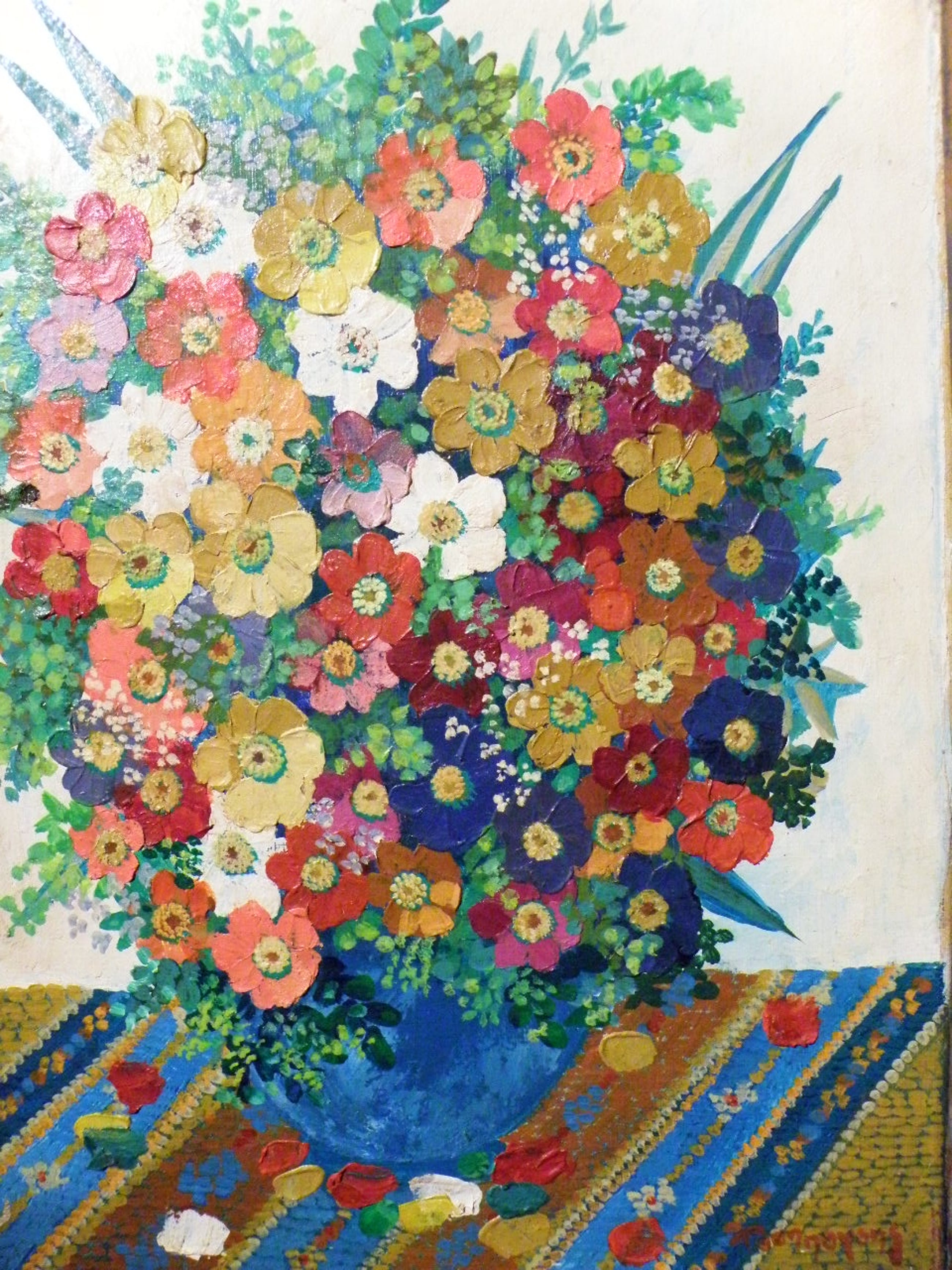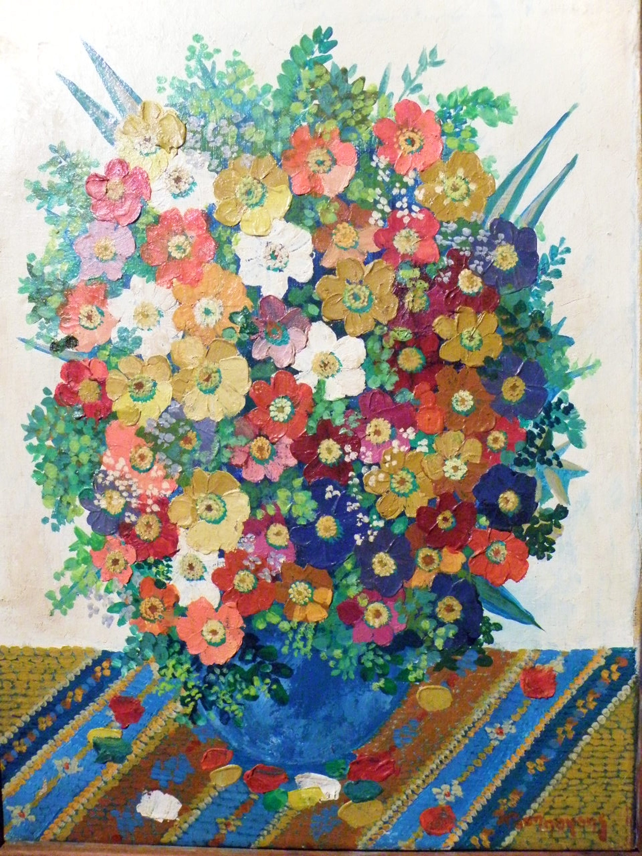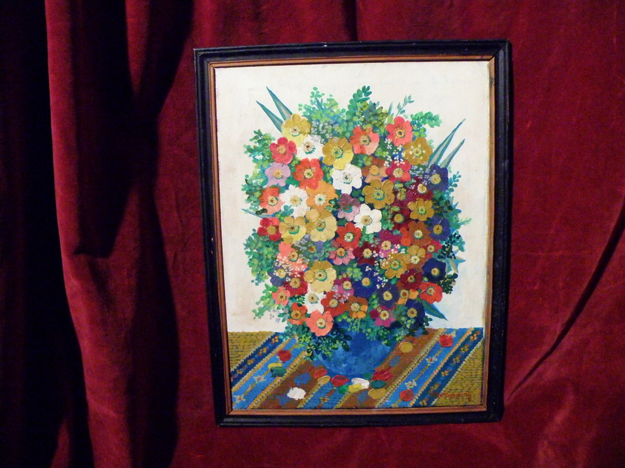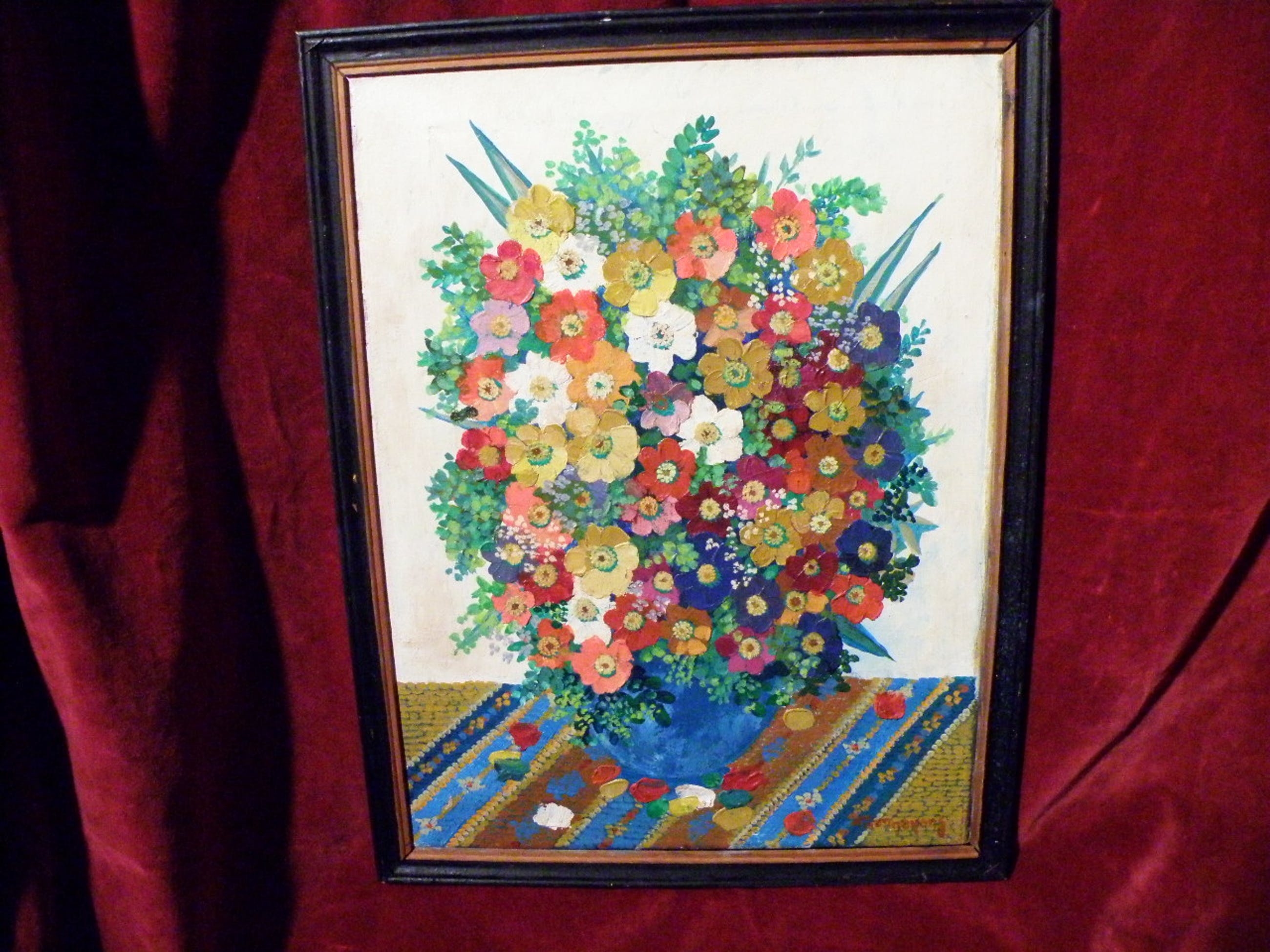 Bloemen stilleven in vaas, olieverf op linnen, gesigneerd links onderin, in redelijk goede conditie, provenance prive verzameling in Amsterdam.