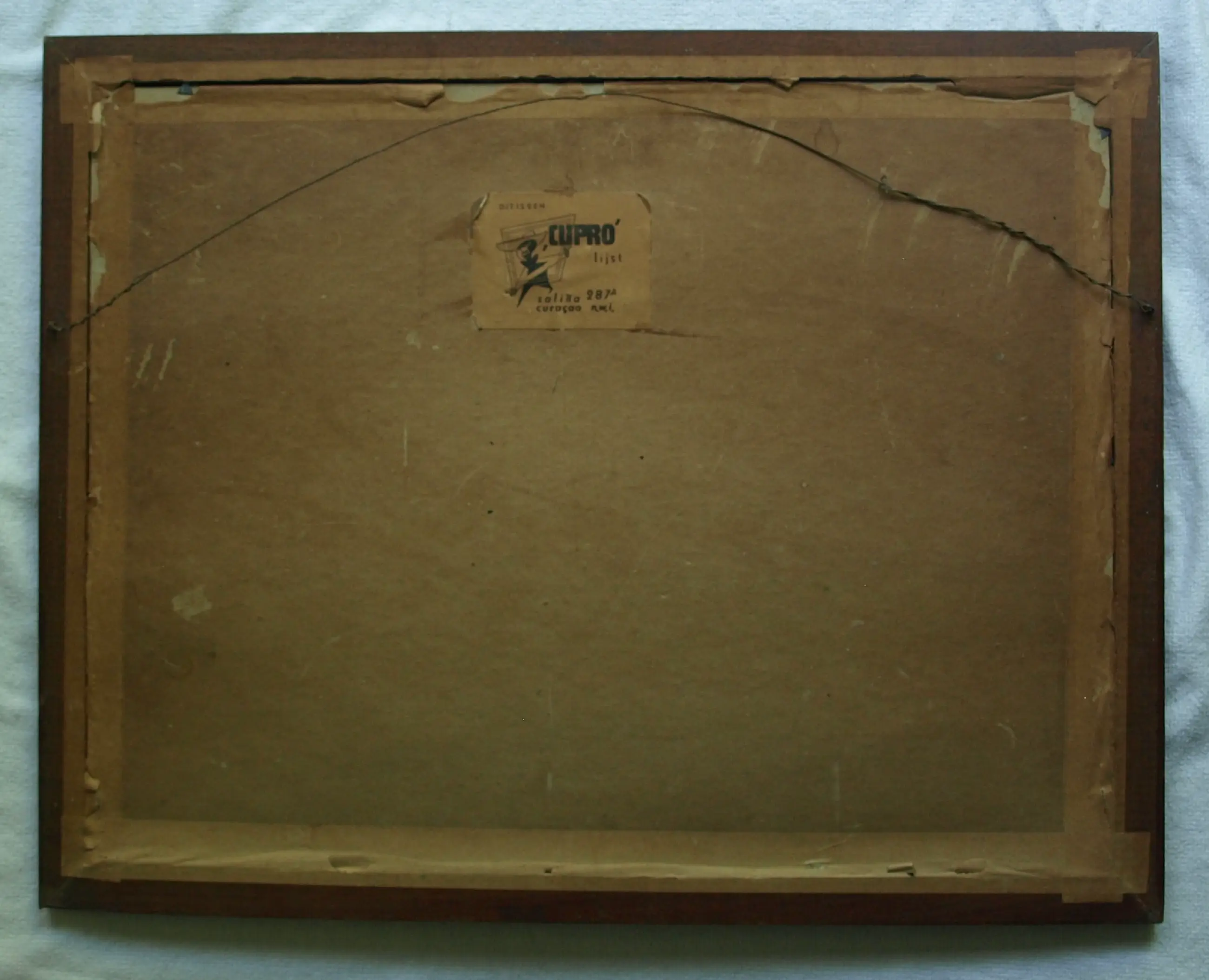 Afhandeling: Let op a.u.b. -Het ingelijste werk kan worden afgehaald in Amsterdam. Afhalen heeft onze sterke voorkeur i.v.m. de kwetsbaarheid van de glasplaat. Het afhalen heeft voor ons geen haast, dus het kan wanneer het u schikt om naar Amsterdam te komen. -Het werk kan NIET per post worden verzonden. -U kunt in Nederland en België eventueel gebruikmaken van de gespecialiseerde koeriersdienst van Kunstveiling: “Swift koeriers”. (zie ook de info onderaan deze pagina onder het kopje “Koeriersdienst”). Binnen Nederland zijn de bezorgkosten van Swift Koeriers voor dit werk: € 52,10.
