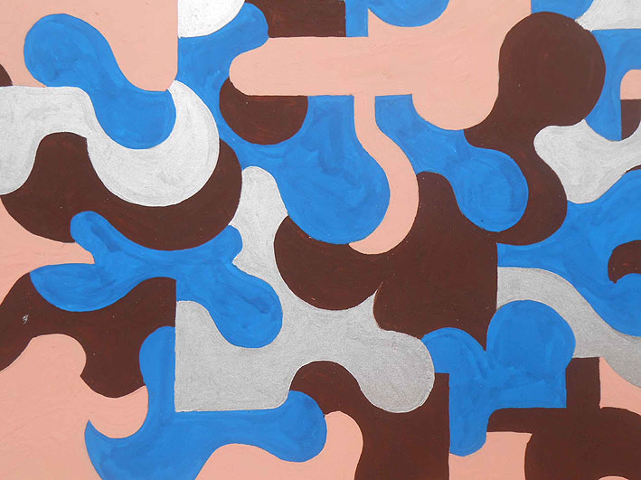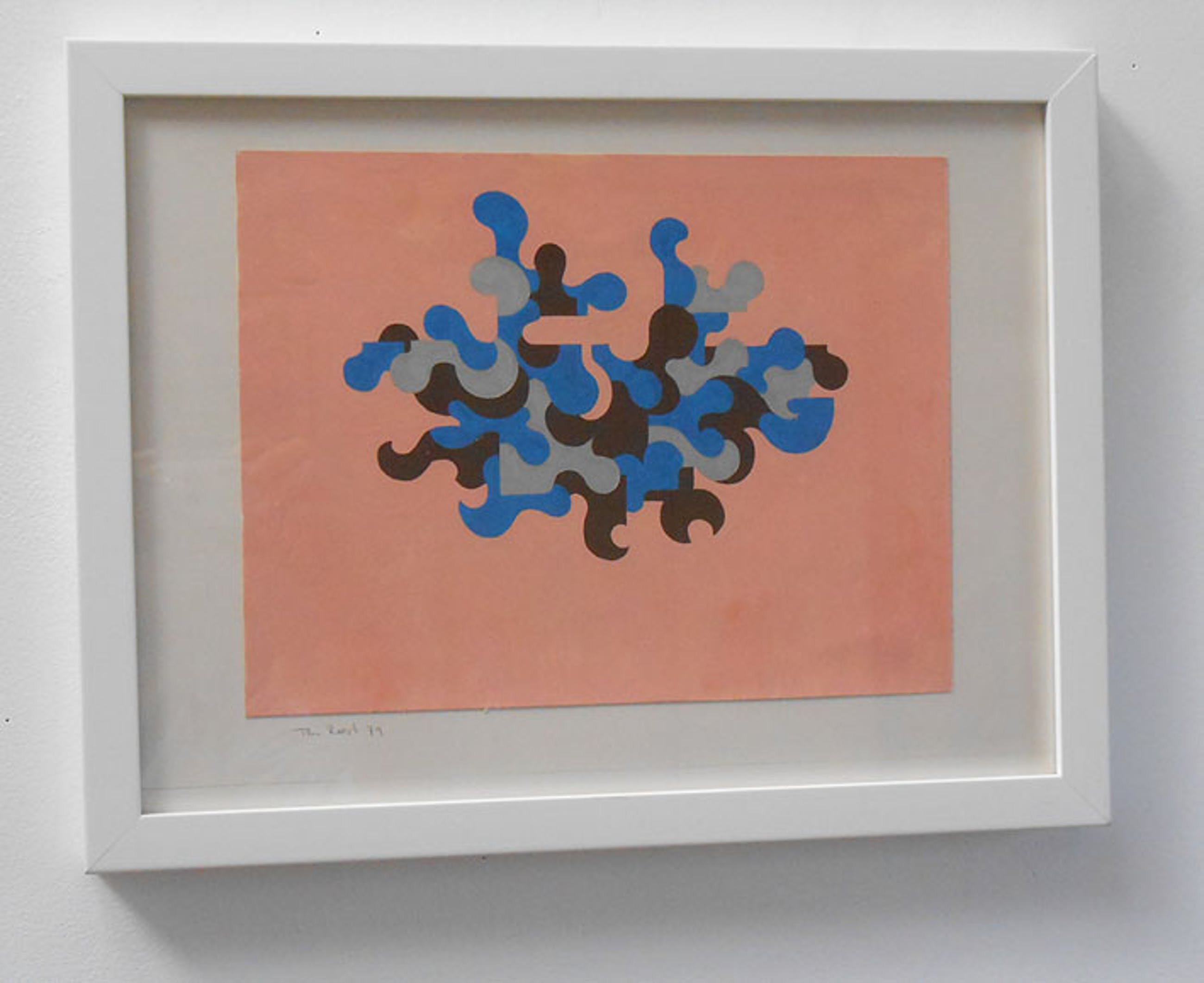 Abstract geometrische compositie van Toon Roest uit 1974. oa Zilverkleurige grijze verf . In goede frisse staat.