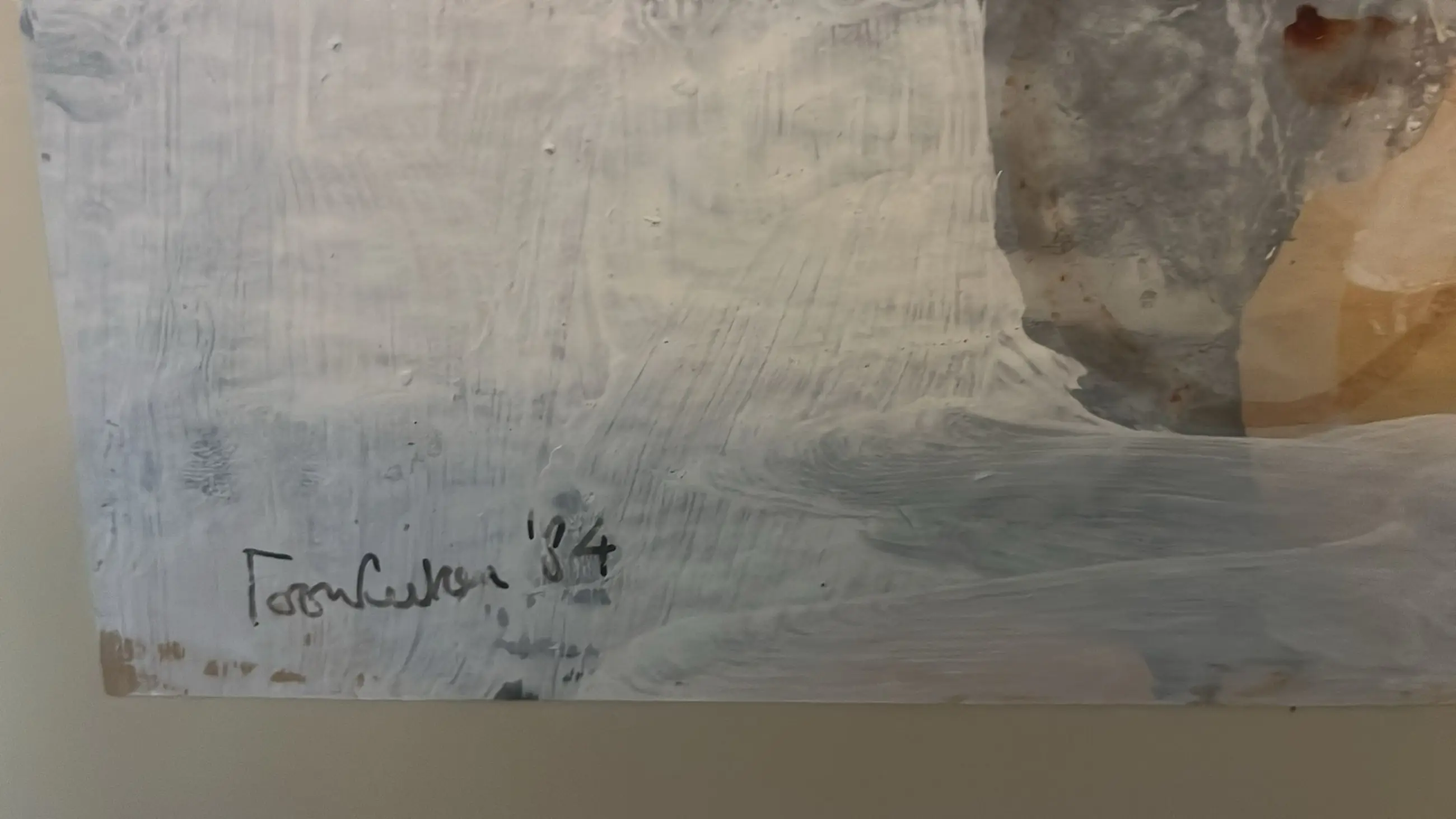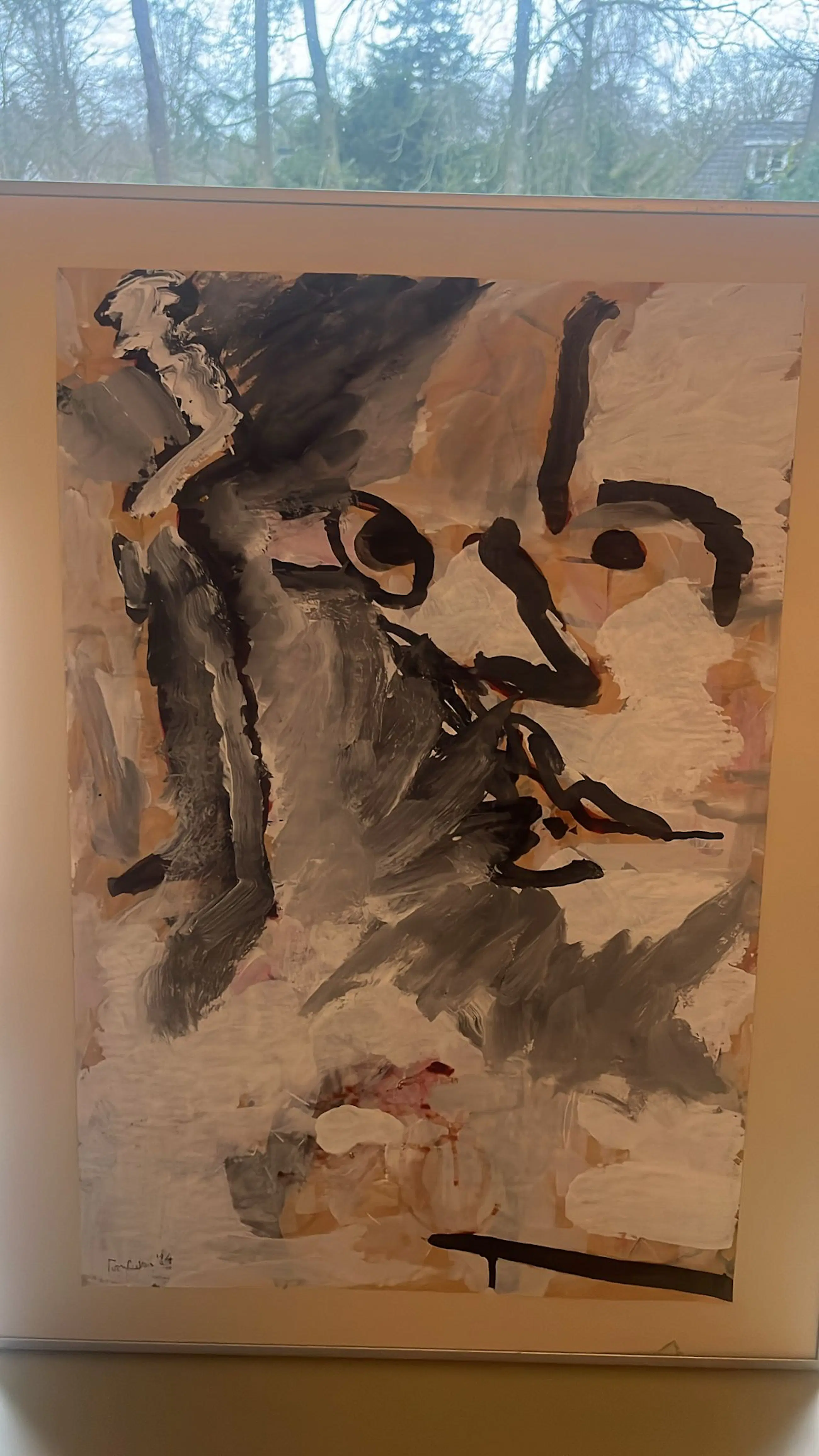 Een schilderij van Toon Teeken met een fietser en gezicht