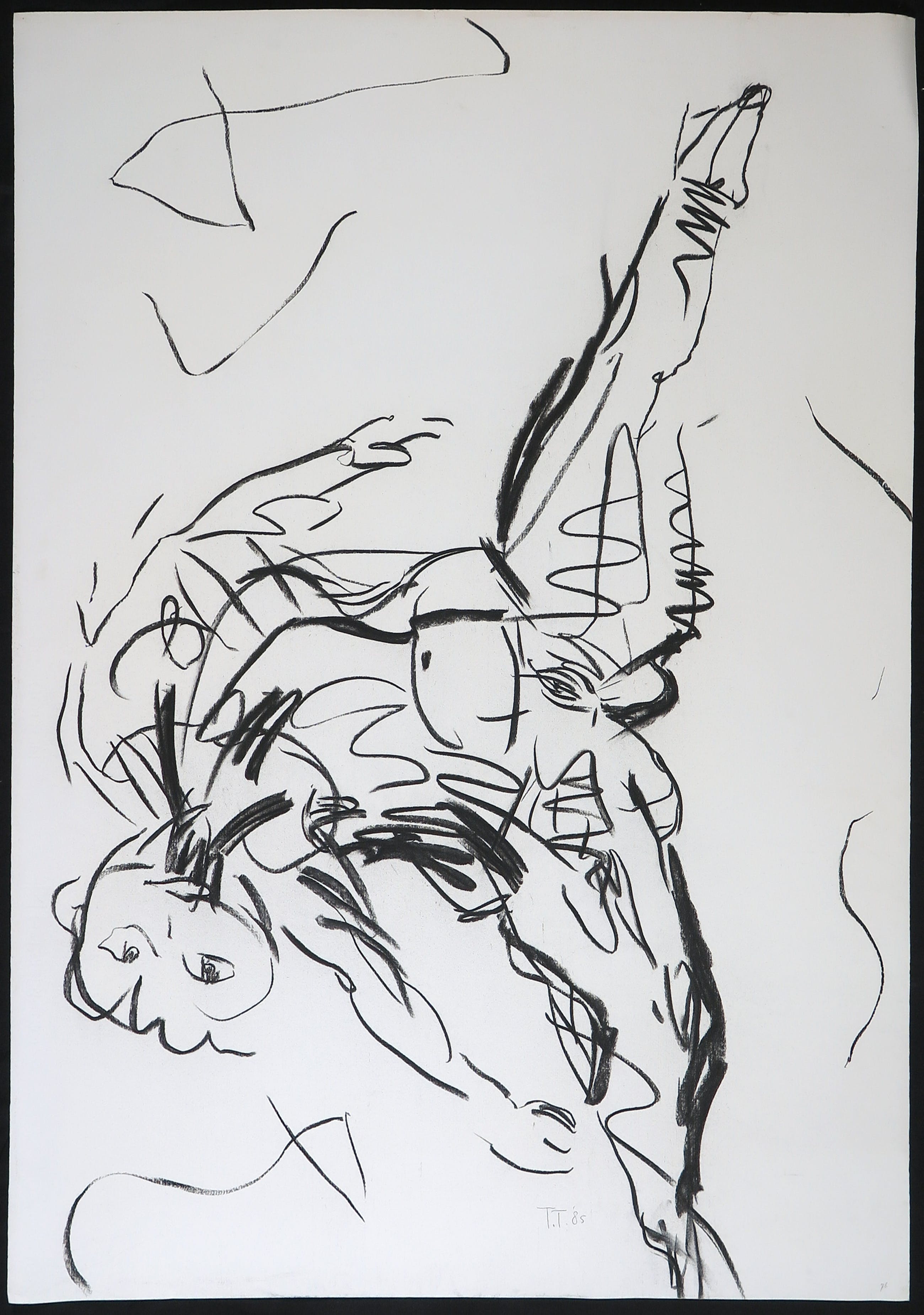 | Zeer goede staat. Het houtskool is wel een beetje uitgeveegd waardoor het geheel een beetje groezelig oogt. Lichte vouwtjes in de hoeken. | |||||||||||