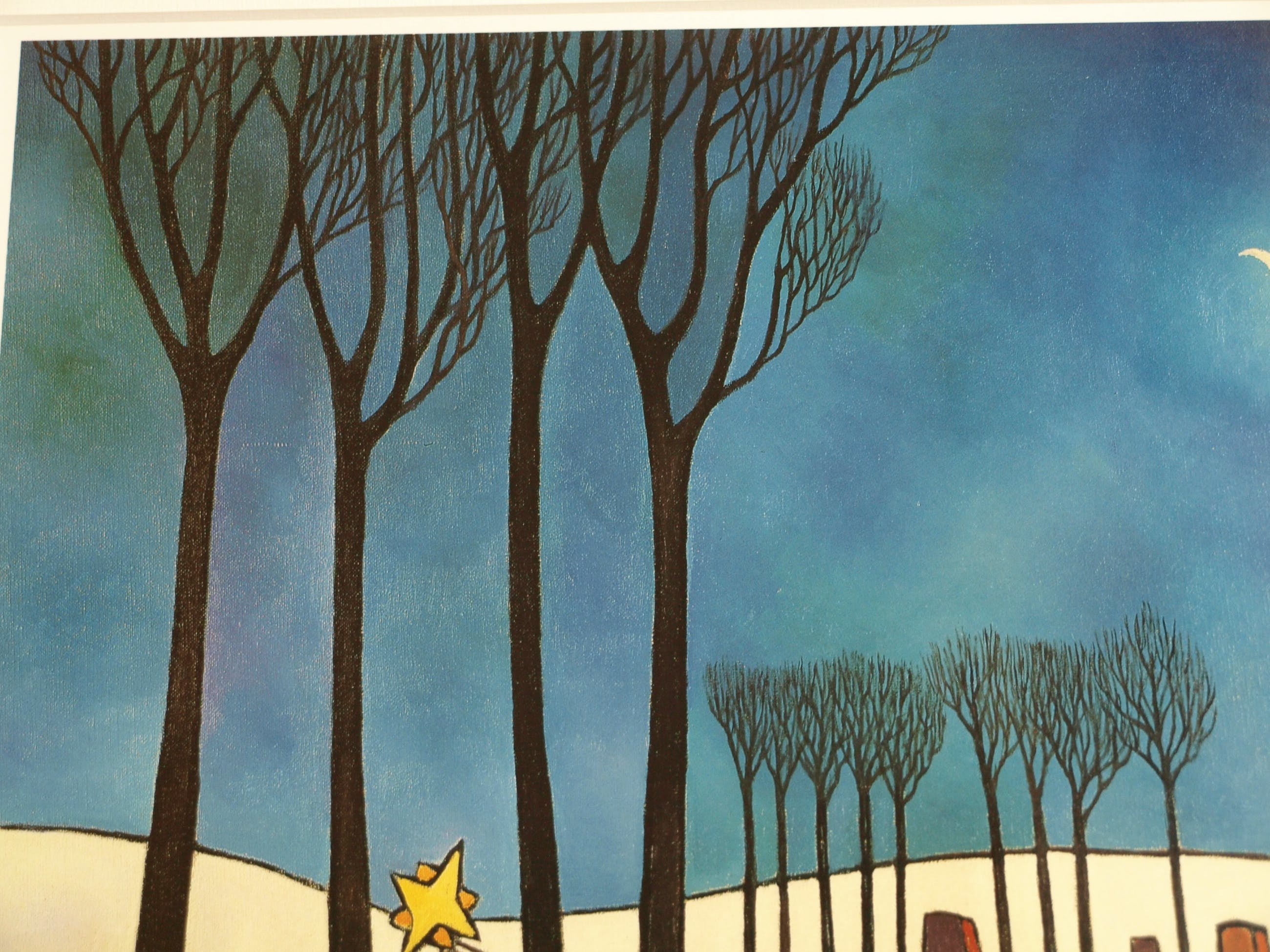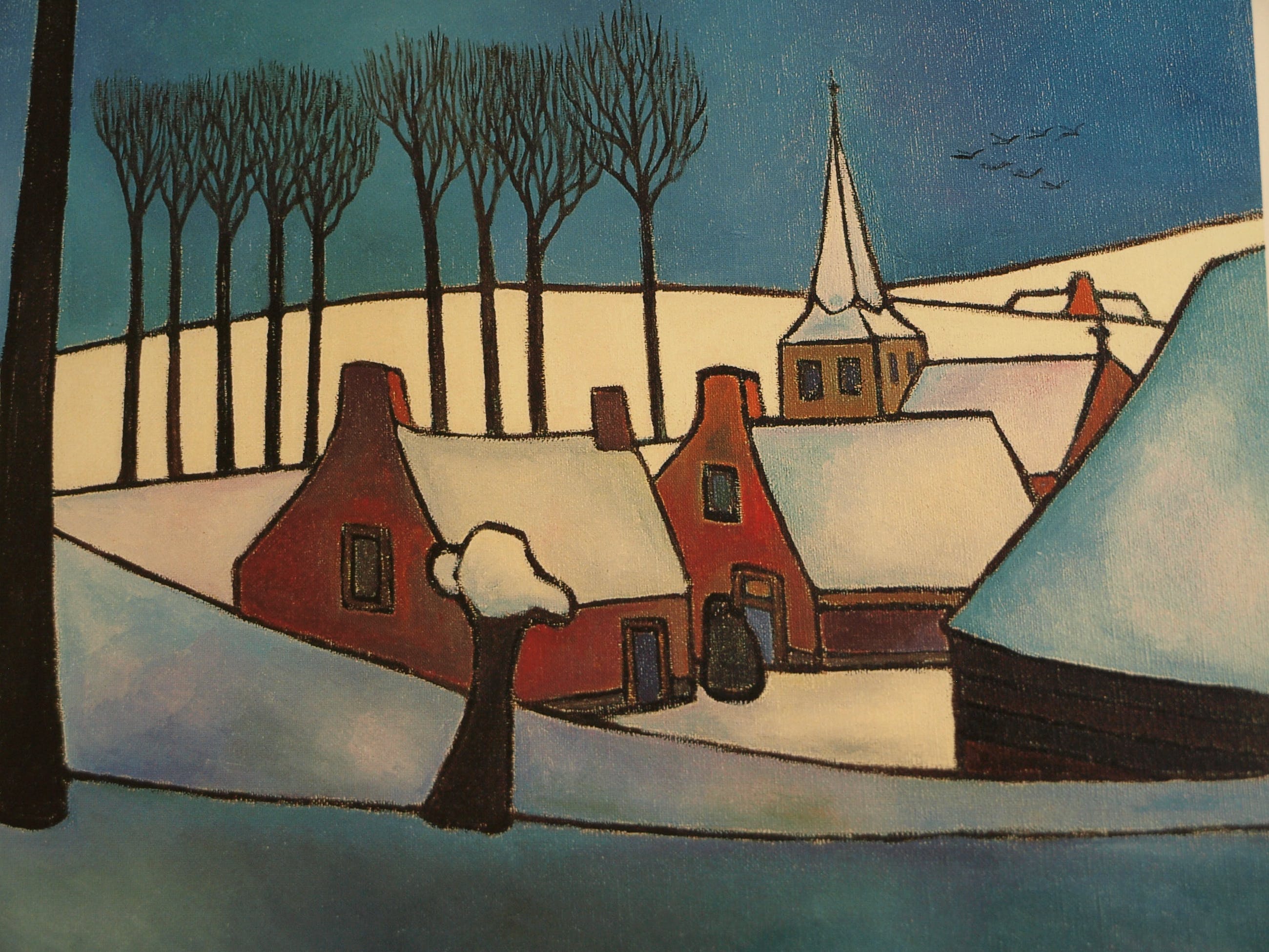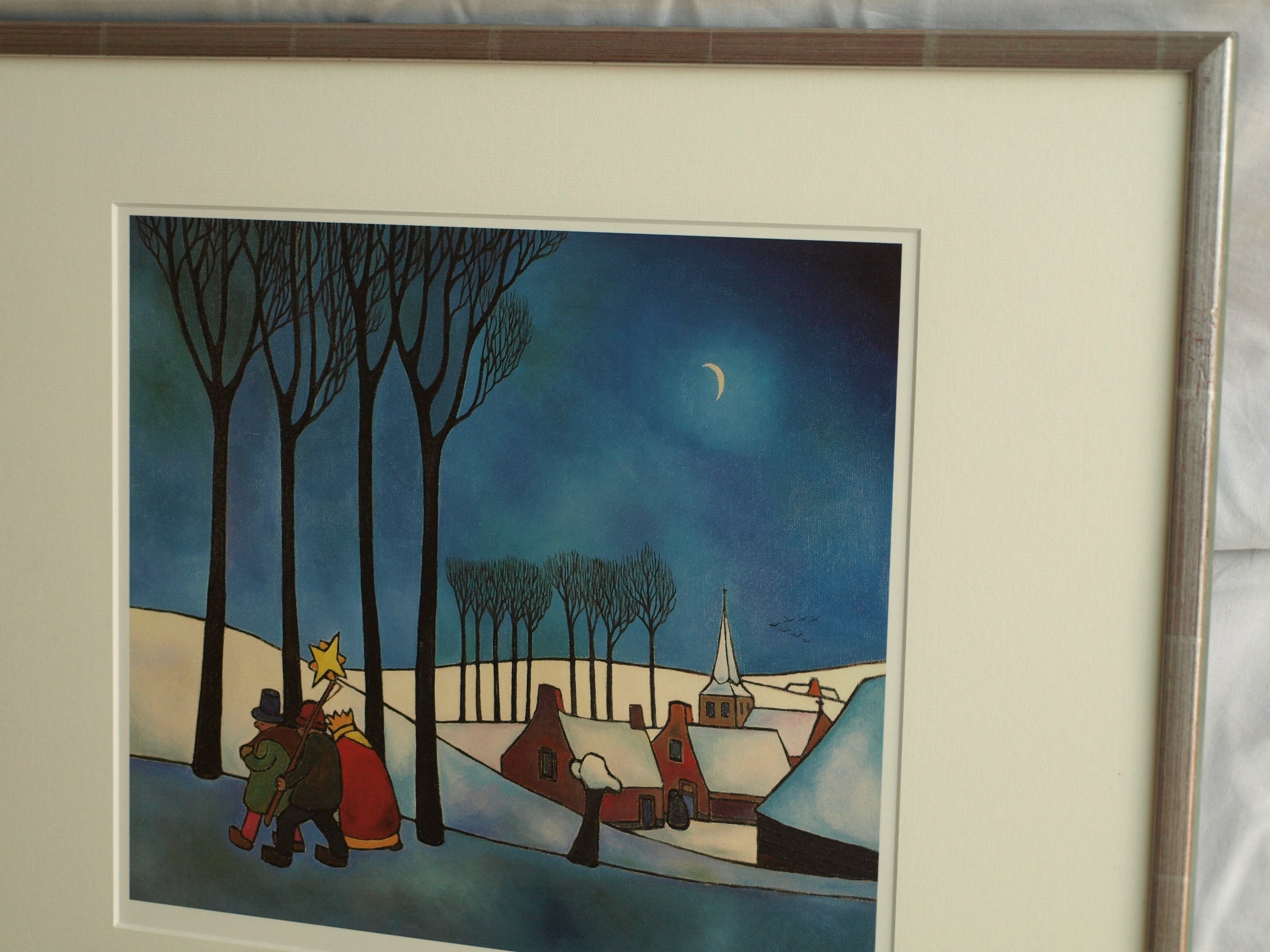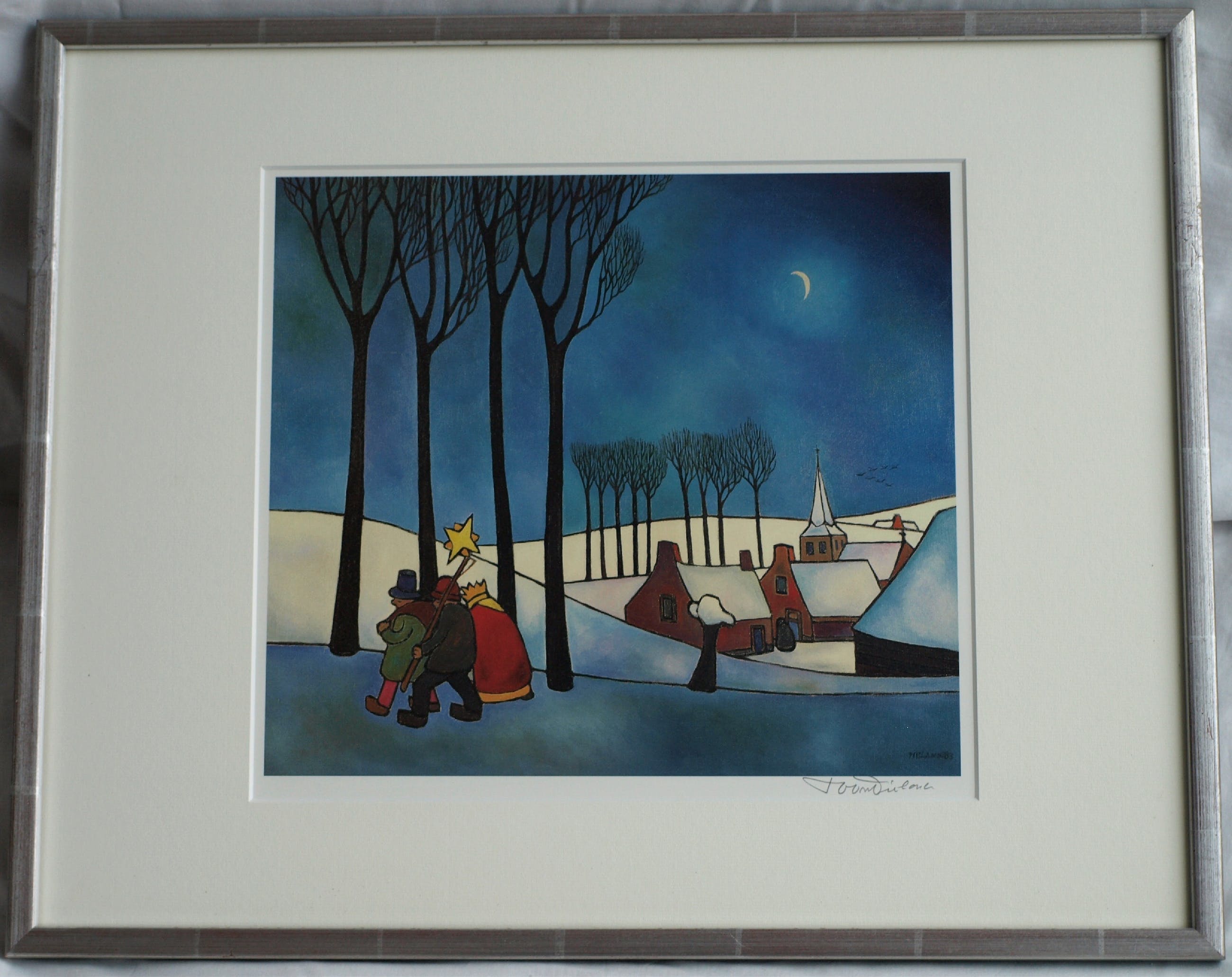 Een gesigneerde en ingelijste prent van de Nederlandse kunstenaar Toon Tieland (1919-2006), naar een schilderij van de kunstenaar uit 1983.