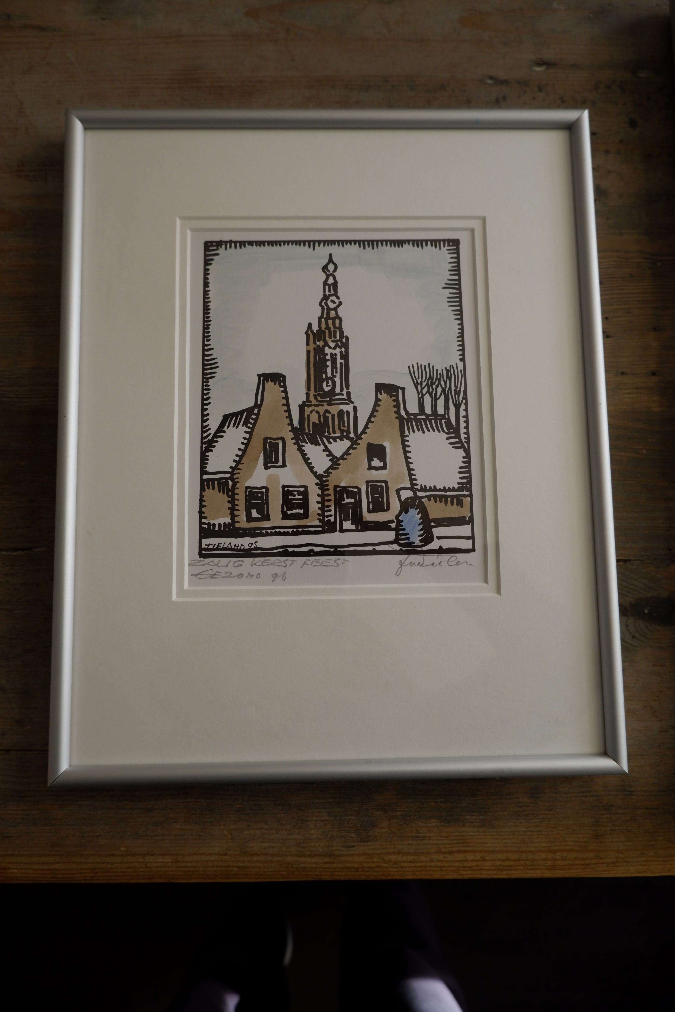 Litho van Toon Tieland Kunstenaar Kerstkaart van 1996 De afbeelding is van 1995