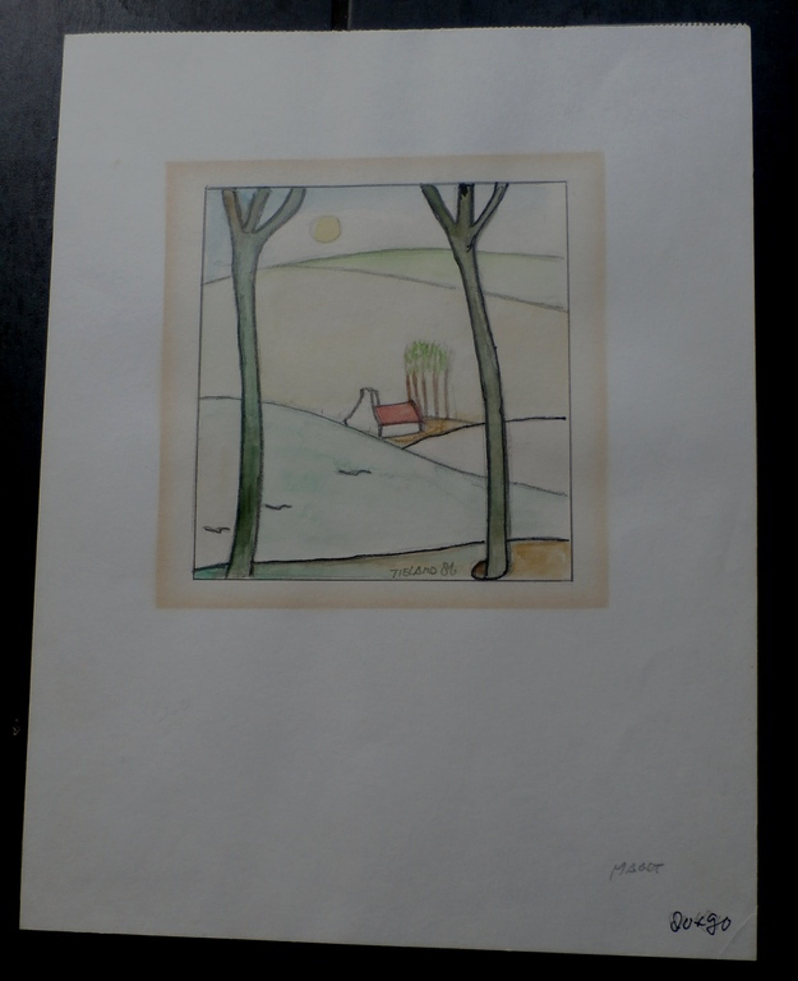 Potloodtekening van Toon Tieland uit 1986. Het werk is met potlood, aan de onderzijde, gesigneerd. Afmetingen: H31 x b24 cm. Afmetingen voorstelling: H13.5 x b12.5 cm. Conditie: in goede staat. Het werk heeft ingelijst gezeten want het is verkleurd binnen de randen van het oude passe-partout, goed ingelijst met nieuw passe-partout valt dit niet meer op. De authenticiteit van het aangeboden werk wordt volledig gegarandeerd. Een certificaat van echtheid kan, op aanvraag, worden meegeleverd.