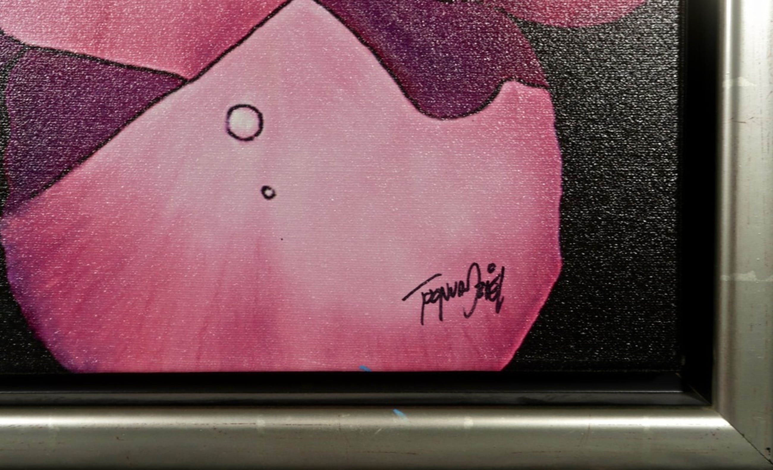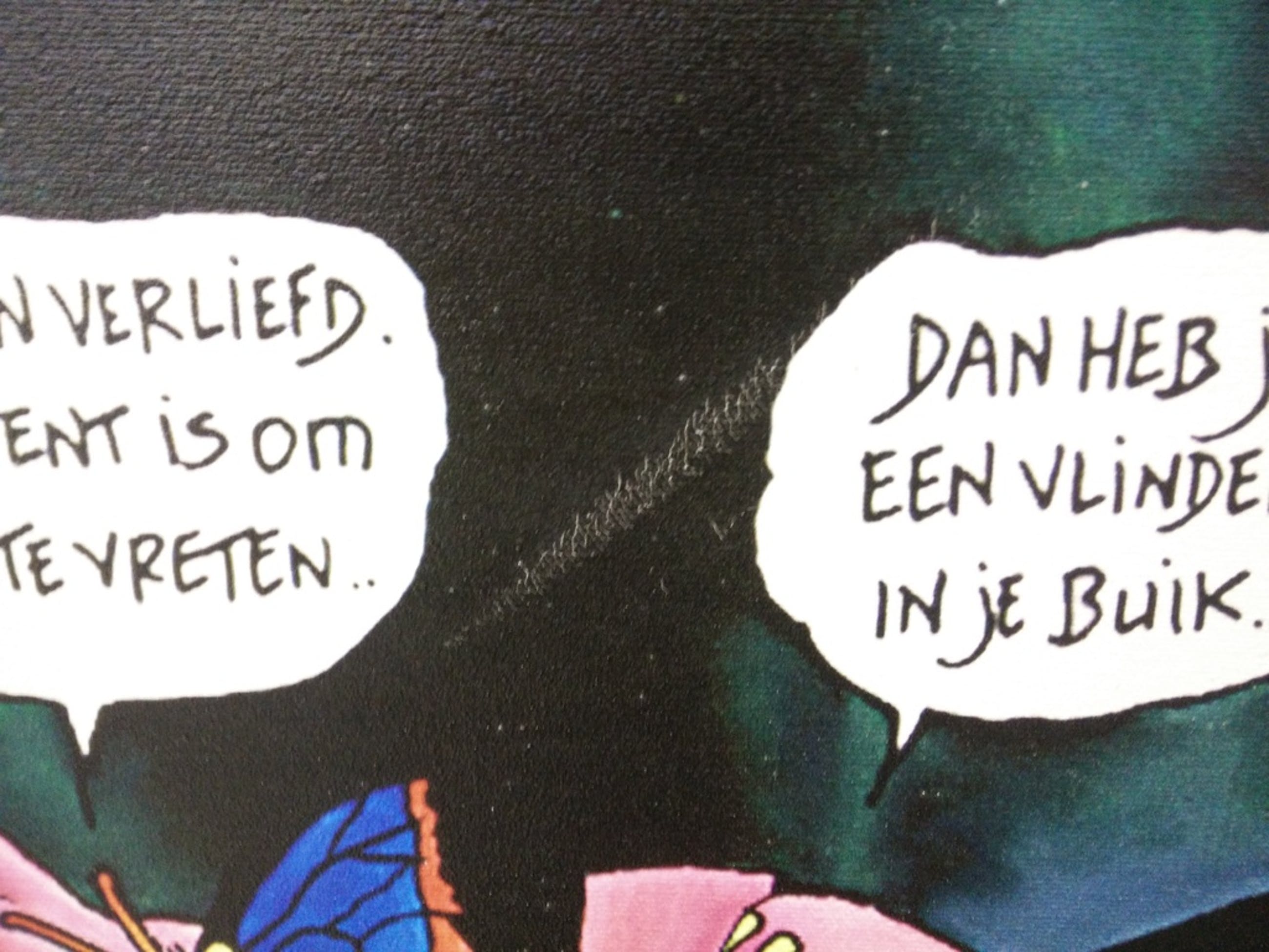 Conditie kunstwerk: In rechterhoek zit een klein krasje en er zijn op het werk een paar lichte strepen zichtbaar - zie foto's
