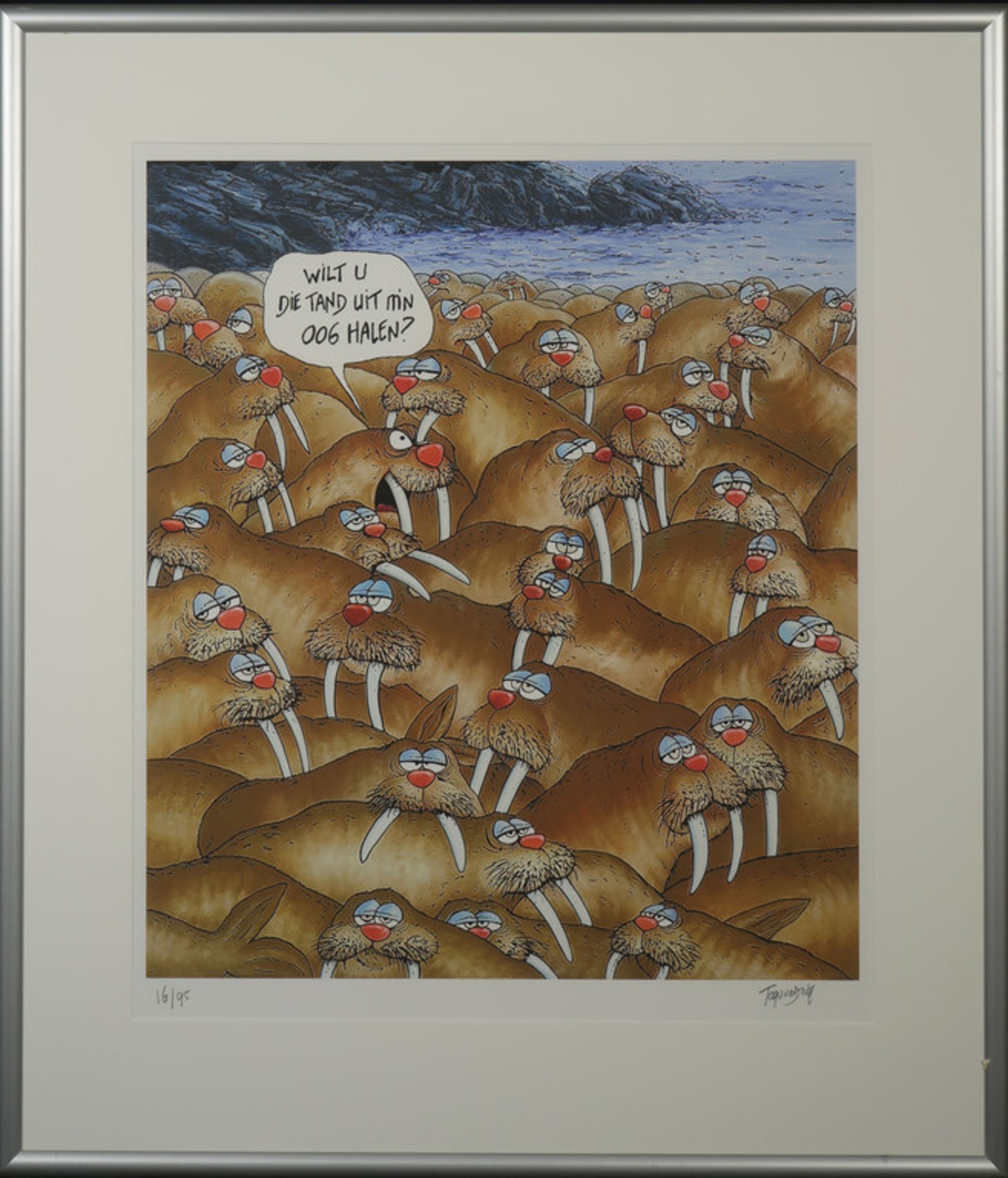 Bij foto´s van ingelijste werken kan spiegeling zichtbaar zijn. Het oplagenummer op de foto(‘s) kan afwijken van het hierboven genoemde correcte oplagenummer.
