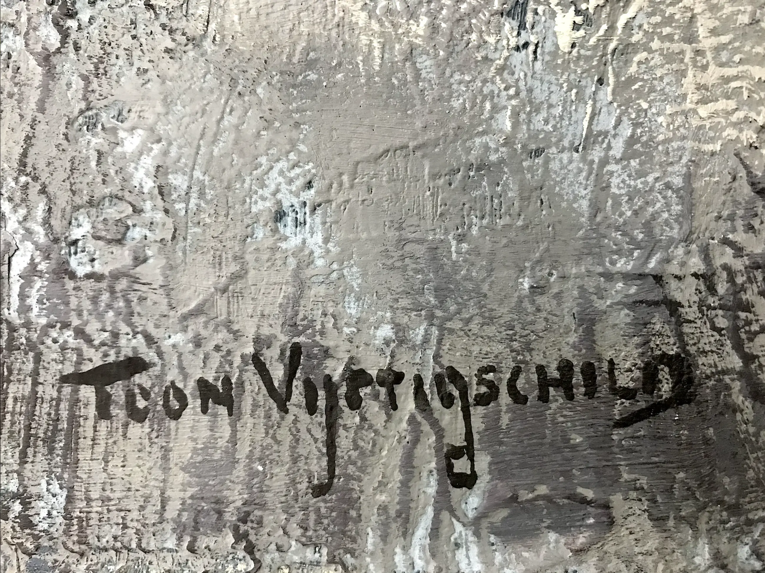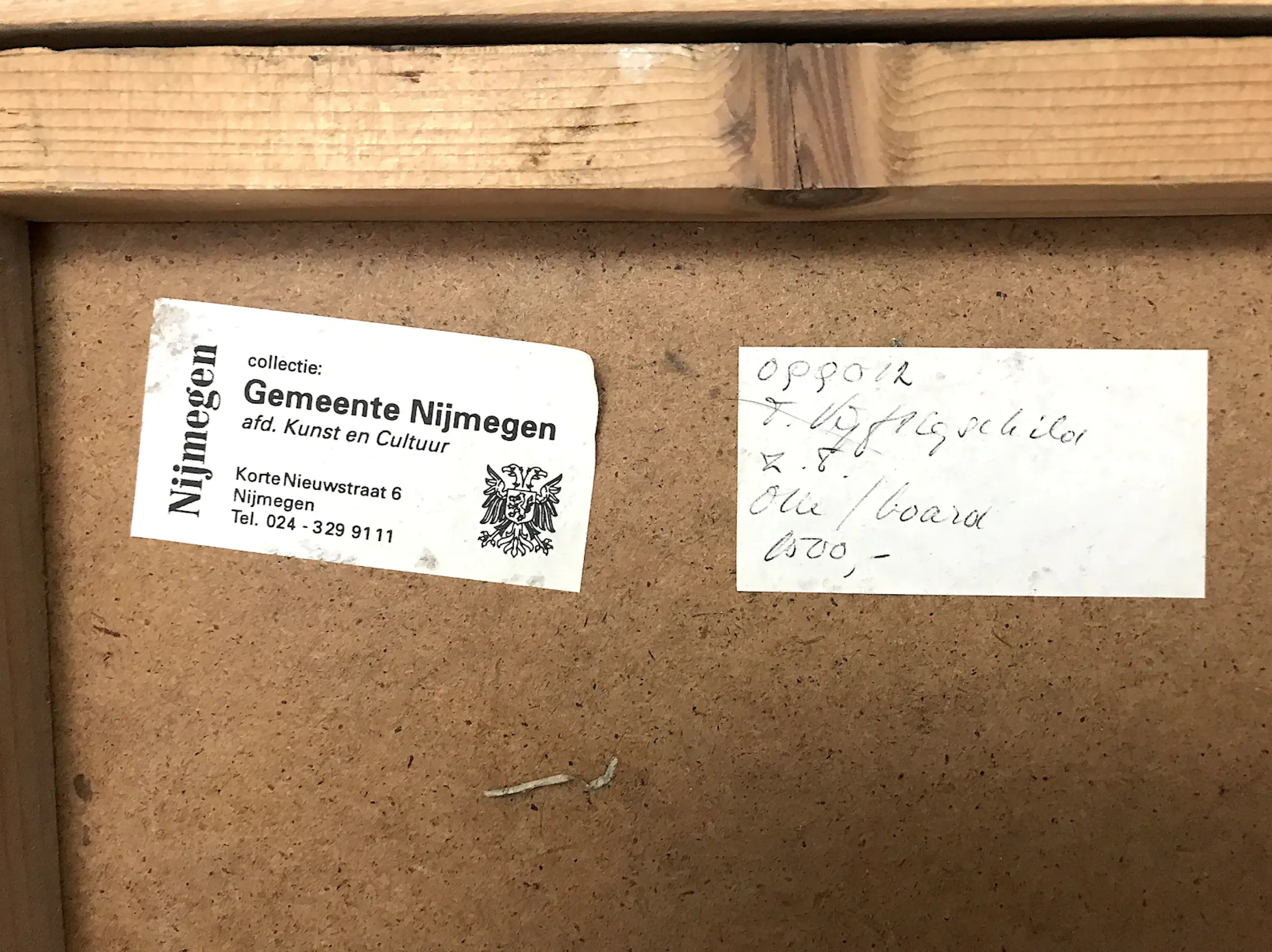 Schitterend werk van Vijftigschild. Ingelijst in eenvoudige baklijst.