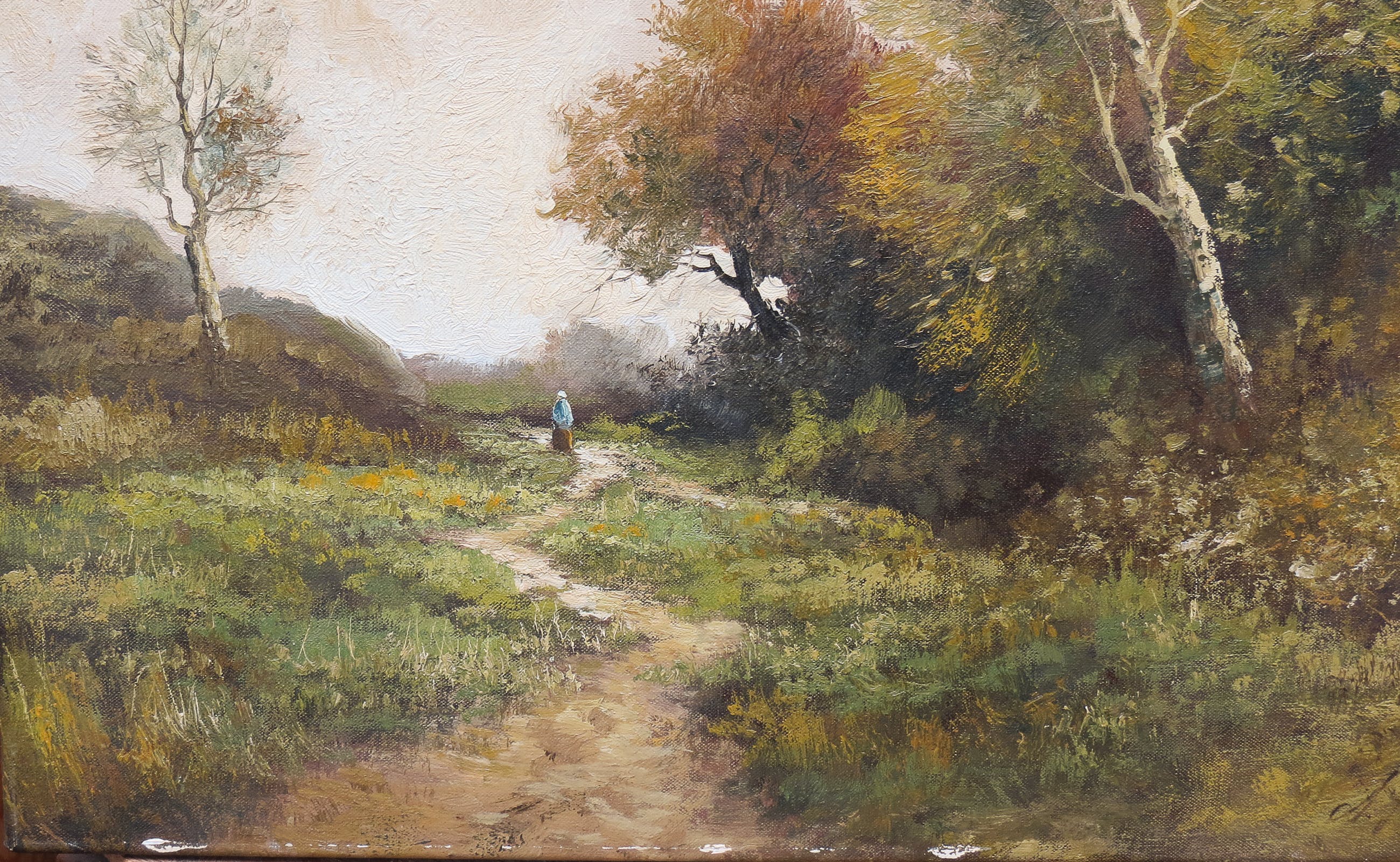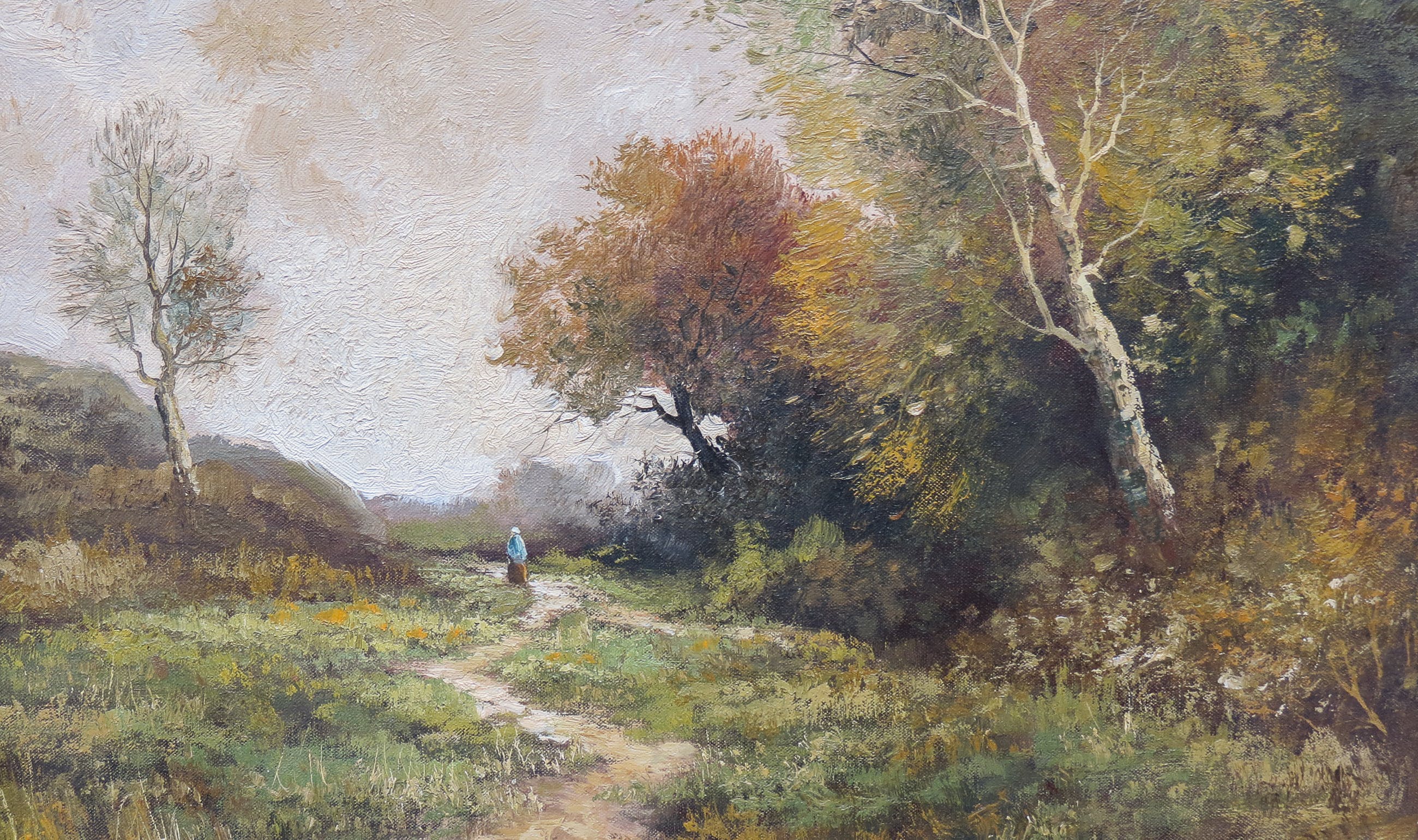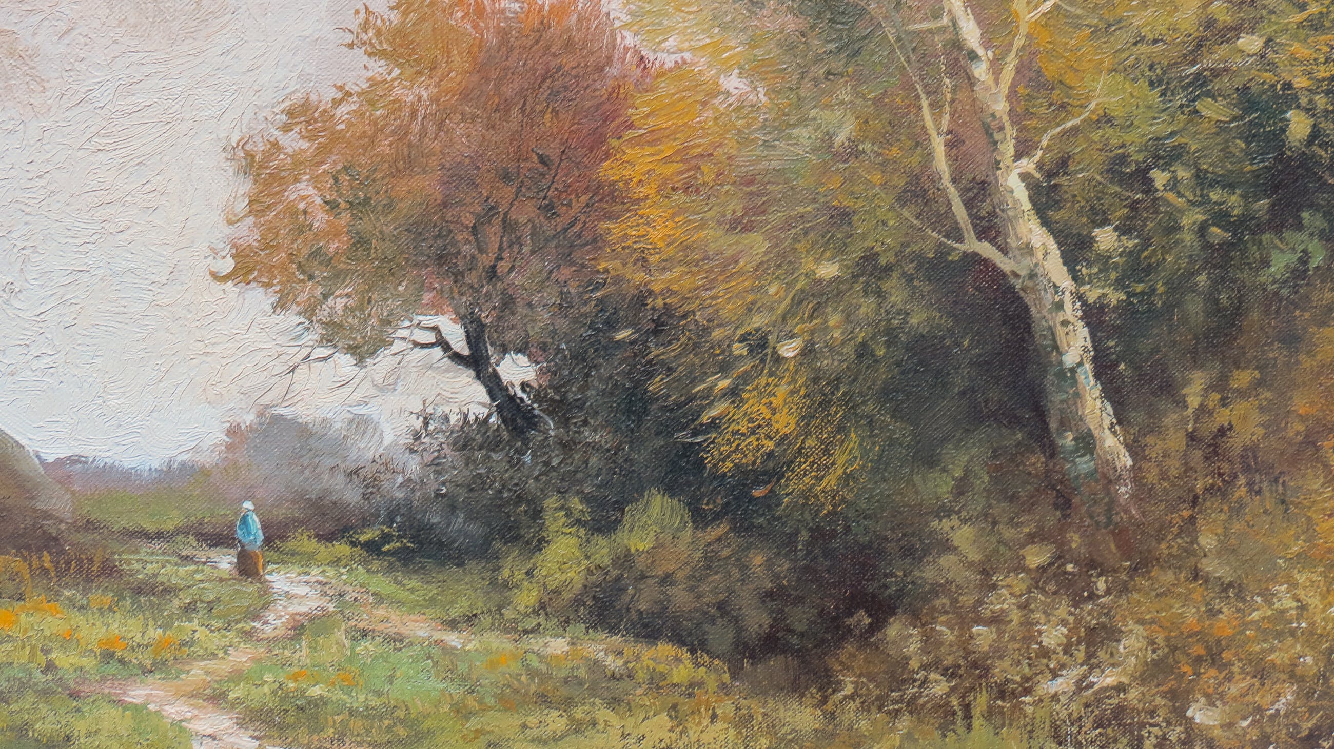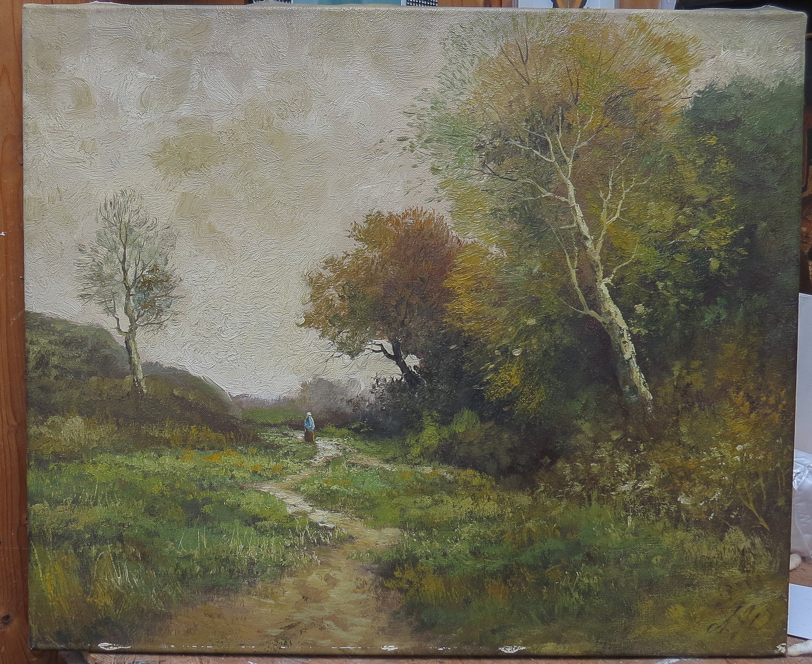 Het schilderij heeft een goede conditie, enkele beschadigingen veroorzaakt door afname van de lijst.