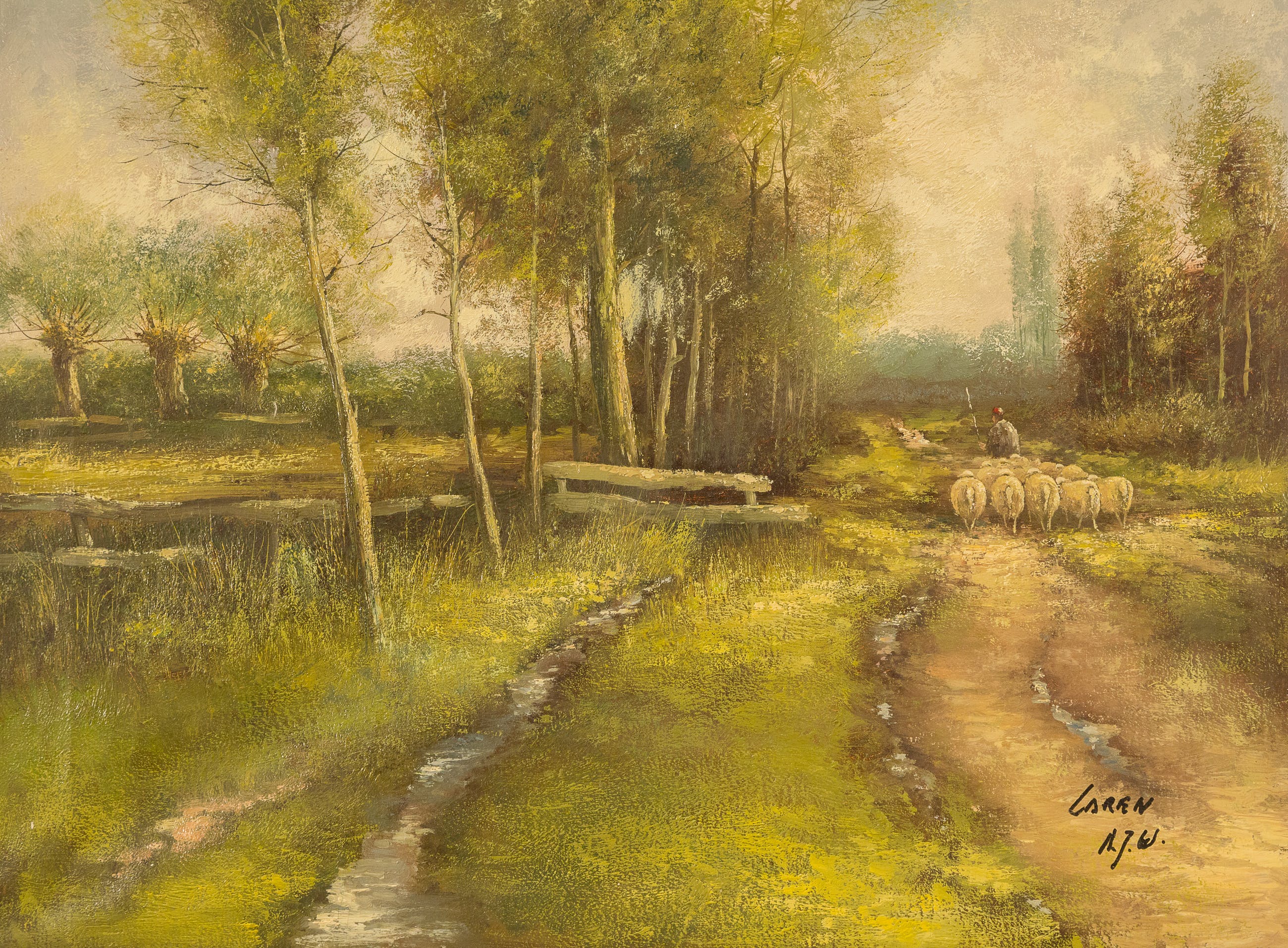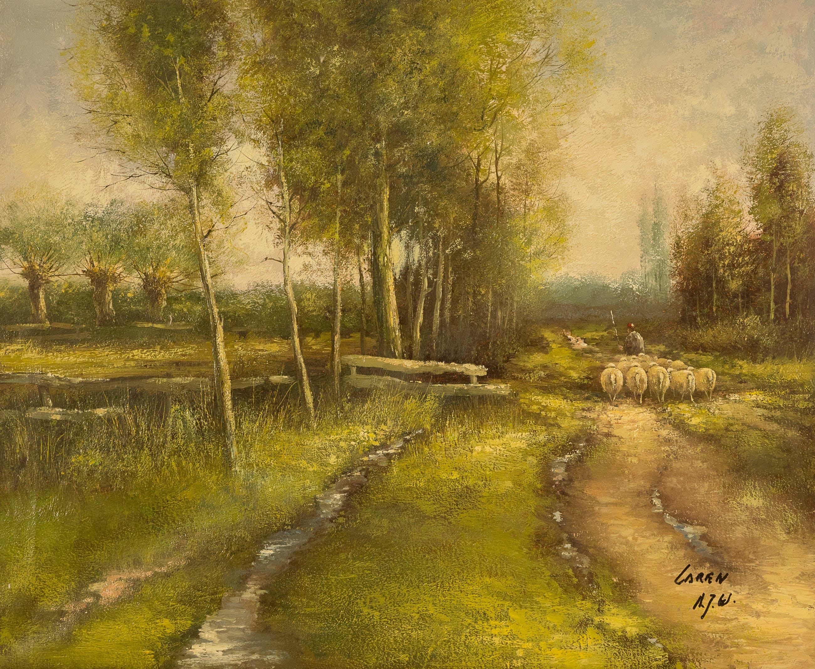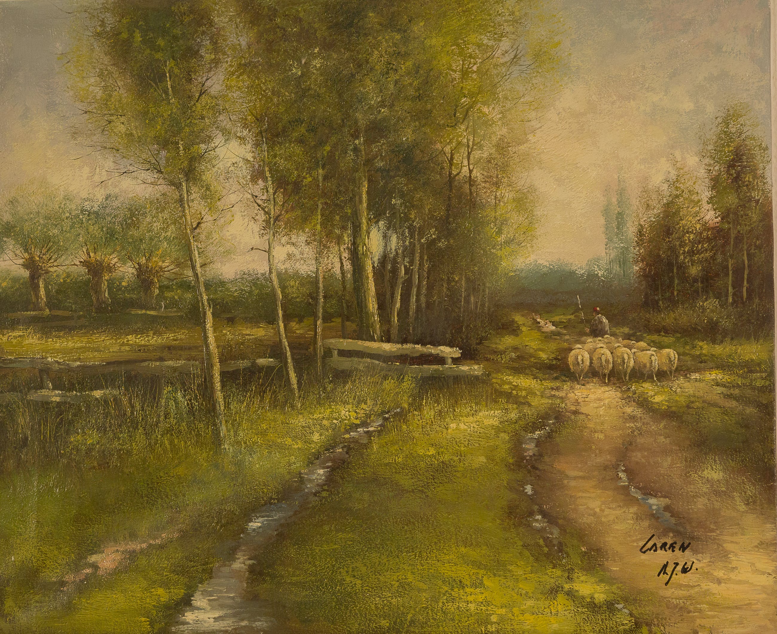 Mooi schilderij van de Hilversumse kunstenaar Toon Wildeboer. Gemonogrammeerd AJW. Wordt goed verpakt verzonden, ophalen is ook mogelijk in Huizen.(nh)