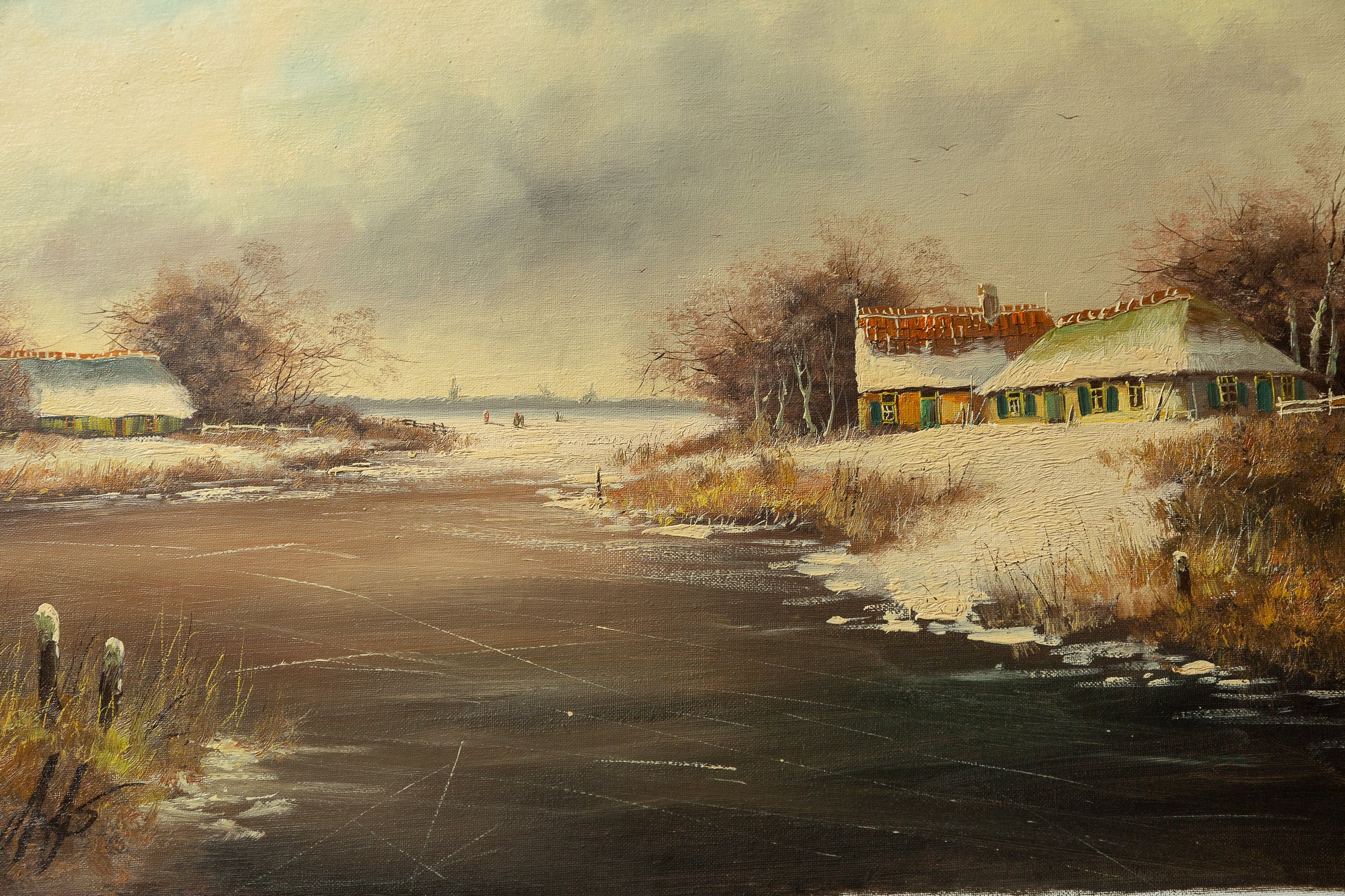 Fraai winterlandschap van de bekende Hilversumse kunstenaar en taxateur Toon Wildeboer Hij woont en werkt in het Gooi.