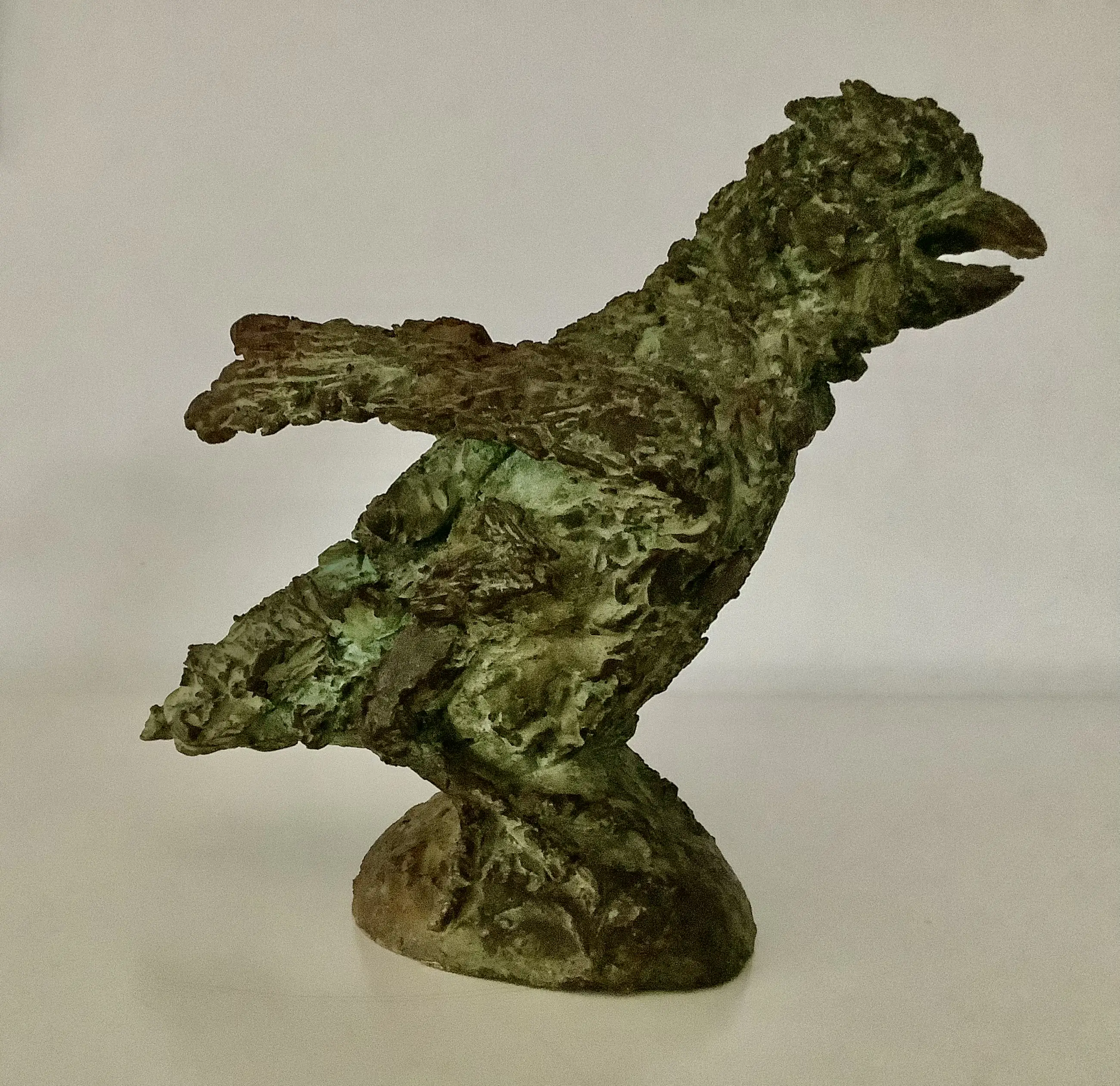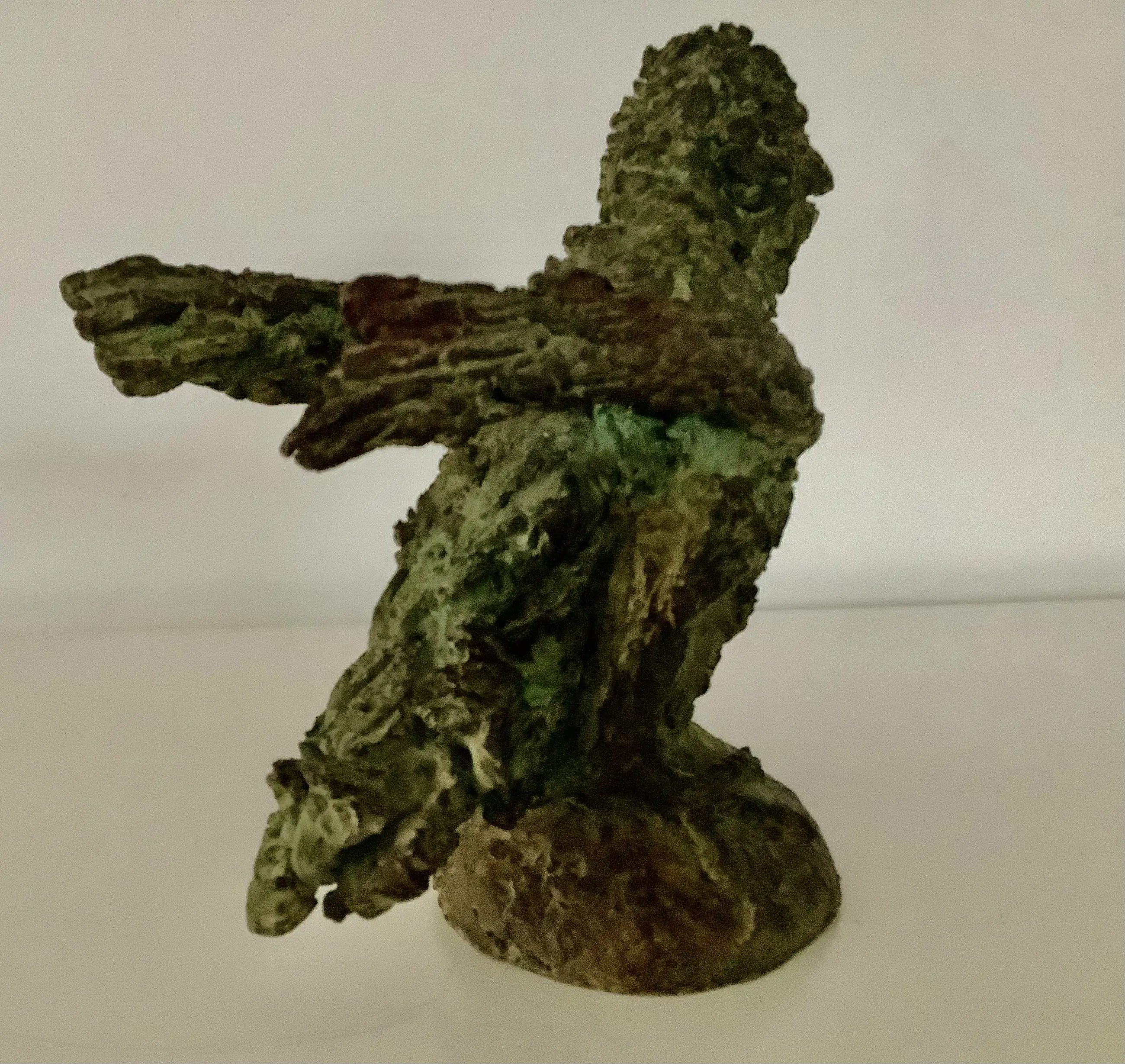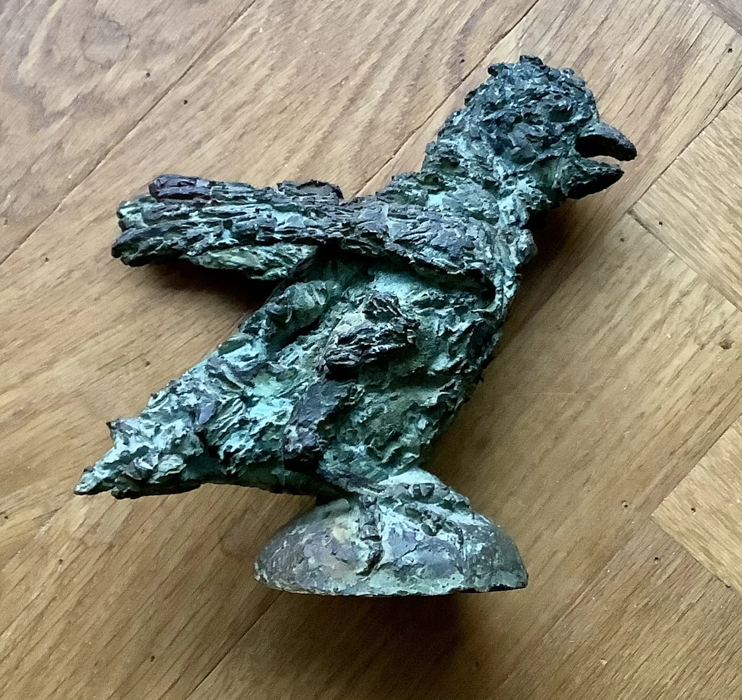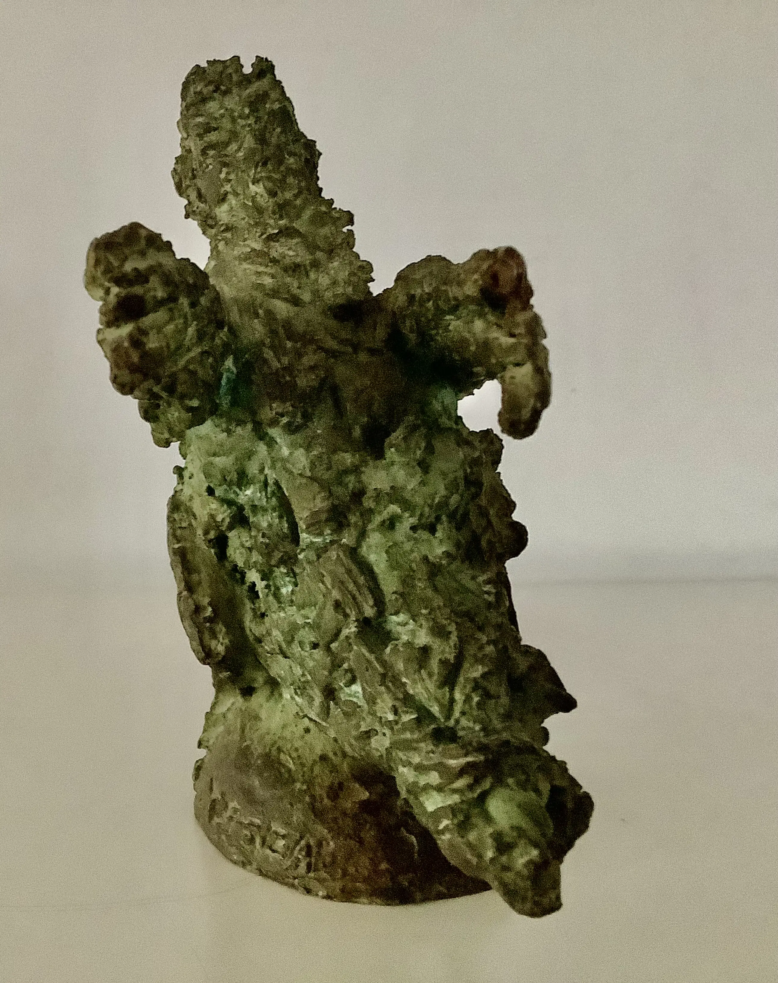 Expressieve sculptuur in de kenmerkende stijl van Tosca van den Haak. Massief brons met groene patina. Zeer zwaar beeld.