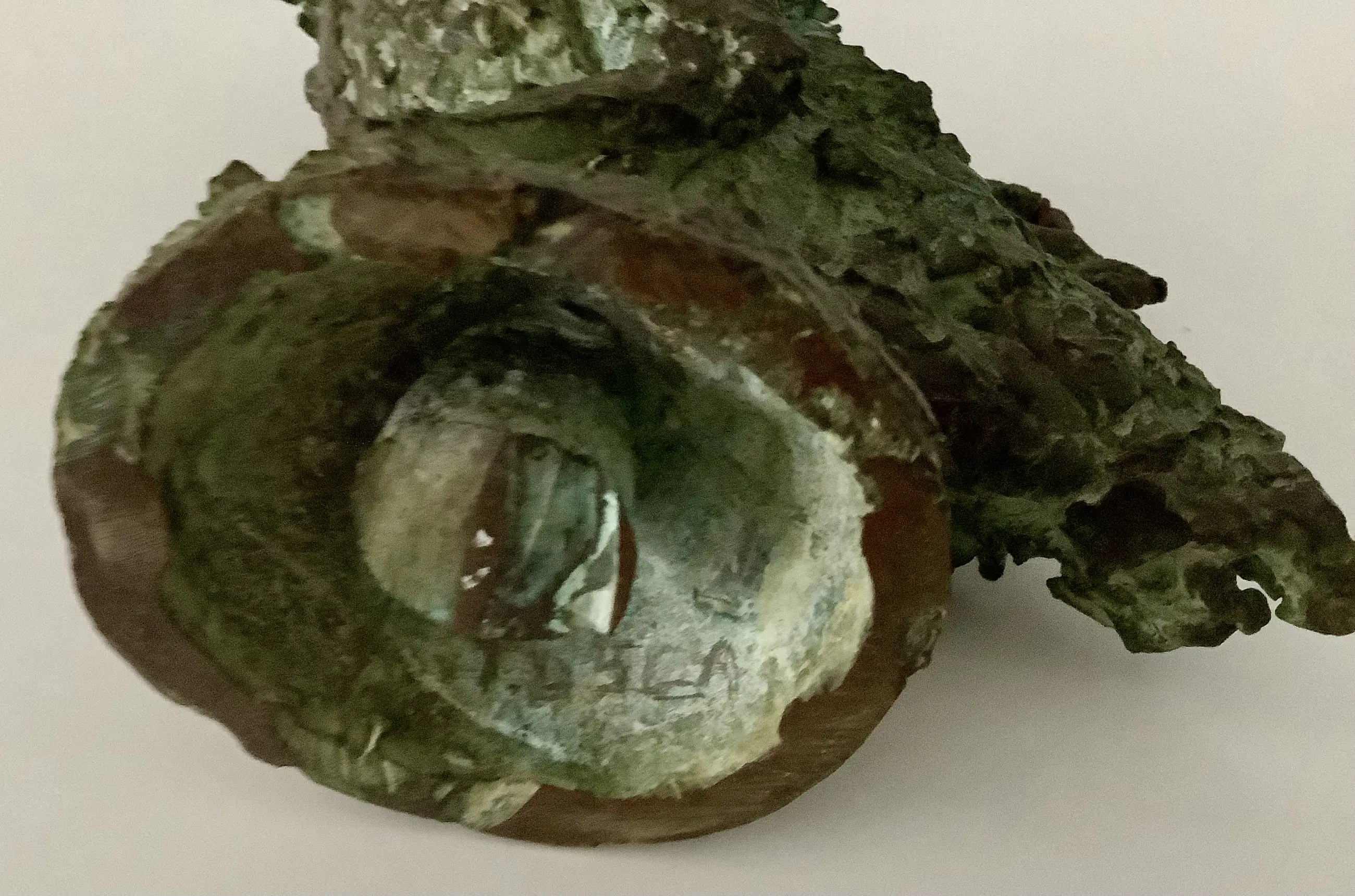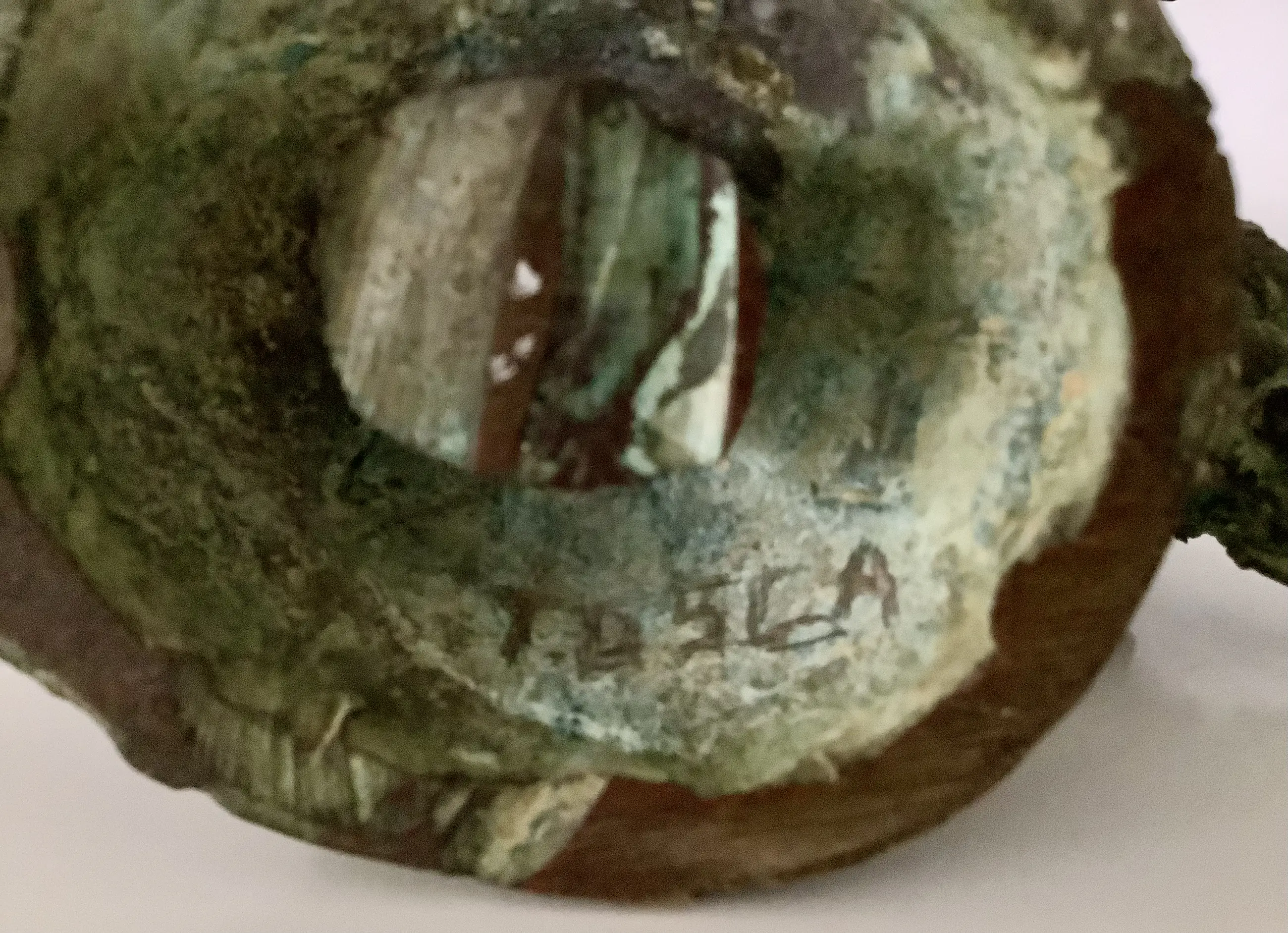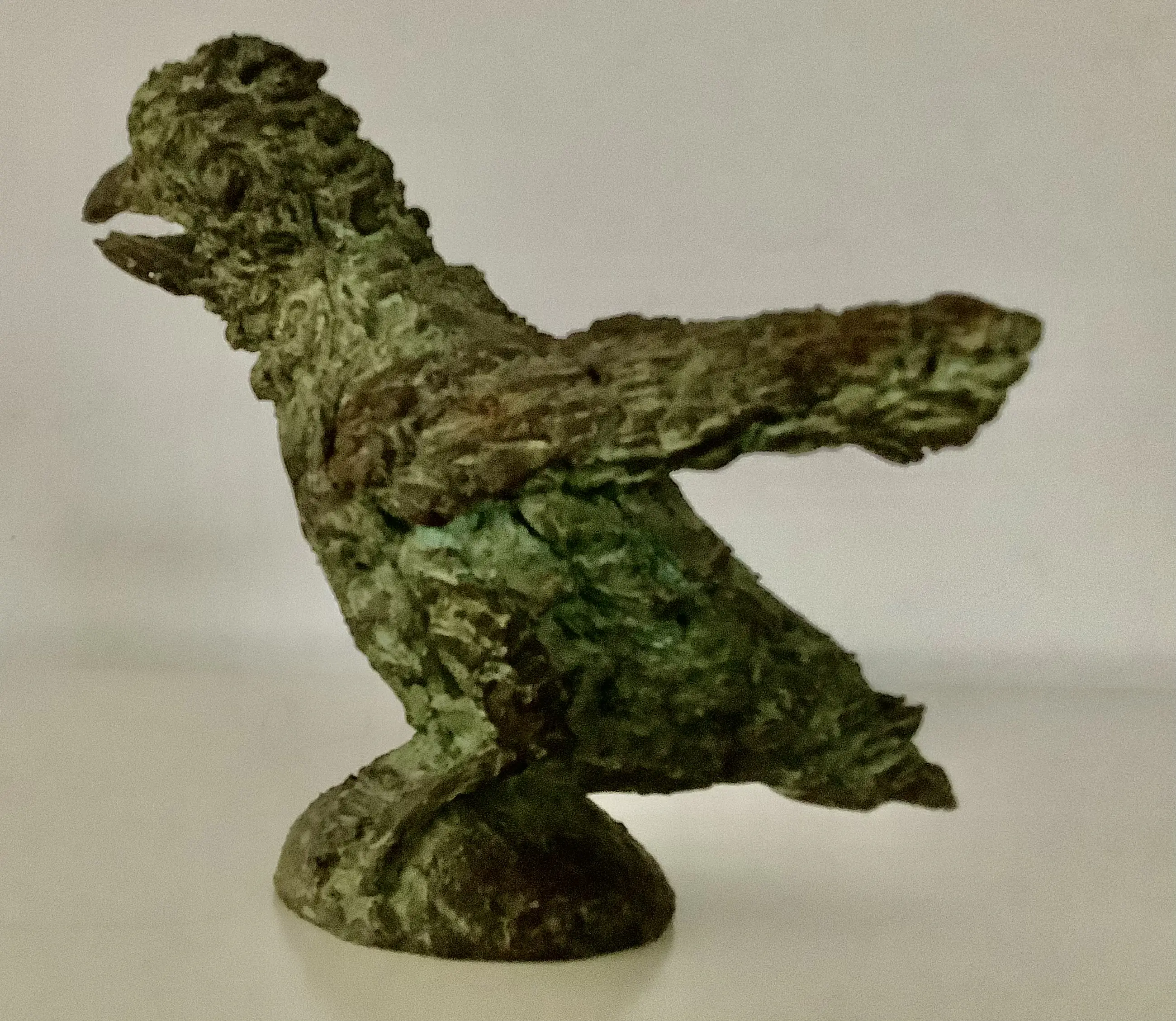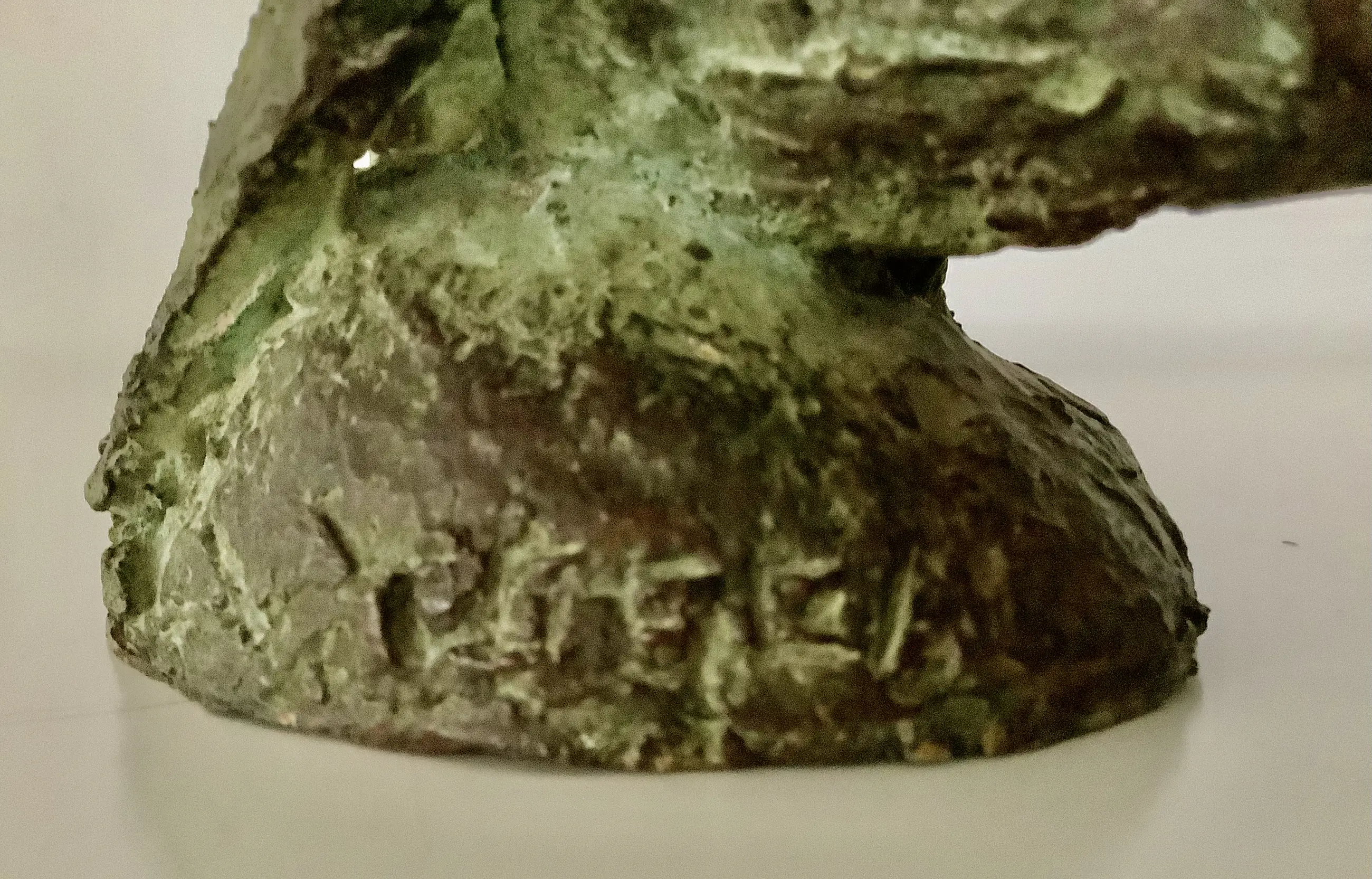 Expressieve sculptuur in de kenmerkende stijl van Tosca van den Haak. Massief brons met groene patina. Zeer zwaar beeld.